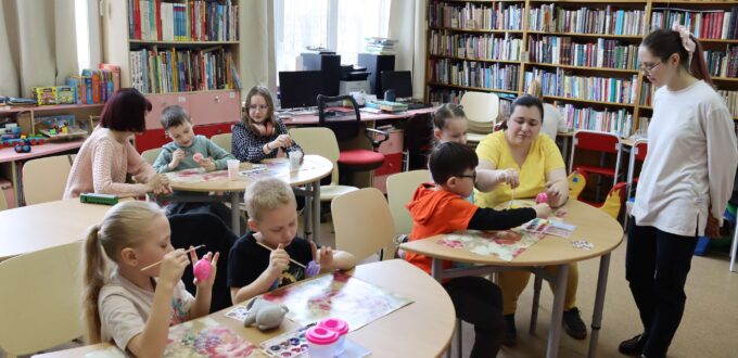 Для читателей прошёл воскресный семейный мастер-класс «Весенняя открытка своими руками»