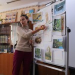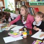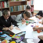 Марина Рюмшина провела для собравшихся мастер-класс в форме показательного урока. Художница предложила школьникам проиллюстрировать сказку «Берлога» иркутского писателя-эколога Софьи Бунтовской. Библиотекари заранее подготовили в читальном зале все необходимые материалы: карандаши, краски, бумагу.