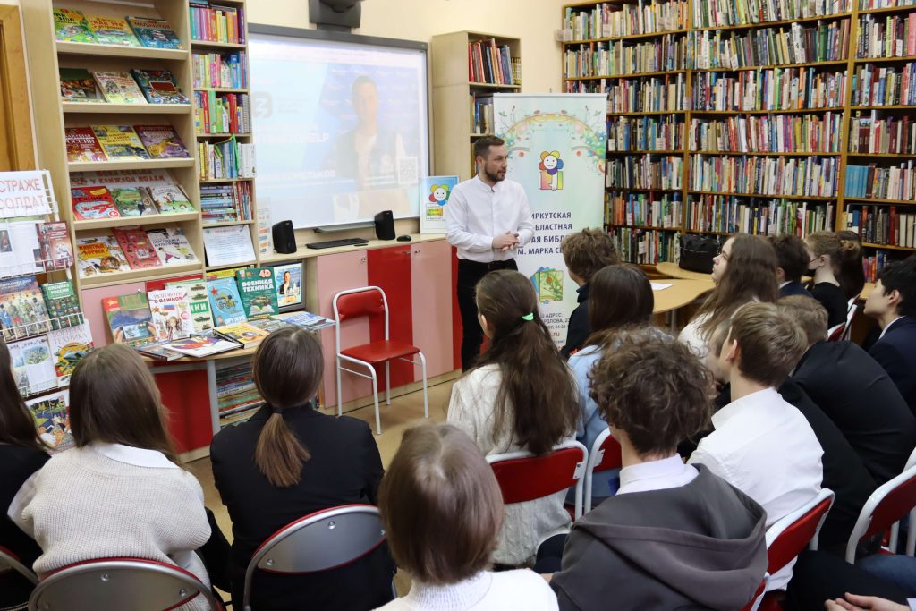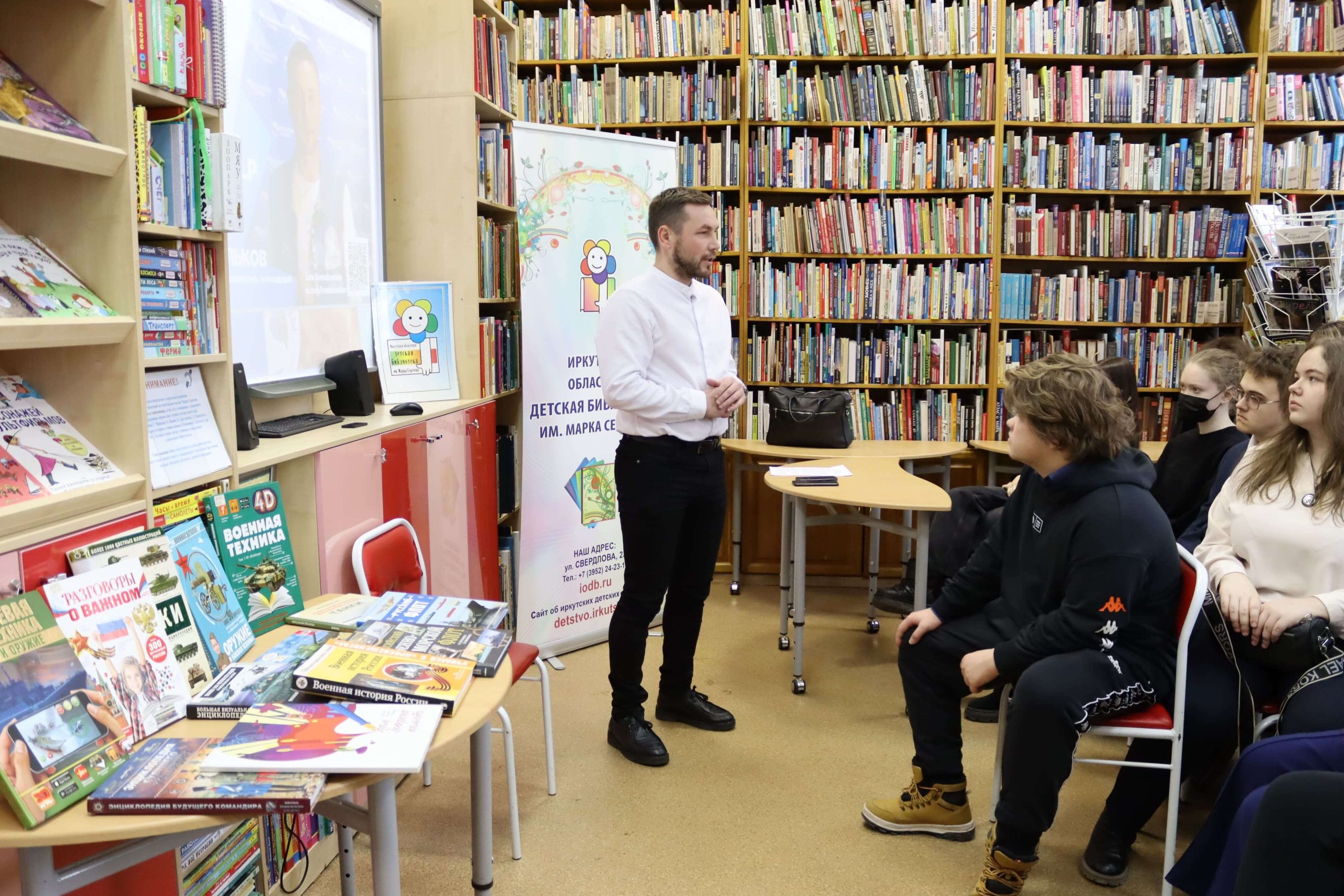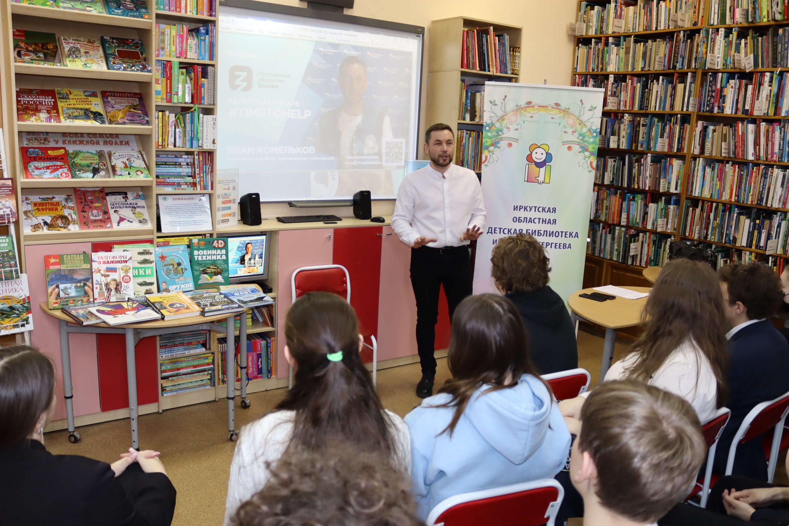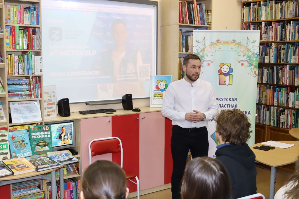 На встречу с подростками в библиотеку пришёл Иван Комельков, региональный координатор Всероссийского общественного движения «Волонтёры Победы», лектор регионального филиала Российского общества «Знание», телеведущий программы «Вести-Иркутск», журналист, лауреат премии по поддержке талантливой молодежи, отмечен благодарственным письмом и благодарностью президента России.