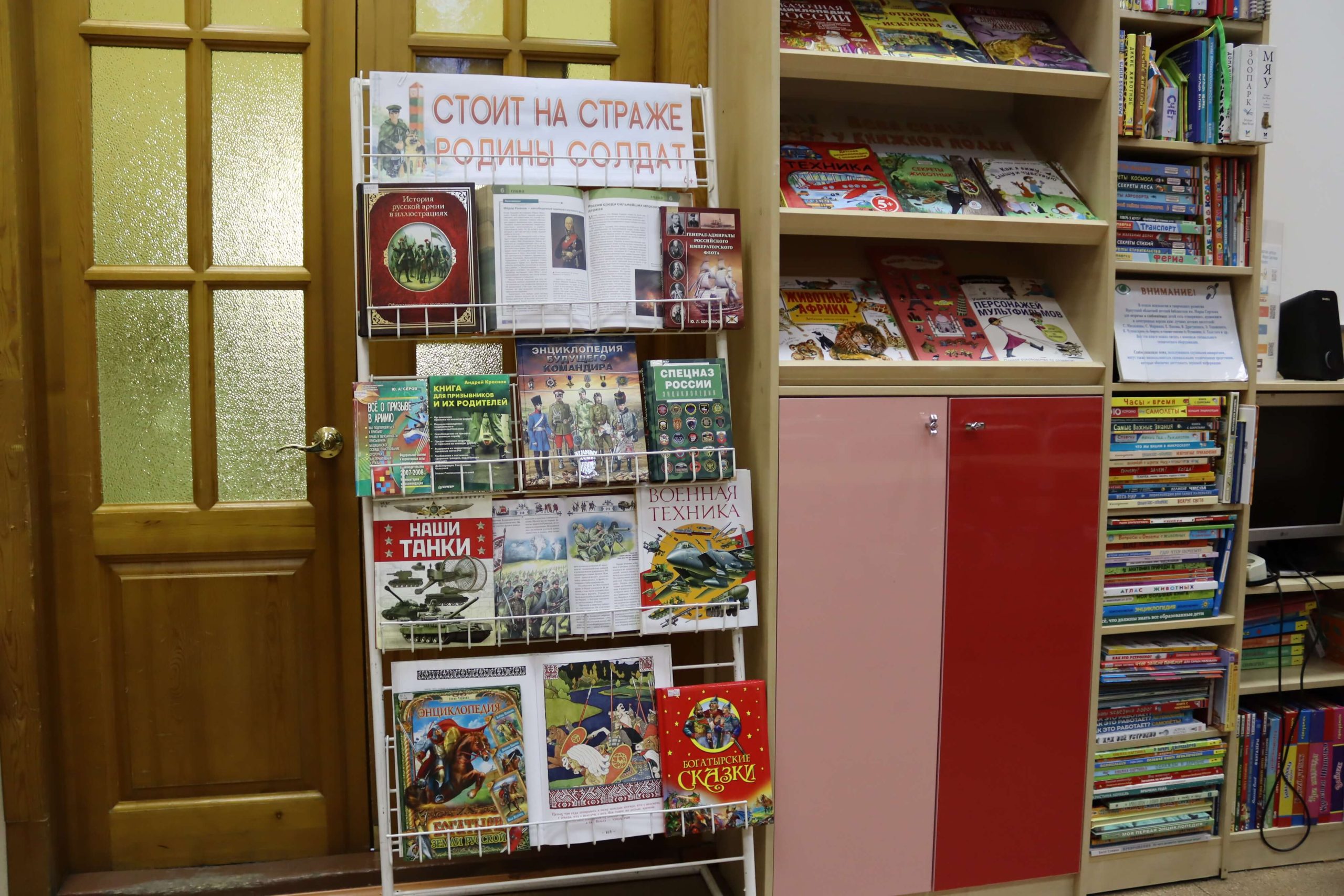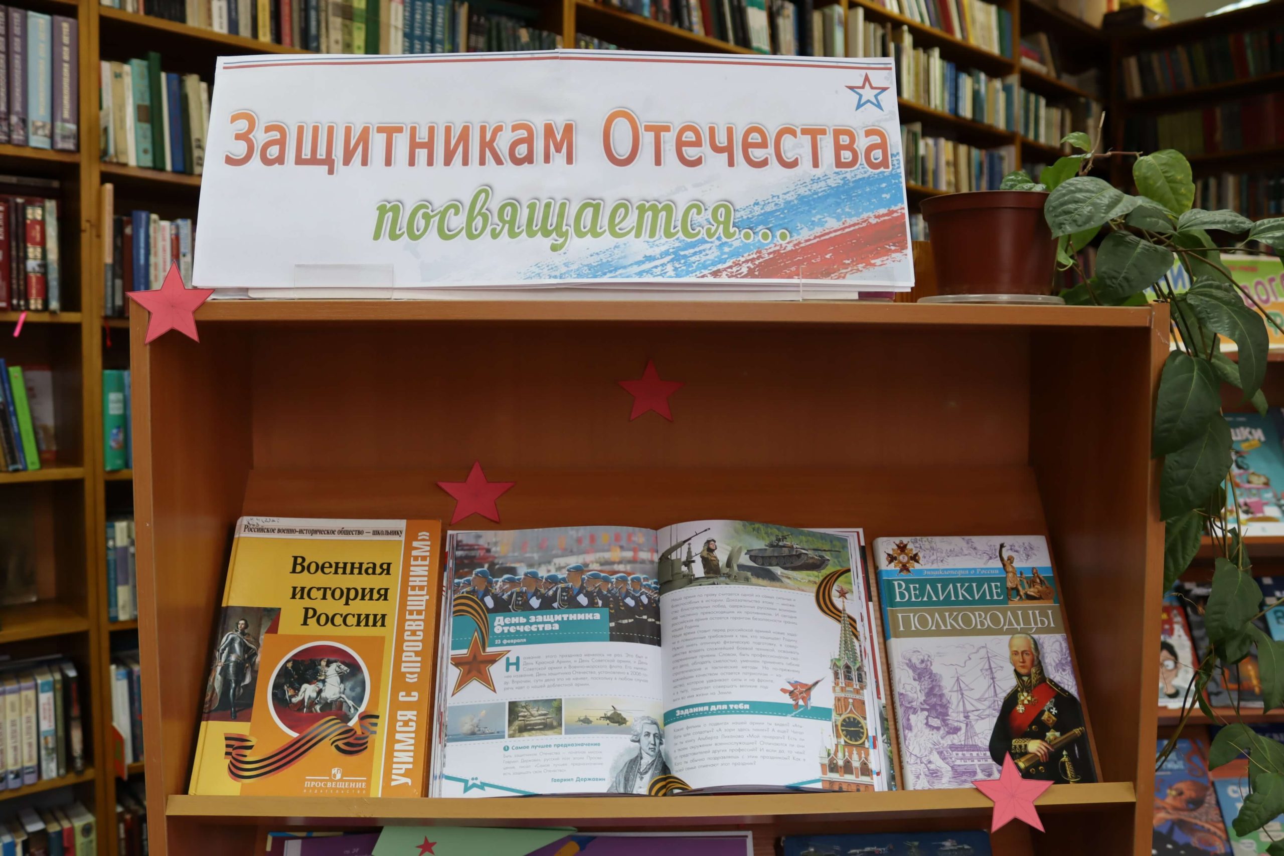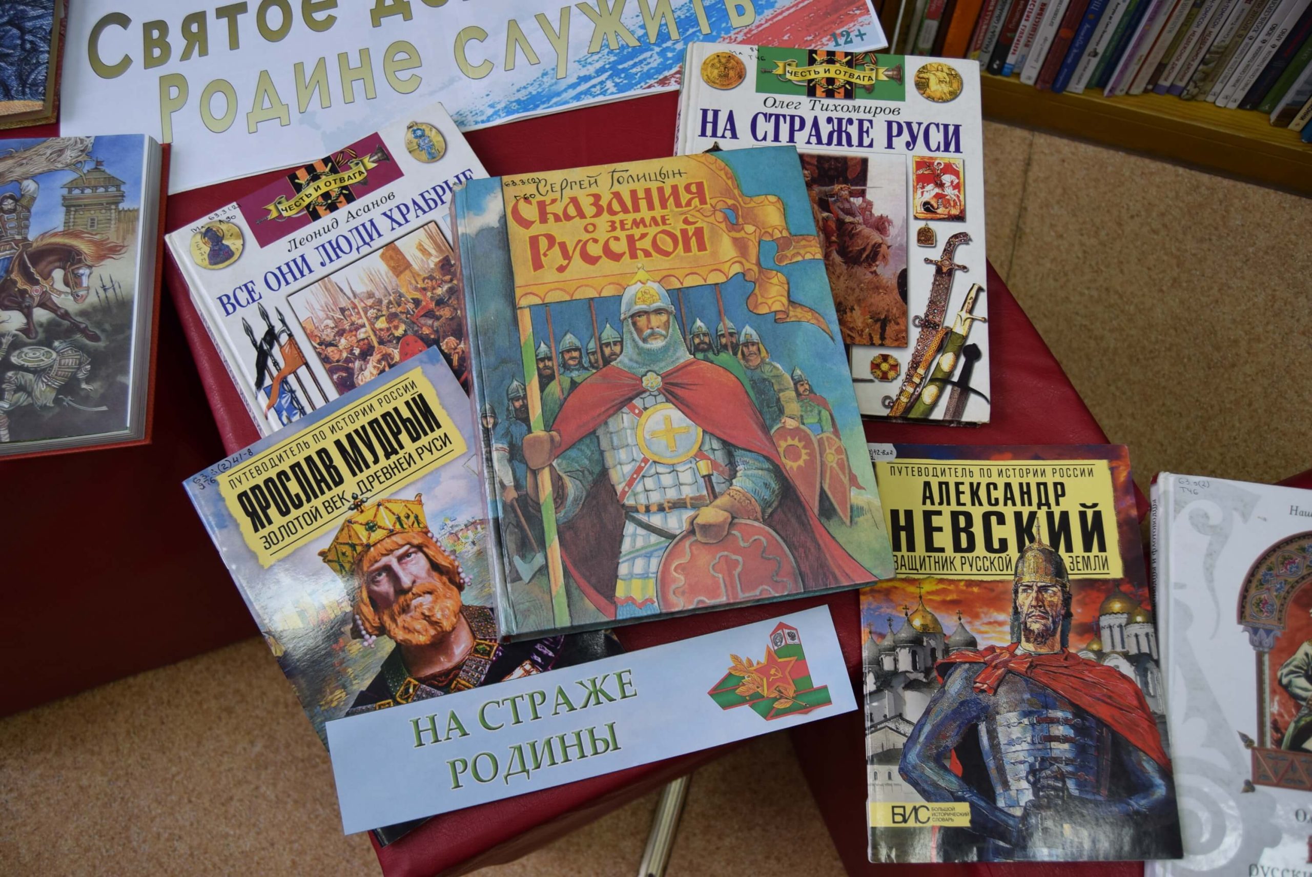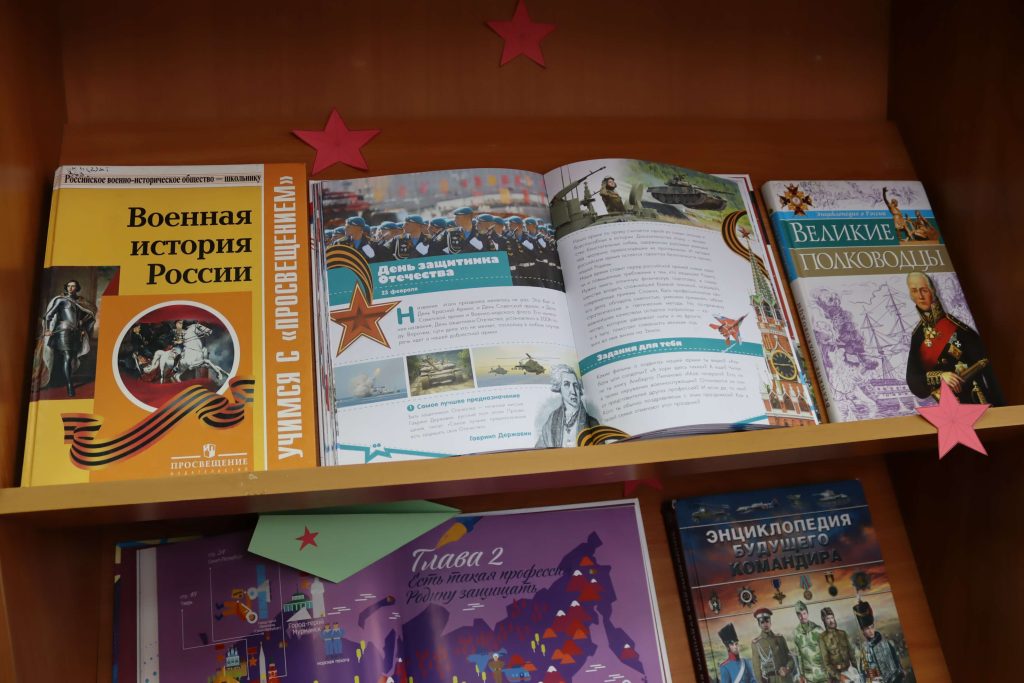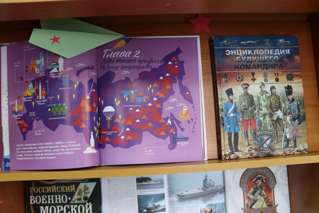 Книжная выставка «Армейская азбука» (6+) развёрнута в отделе обслуживания читателей до 10 лет. Представленные на выставке книги помогут читателям совершить исторический экскурс в героическое прошлое России и узнать об истории праздника. Среди книг– различные сборники стихов и рассказов о защитниках Родины, рассказы Сергея Алексеева о воинской доблести и смекалке, рассказы о полководцах, о победах и славе соотечественников, героические былины о защитниках земли Русской. Юным читателям будет интересна подборка книг энциклопедического характера, таких как «Моя Россия. Книга юного патриота», «Разговоры о важном» и другие книги.