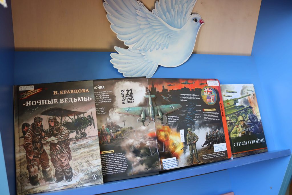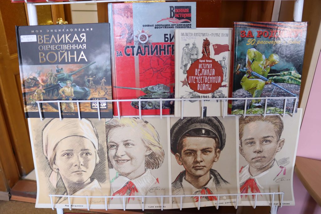 В отделе интернет-медиацентра оформлена книжно-иллюстративная выставка «Страницы этих книг расскажут о войне». В экспозиции представлены научно-популярные, энциклопедические и художественные книги, которые знакомят детей с реальными событиями Великой Отечественной.