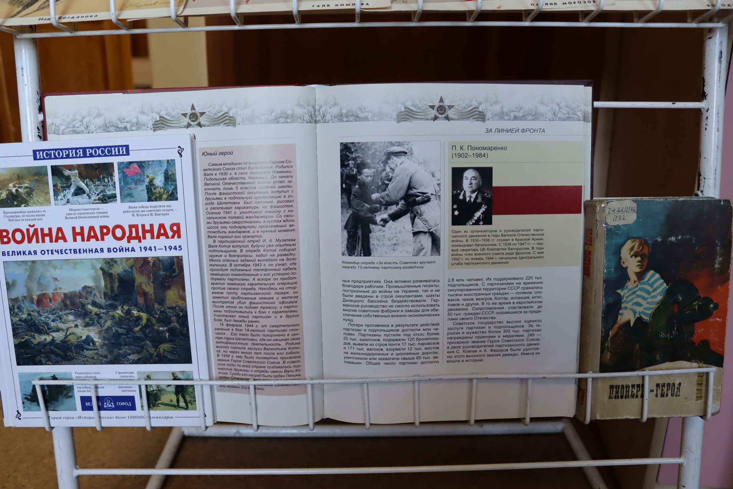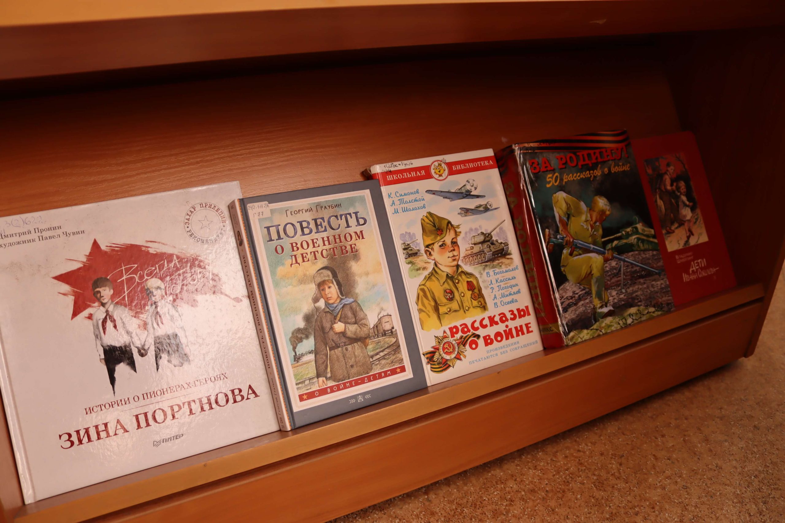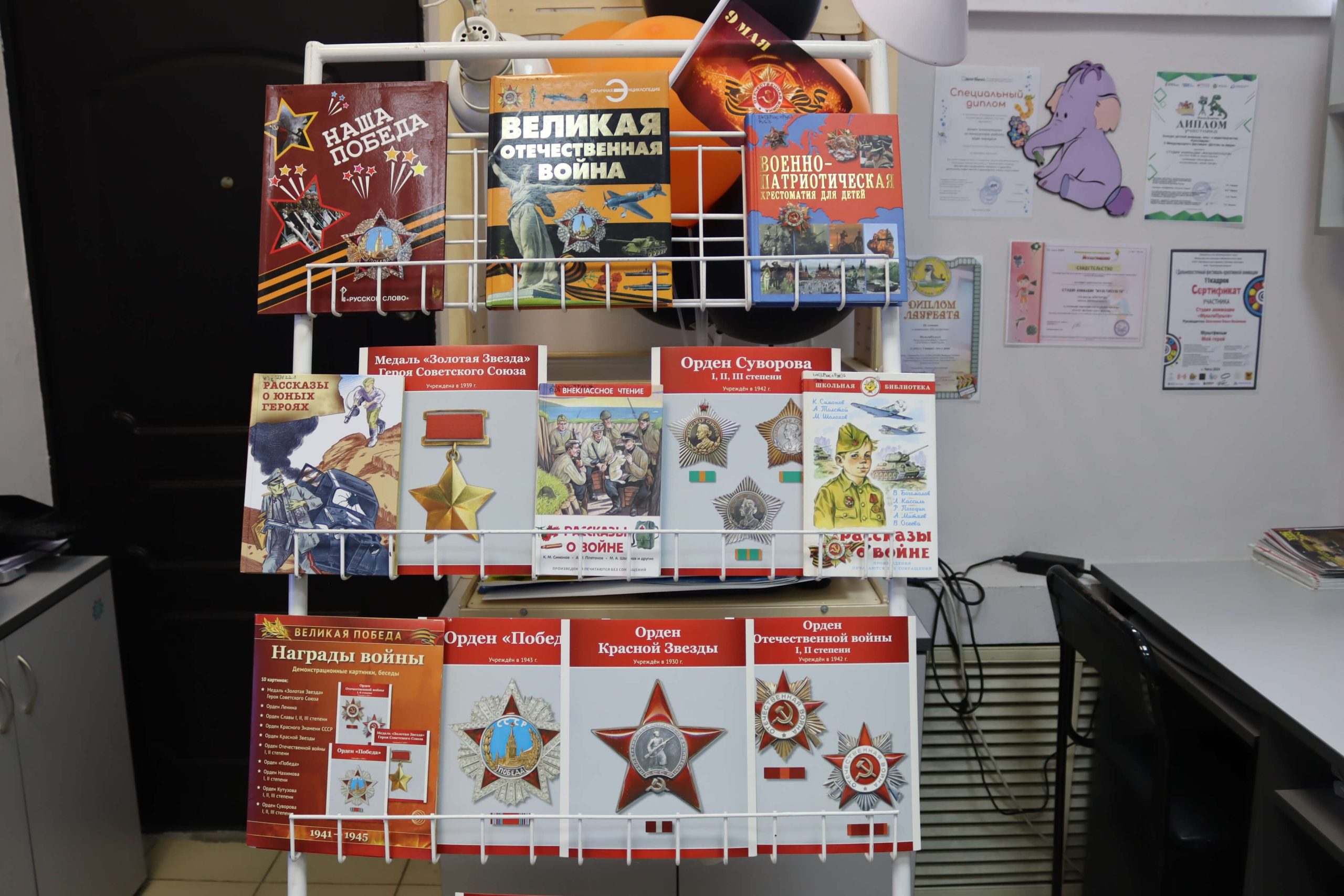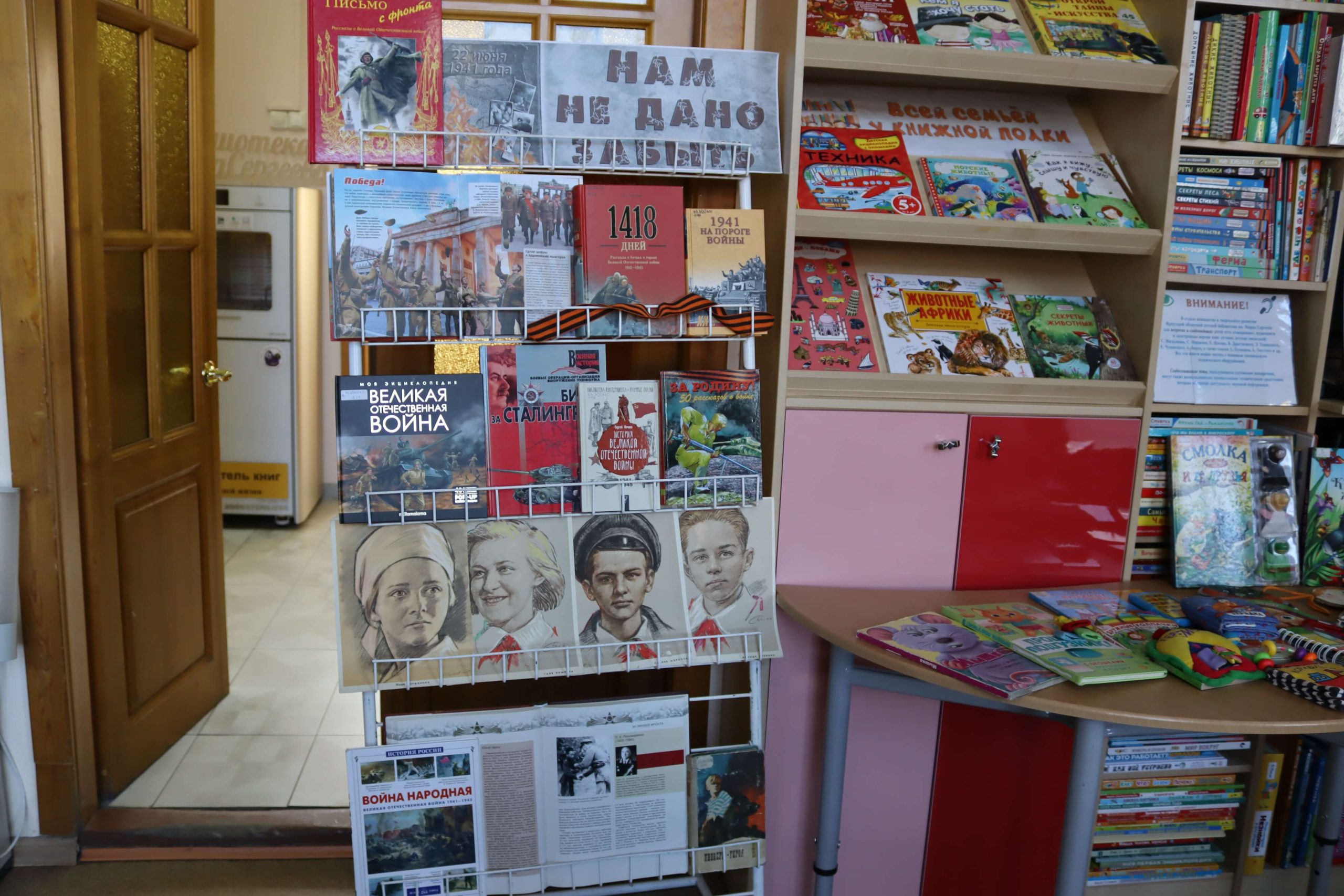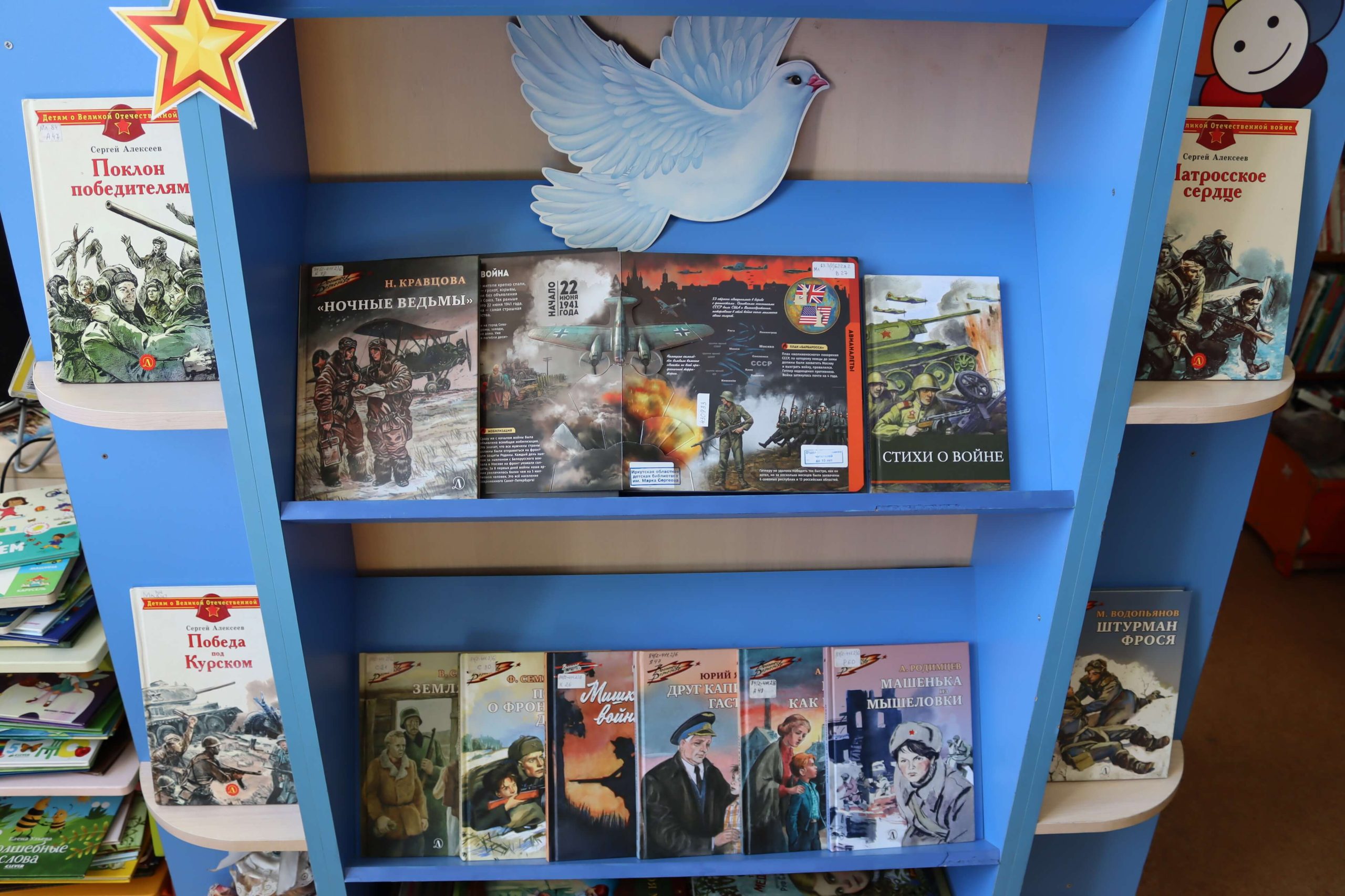 В отделе интернет-медиацентра оформлена книжно-иллюстративная выставка «Страницы этих книг расскажут о войне». В экспозиции представлены научно-популярные, энциклопедические и художественные книги, которые знакомят детей с реальными событиями Великой Отечественной.