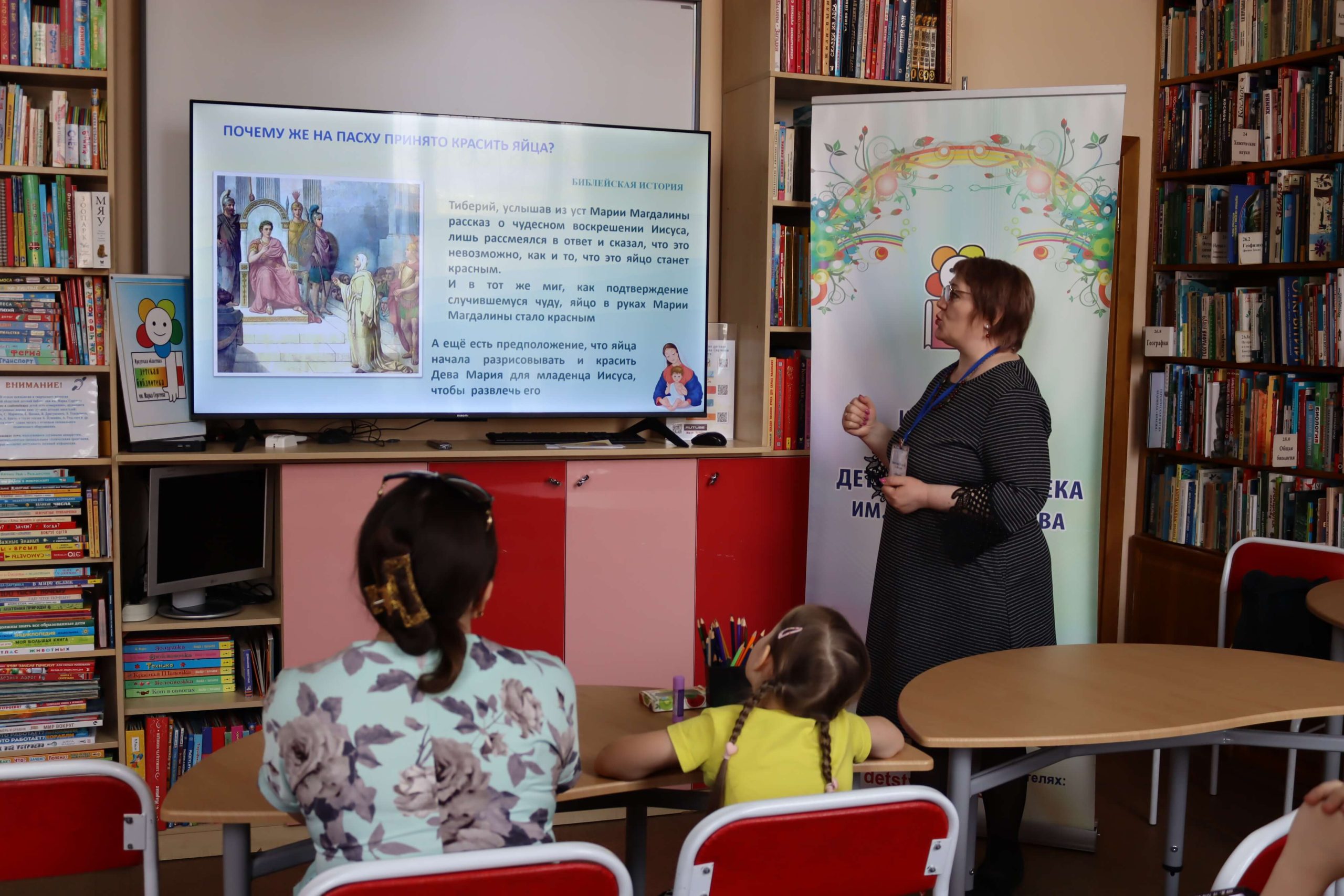 В воскресенье, 20 апреля, в Иркутской областной детской библиотеке им. Марка Сергеева для юных читателей и их родителей прошёл познавательный час и воскресный семейный мастер-класс «История пасхального яйца». Мероприятие было приурочено к празднику светлой Пасхи и являлось составной частью II Байкальского Пасхального фестиваля.