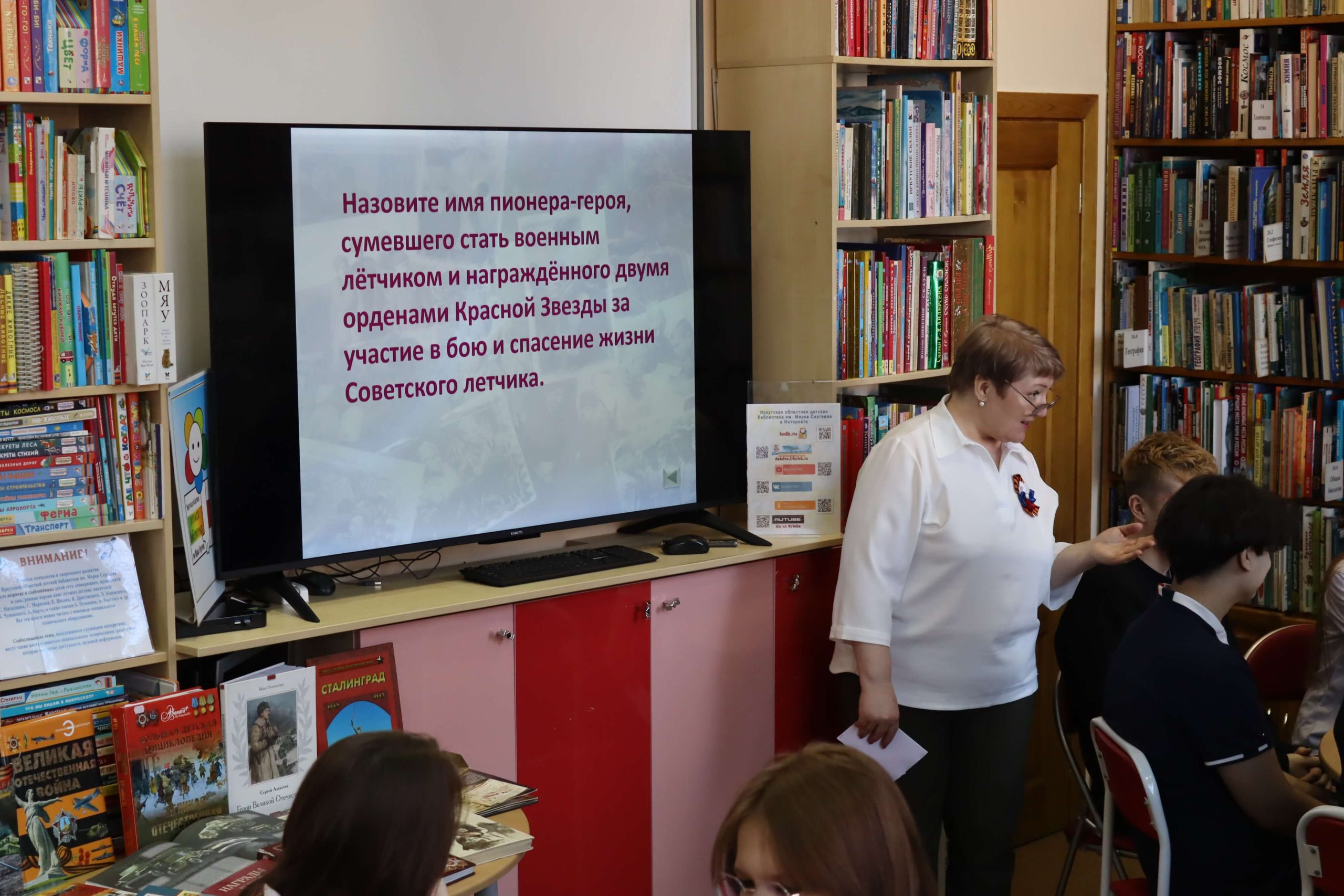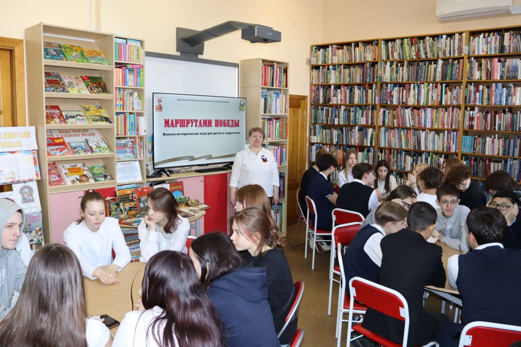 Для читателей старшего школьного возраста 23 апреля в Иркутской областной детской библиотеке им. Марка Сергеева прошла военно-историческая игра «Маршрутами Победы» в формате интеллектуальной викторины, приуроченная к 80-летию Победы в Великой Отечественной войне.
