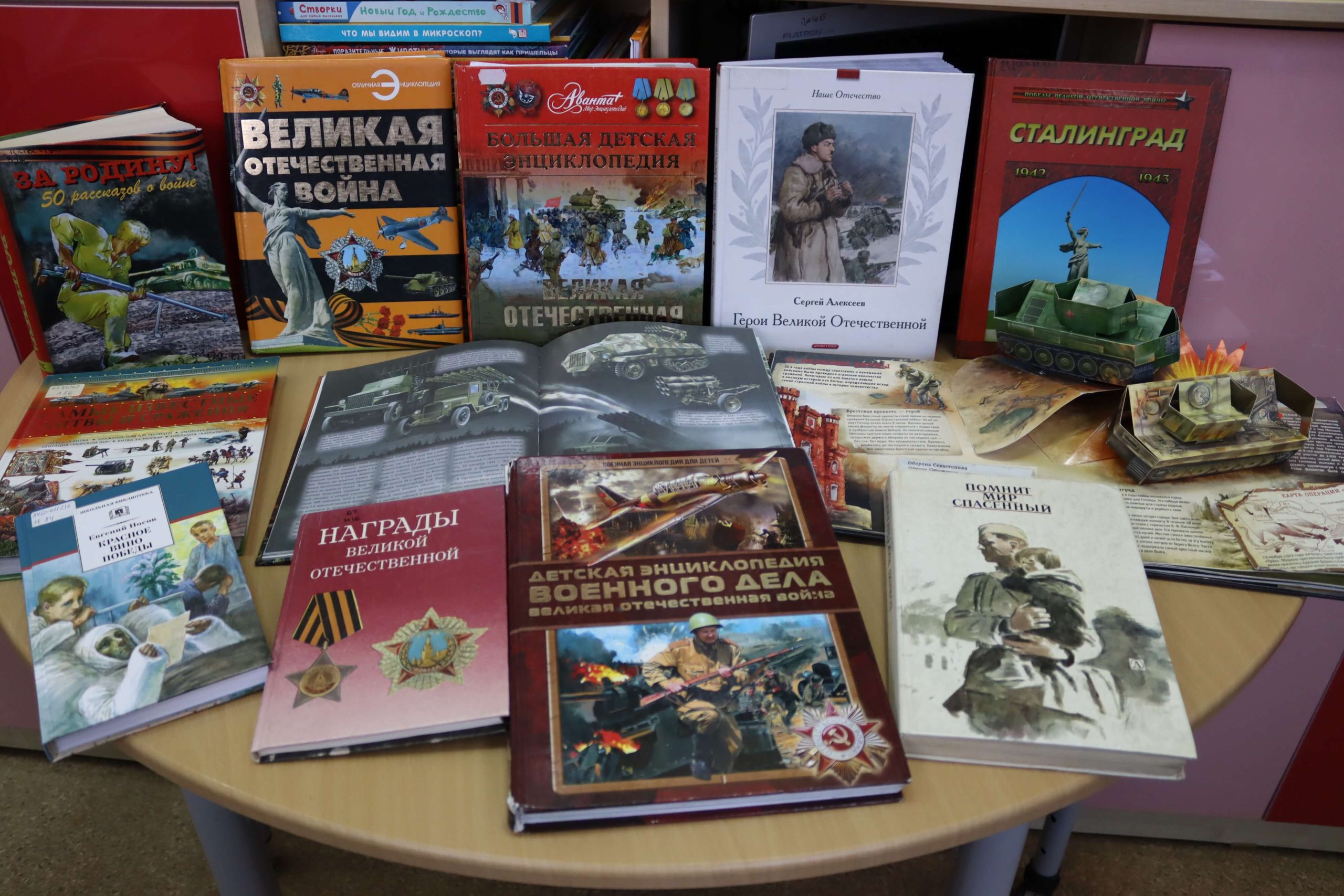 Мероприятие сопровождала выставка разных книг о войне, наградах, военной технике, в том числе яркие панорамные книги.