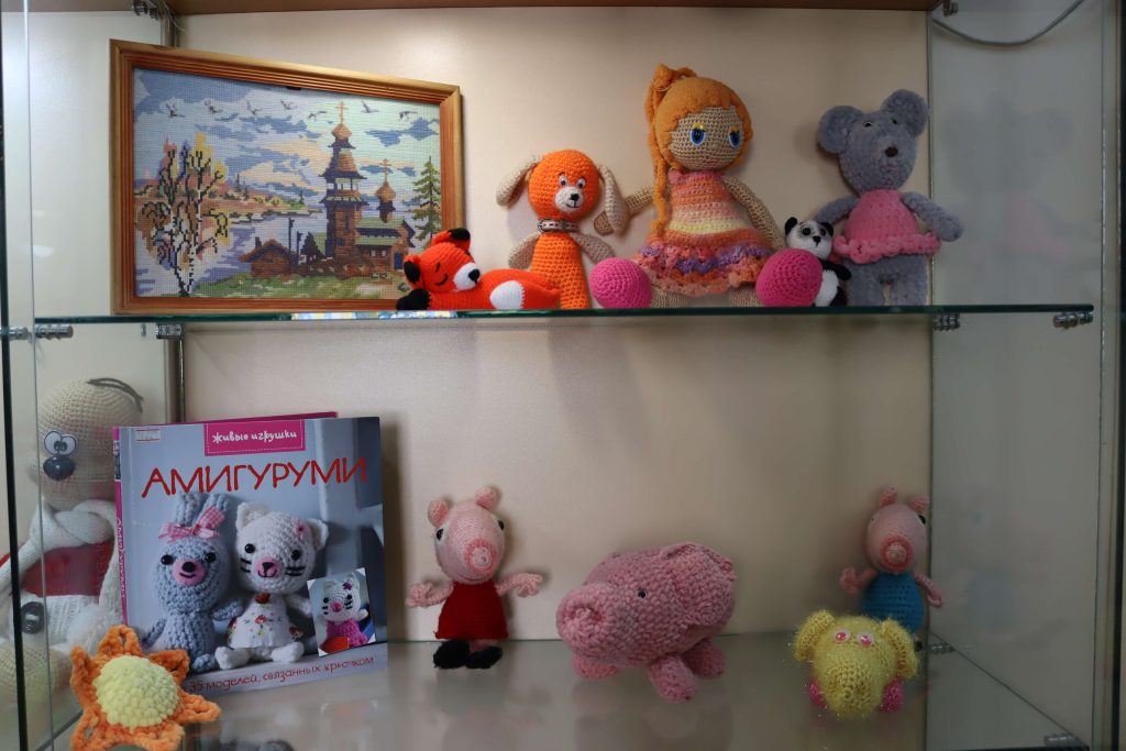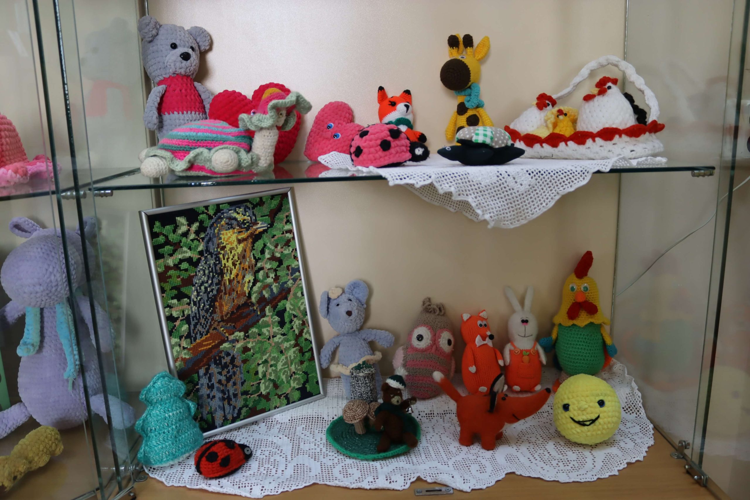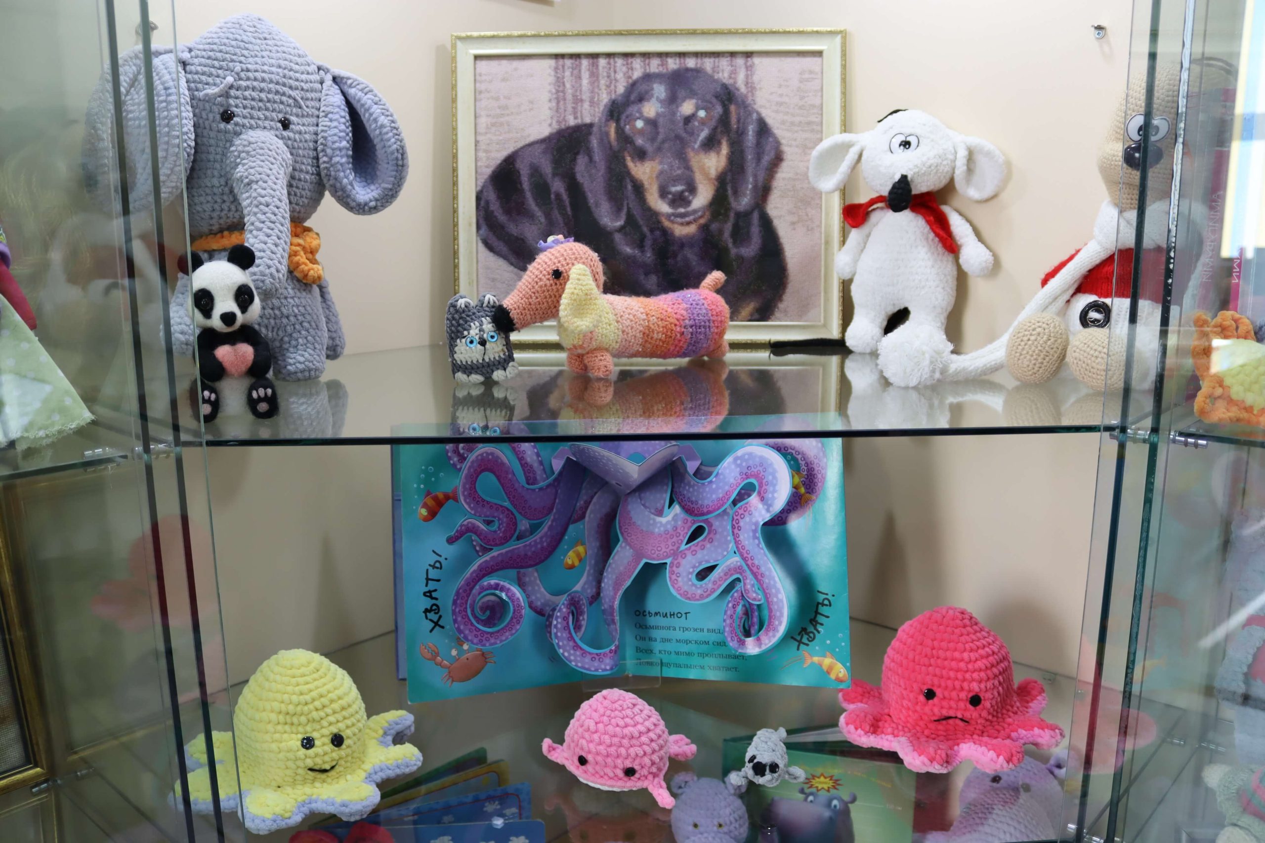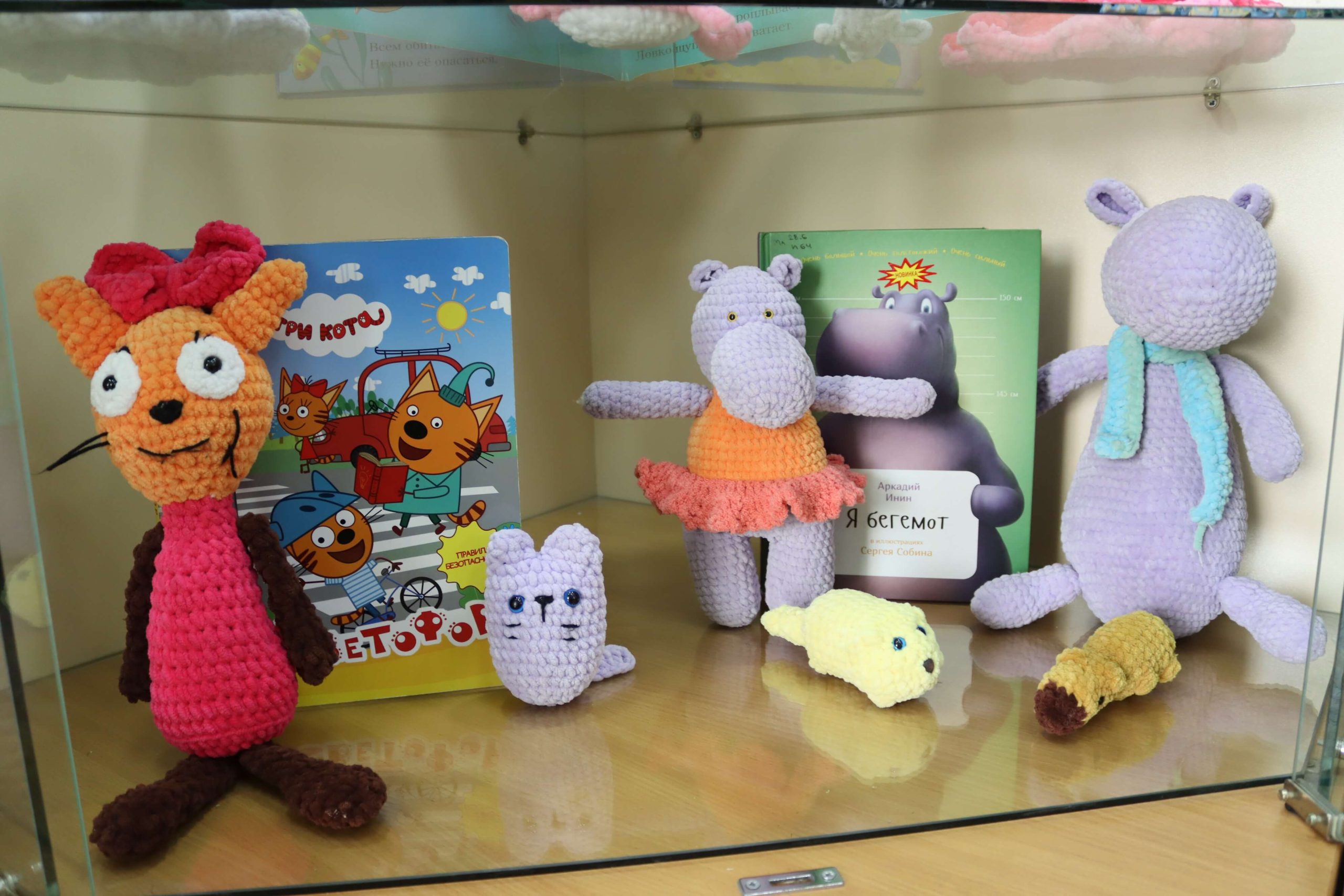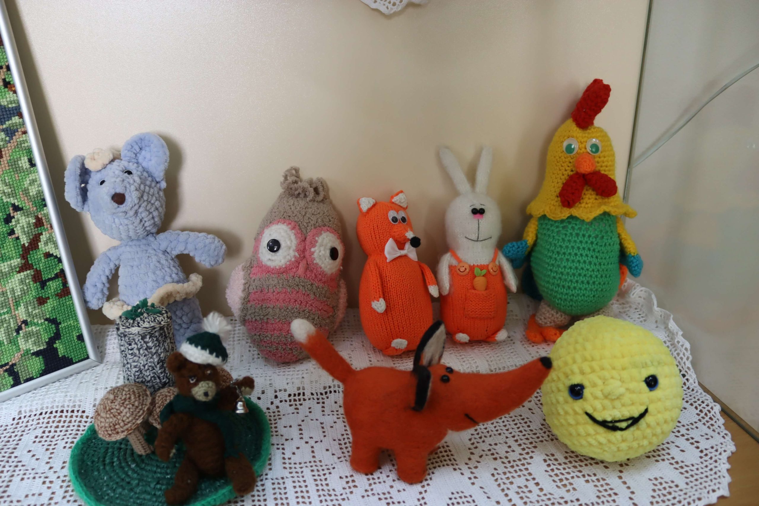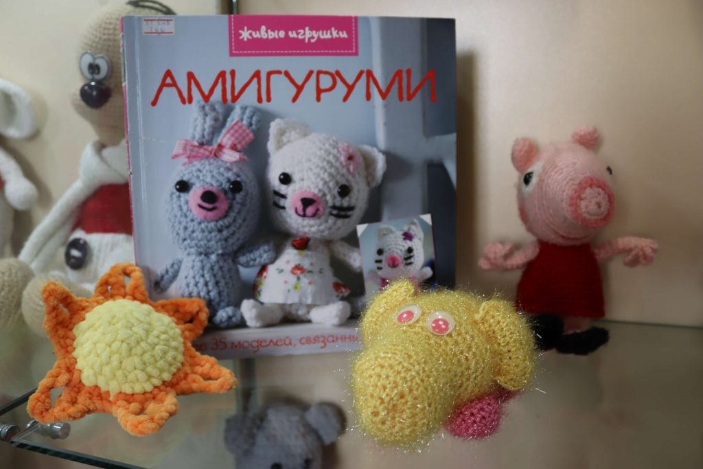Валентина Тырышкина создала игрушки в японской технике амигуруми, это искусство вязания крючком фигурок из пряжи. Муми-тролли, осьминожки, меняющие свой цвет, три кота, забавная свинка – юные читатели узнают любимых героев книжек и мультфильмов. Порадуют их также валяные из шерсти миниатюрная лисичка и панда Ольги Шевченко, вязаное лукошко с курочками, цыплёнком и золотым яичком Татьяны Плотниковой и многое другое.