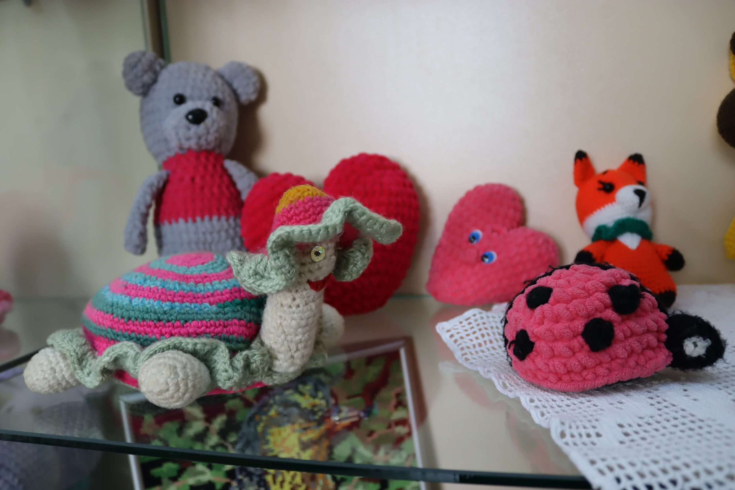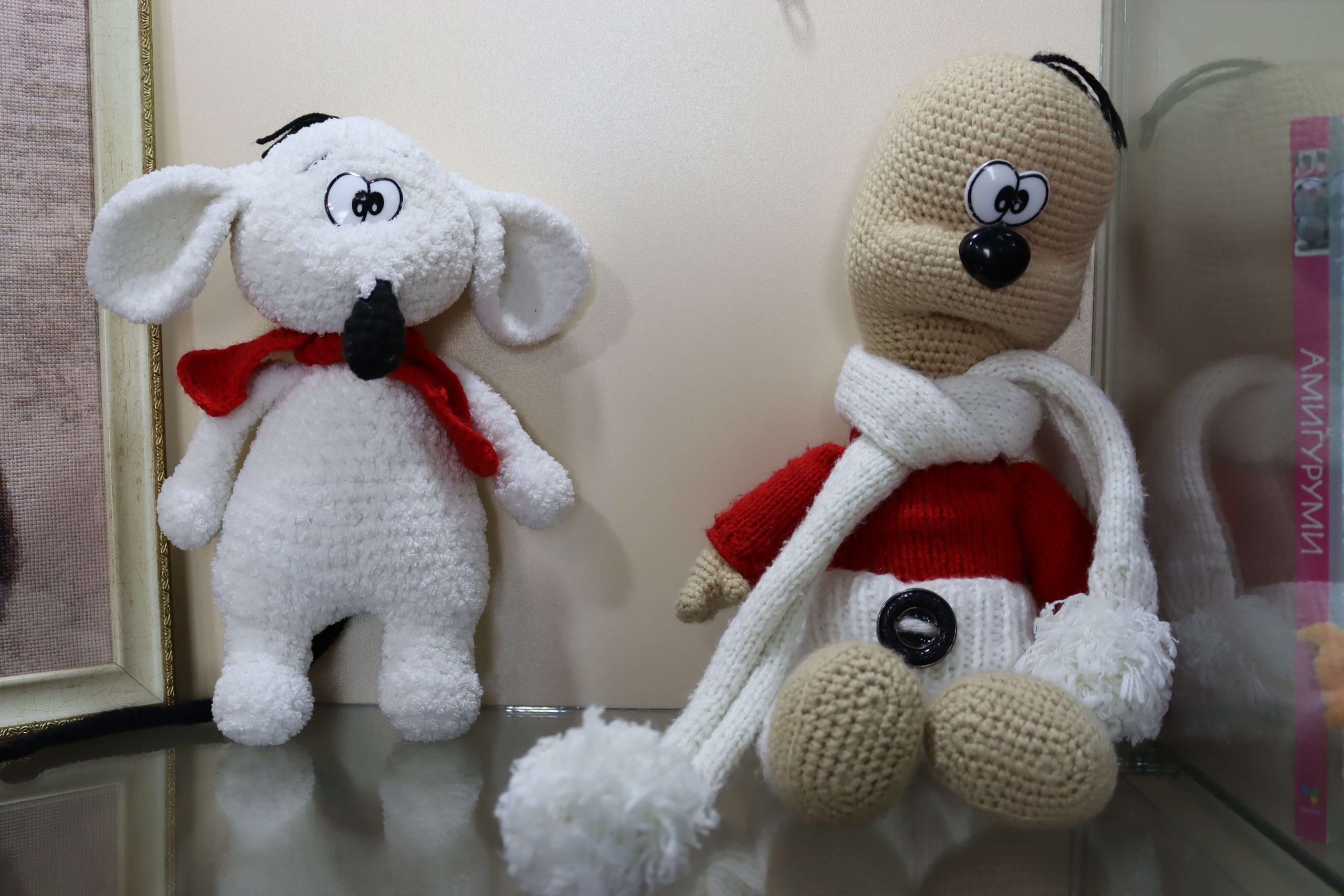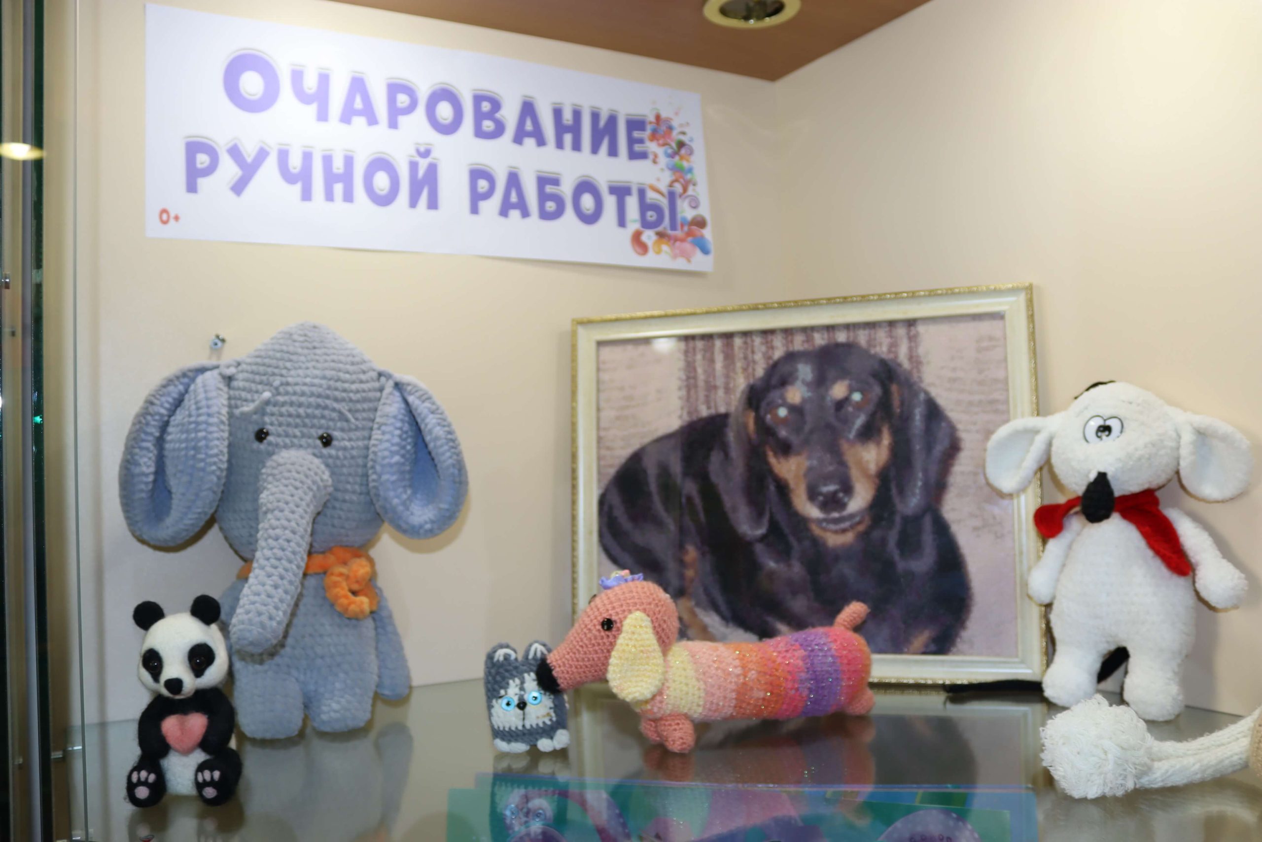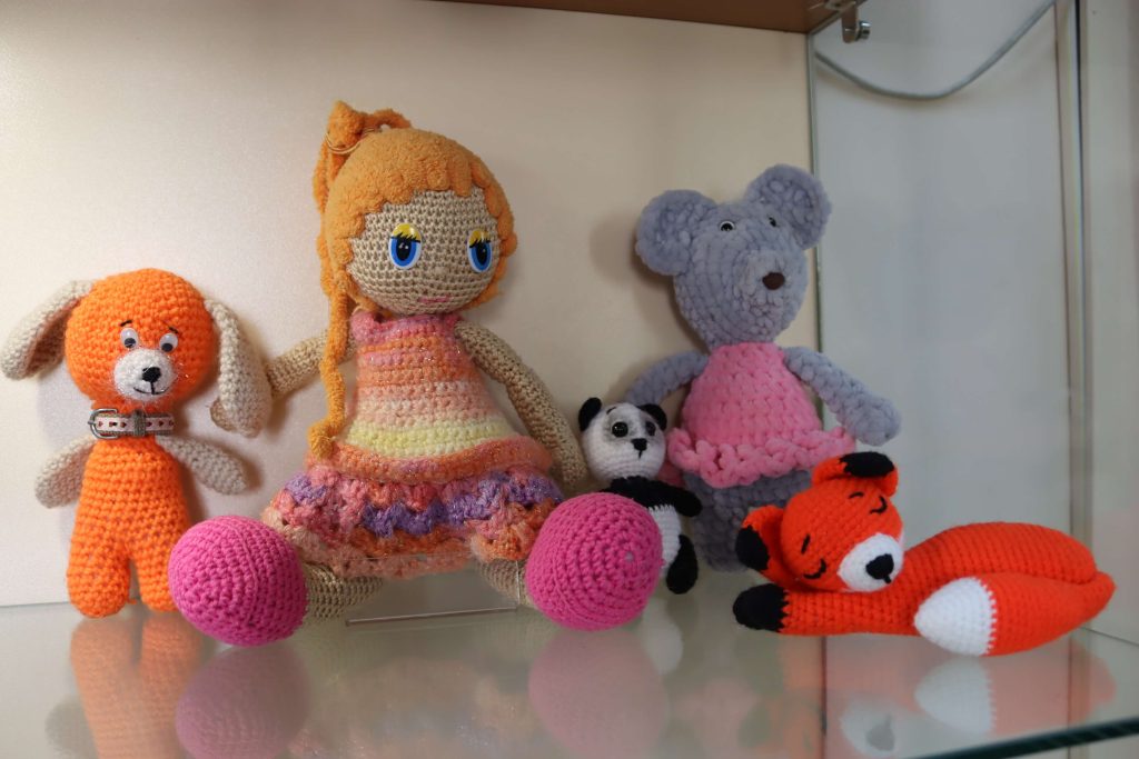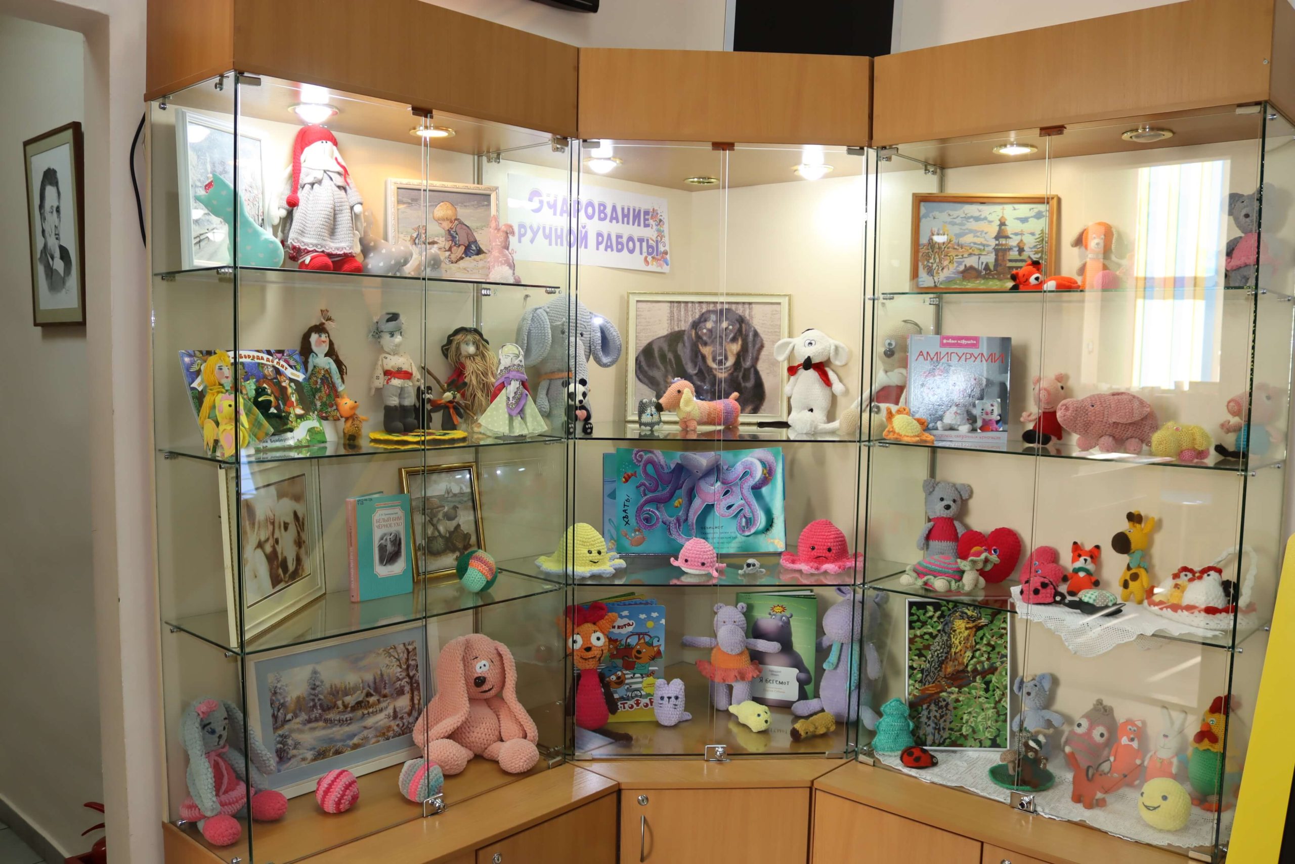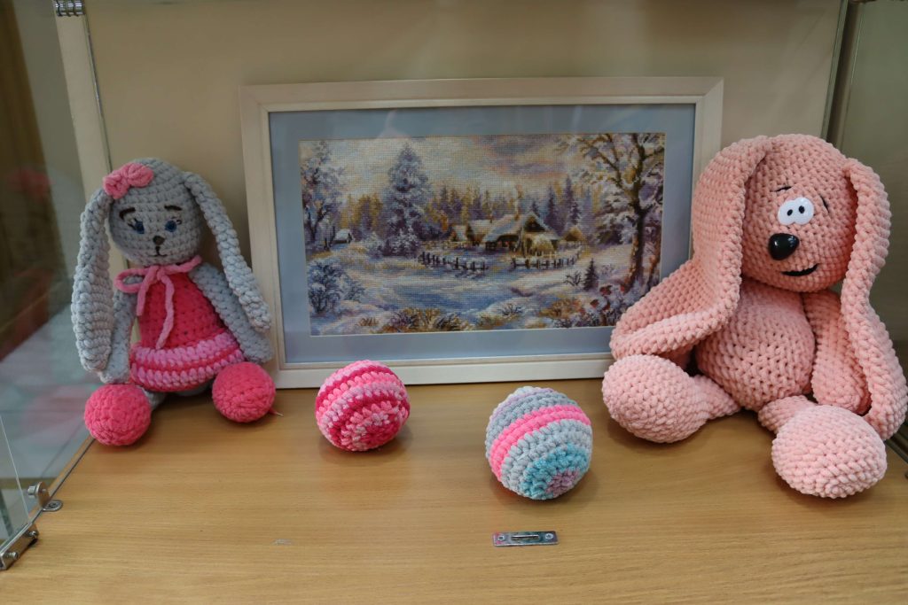 Валентина Тырышкина создала игрушки в японской технике амигуруми, это искусство вязания крючком фигурок из пряжи. Муми-тролли, осьминожки, меняющие свой цвет, три кота, забавная свинка – юные читатели узнают любимых героев книжек и мультфильмов. Порадуют их также валяные из шерсти миниатюрная лисичка и панда Ольги Шевченко, вязаное лукошко с курочками, цыплёнком и золотым яичком Татьяны Плотниковой и многое другое.