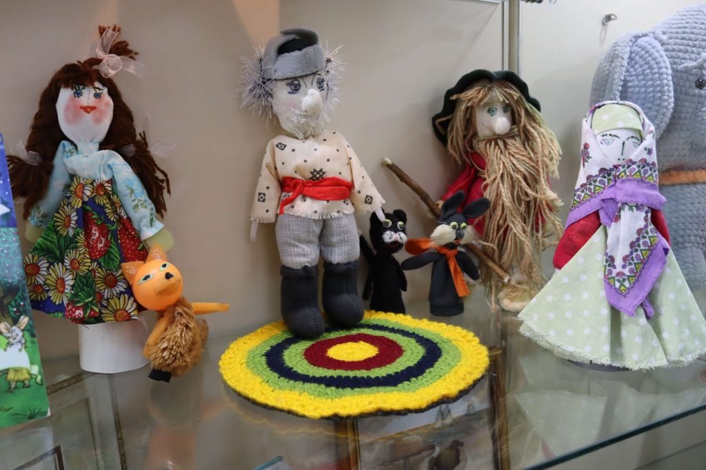 Светлана Дузь принесла яркие вязаные игрушки – персонажей русских сказок, среди которых выделяется храбрый петушок. А Елена Шульгина сотворила ложковые куклы, традиционные матерчатые, – героев сказки сибирского писателя Анатолия Байбородина «Косопят – борода до пят». Эти куклы имеют простую форму и символизируют народные обычаи и верования.