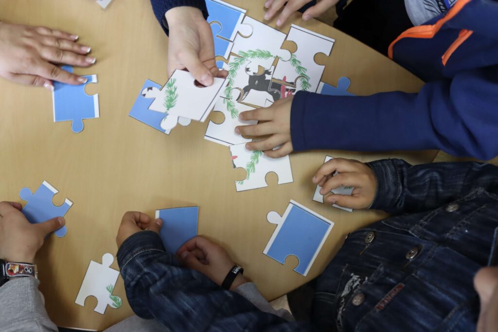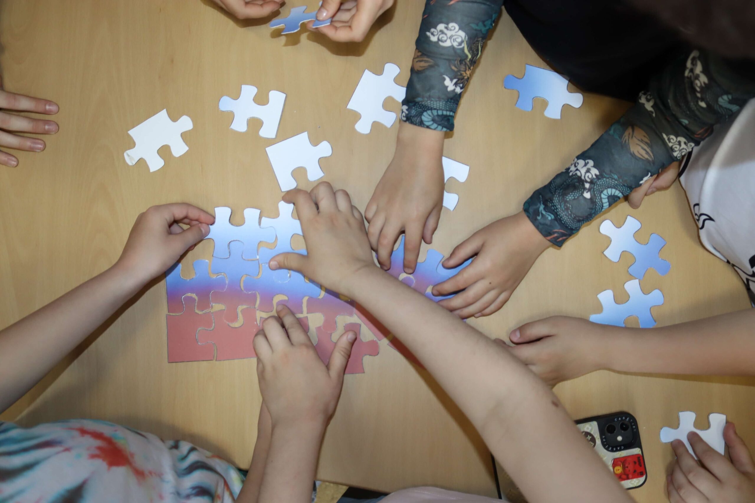 На станции «Символы России» школьники вспомнили официальные символы нашей страны: герб, флаг и гимн, а также неофициальные общепризнанные символы, которые отражают историю и культуру России – это матрёшка, самовар, балалайка, берёза, русская тройка, Кремль, медведь и другие. Объединившись в две команды, дети на скорость собирали пазлы из цветной бумаги, складывая флаг России и герб Иркутской области.