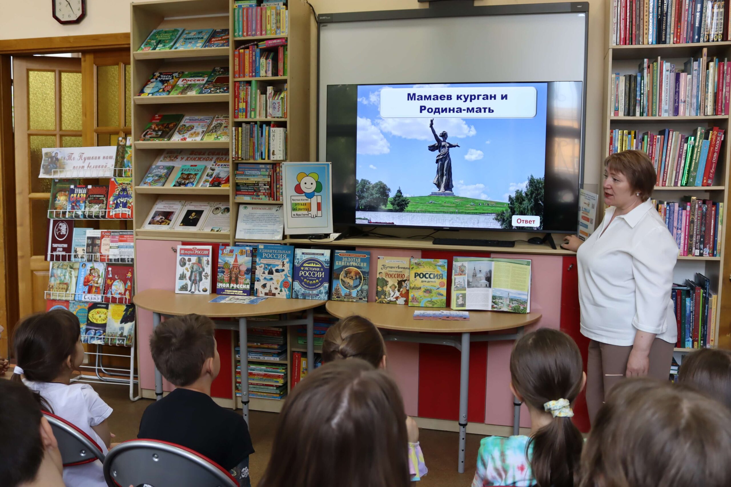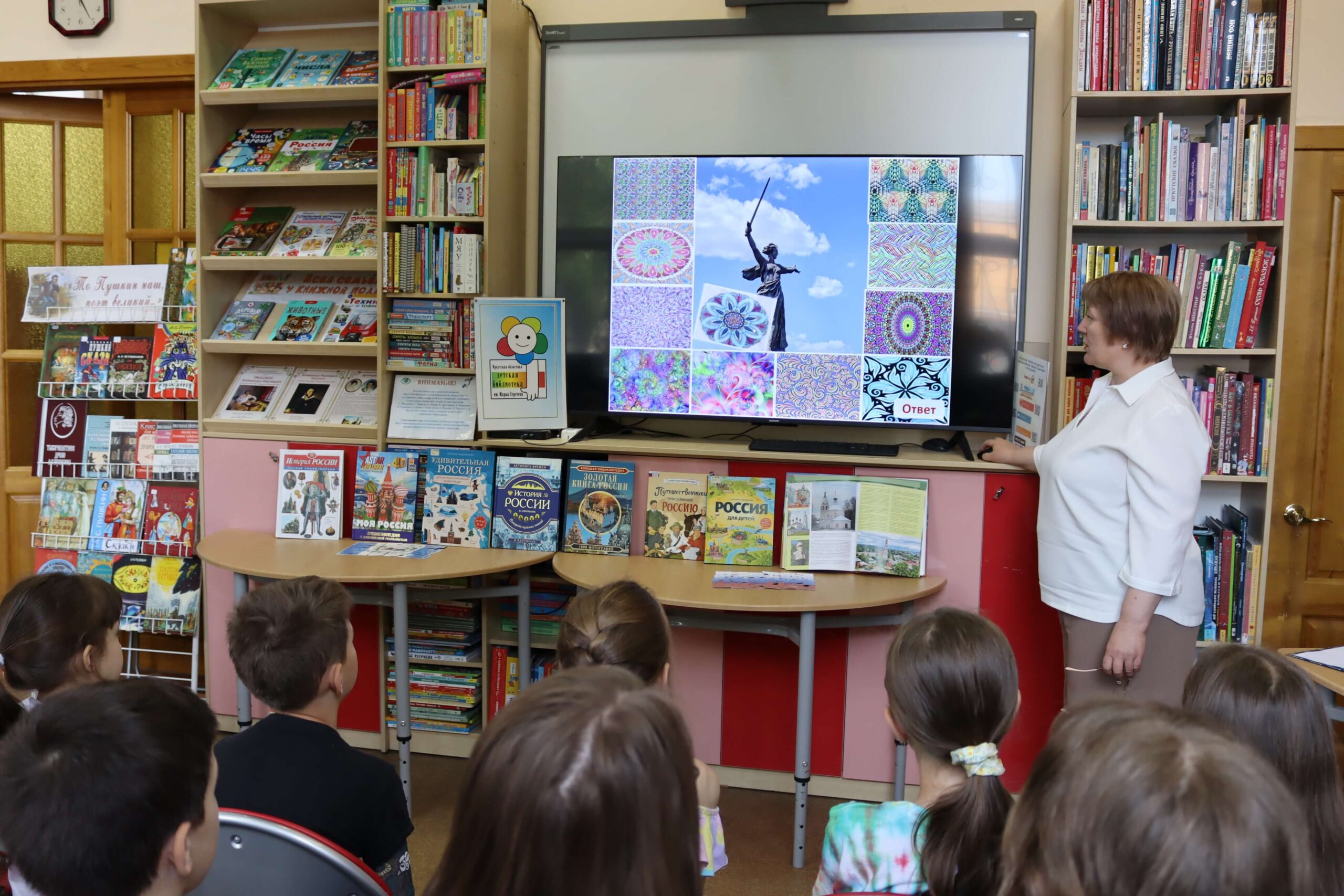 Используя мультимедийную презентацию, библиотекарь в форме викторины познакомила присутствующих с удивительными природными и архитектурными чудесами нашей страны и родного Приангарья. Дети сразу узнали грандиозный памятник «Родина-мать зовёт!» в Волгограде, вспомнили реку Лену, протекающую в Иркутской области и входящую в десятку длиннейших рек на земле и многое другое.