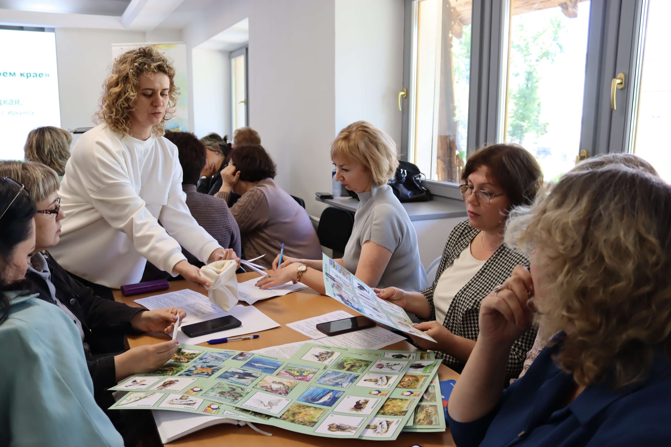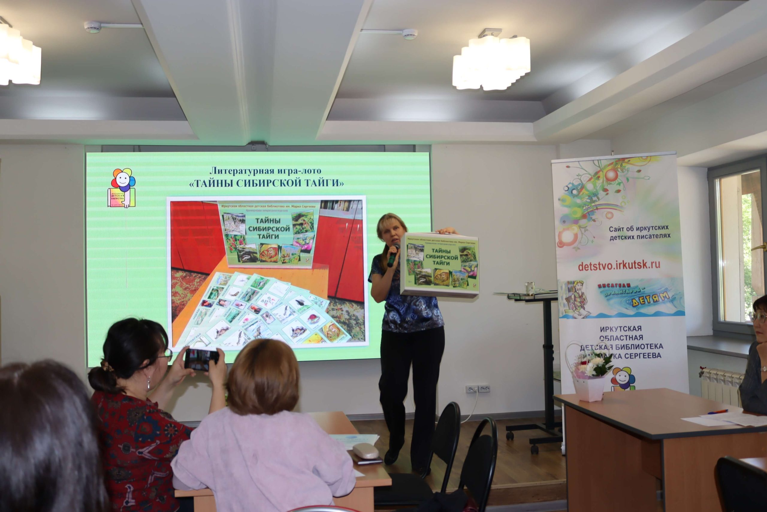 Главный библиотекарь отдела краеведения и библиографии Иркутской областной детской библиотеки им. Марка Сергеева Майя Тропина представила новую настольную игру – литературное краеведческое лото «Тайны сибирской тайги». В основу положены художественные произведения девяти писателей-натуралистов, профессиональных биологов, которые изучали природу Иркутской области. В игру могут играть дети, начиная с первого класса. Майя Тропина выразила готовность провести игру в других библиотеках, те могут сами заказать её для себя.