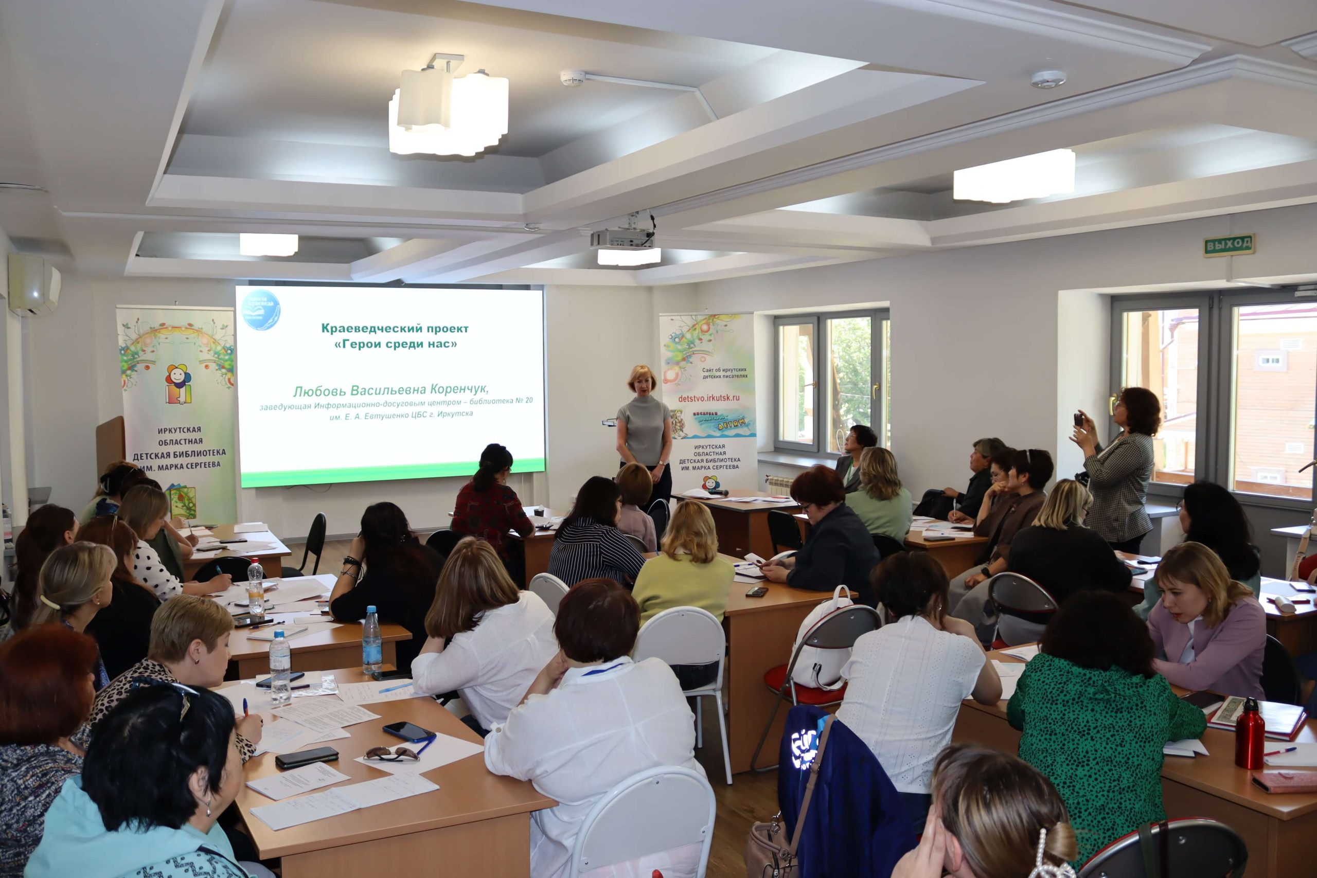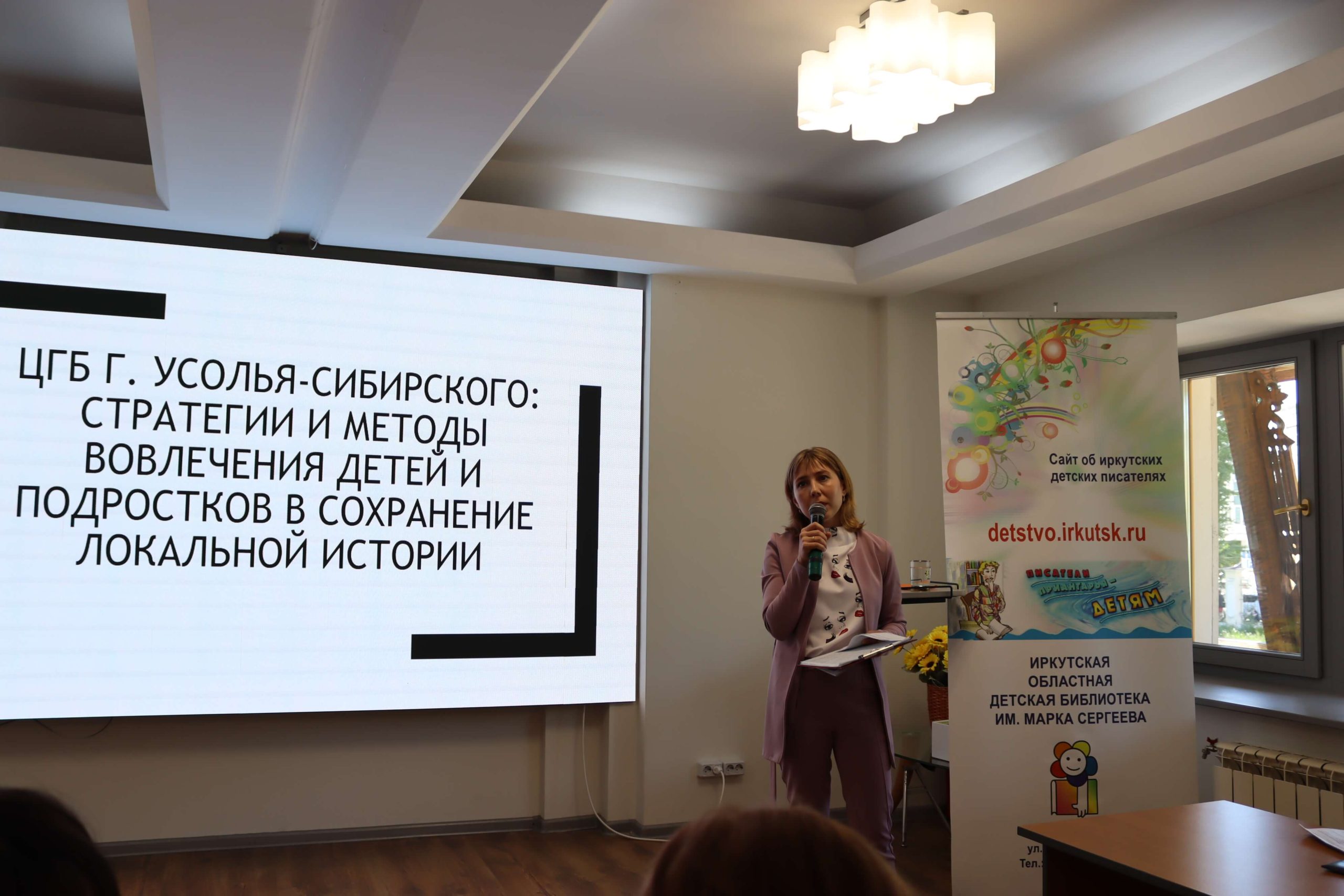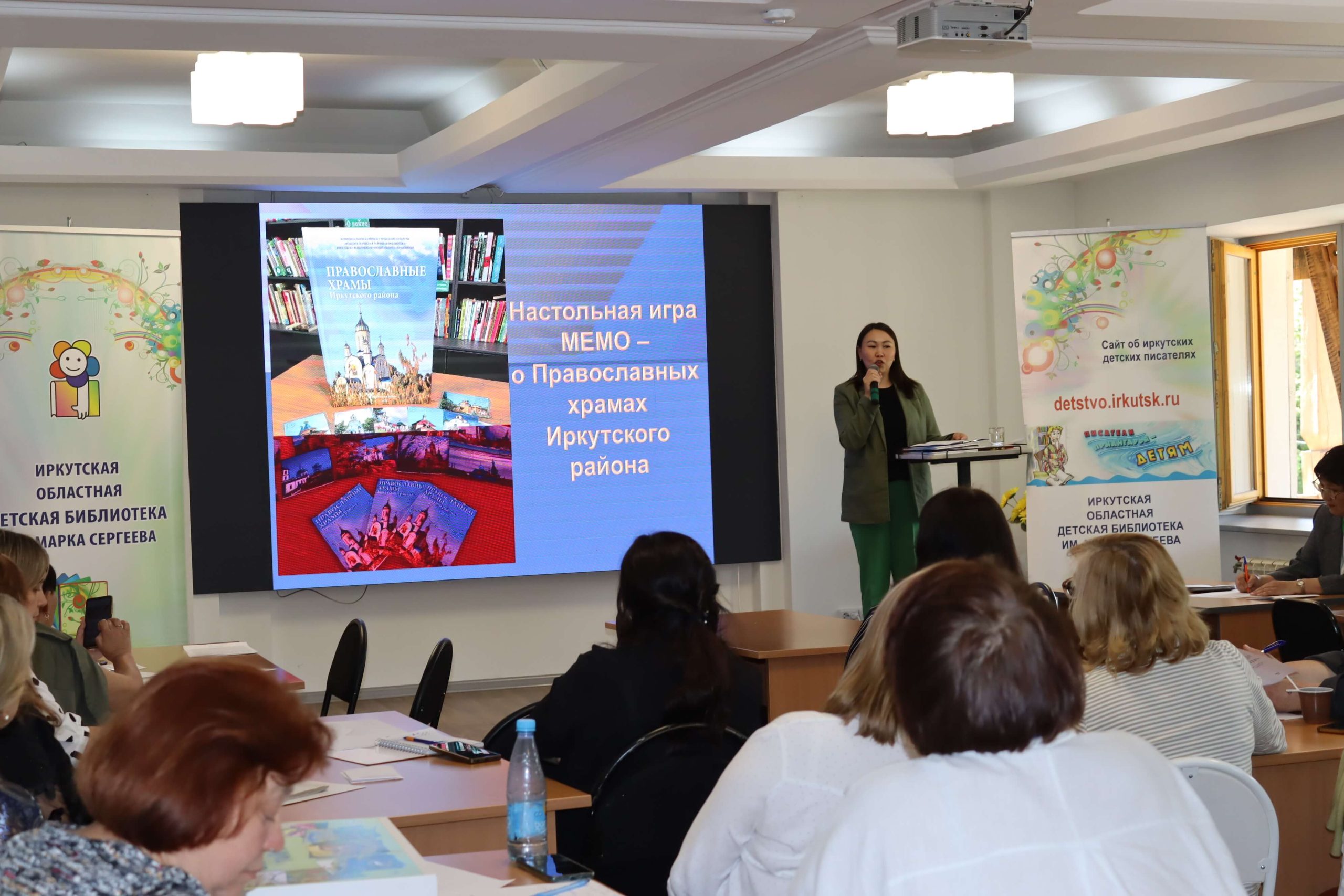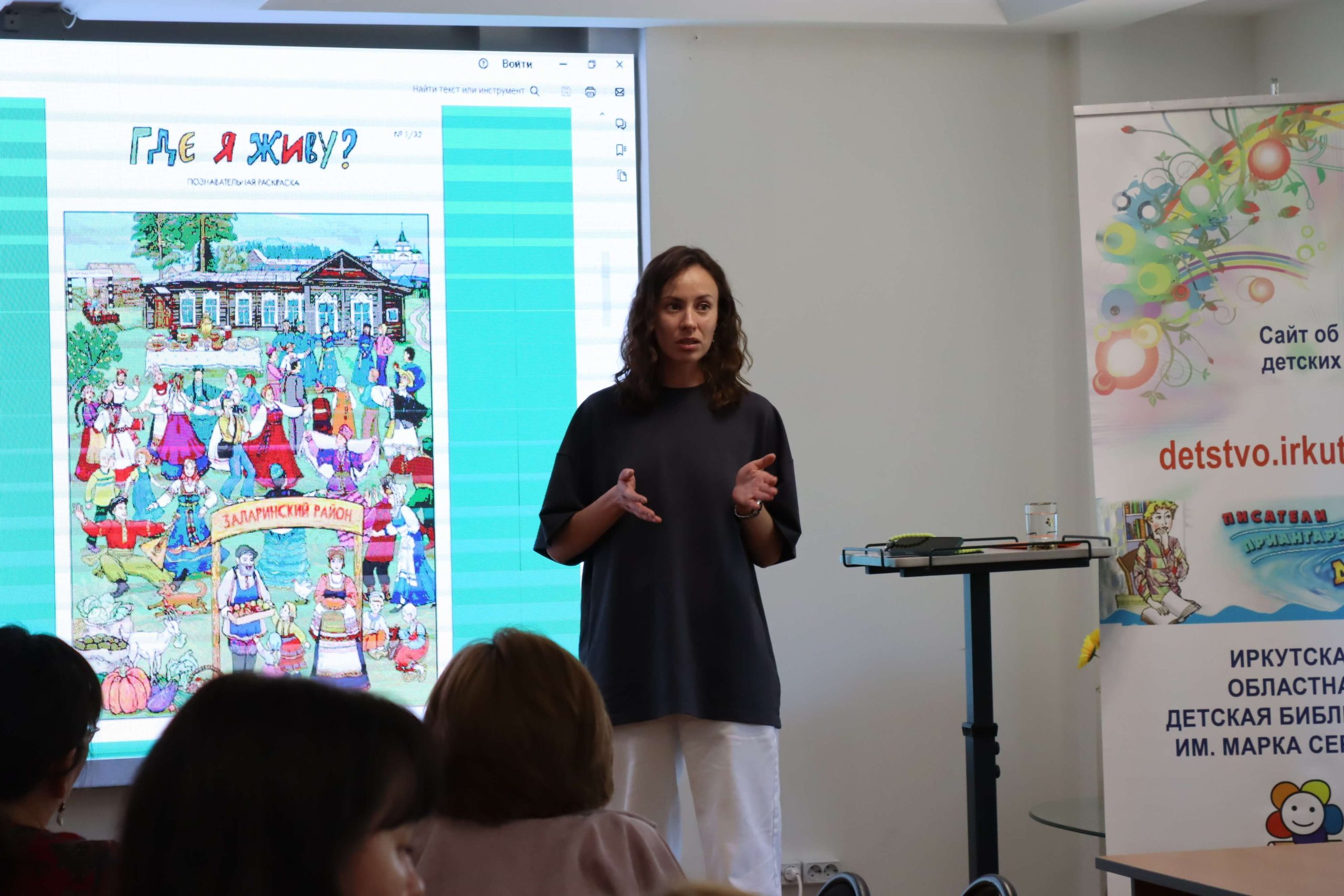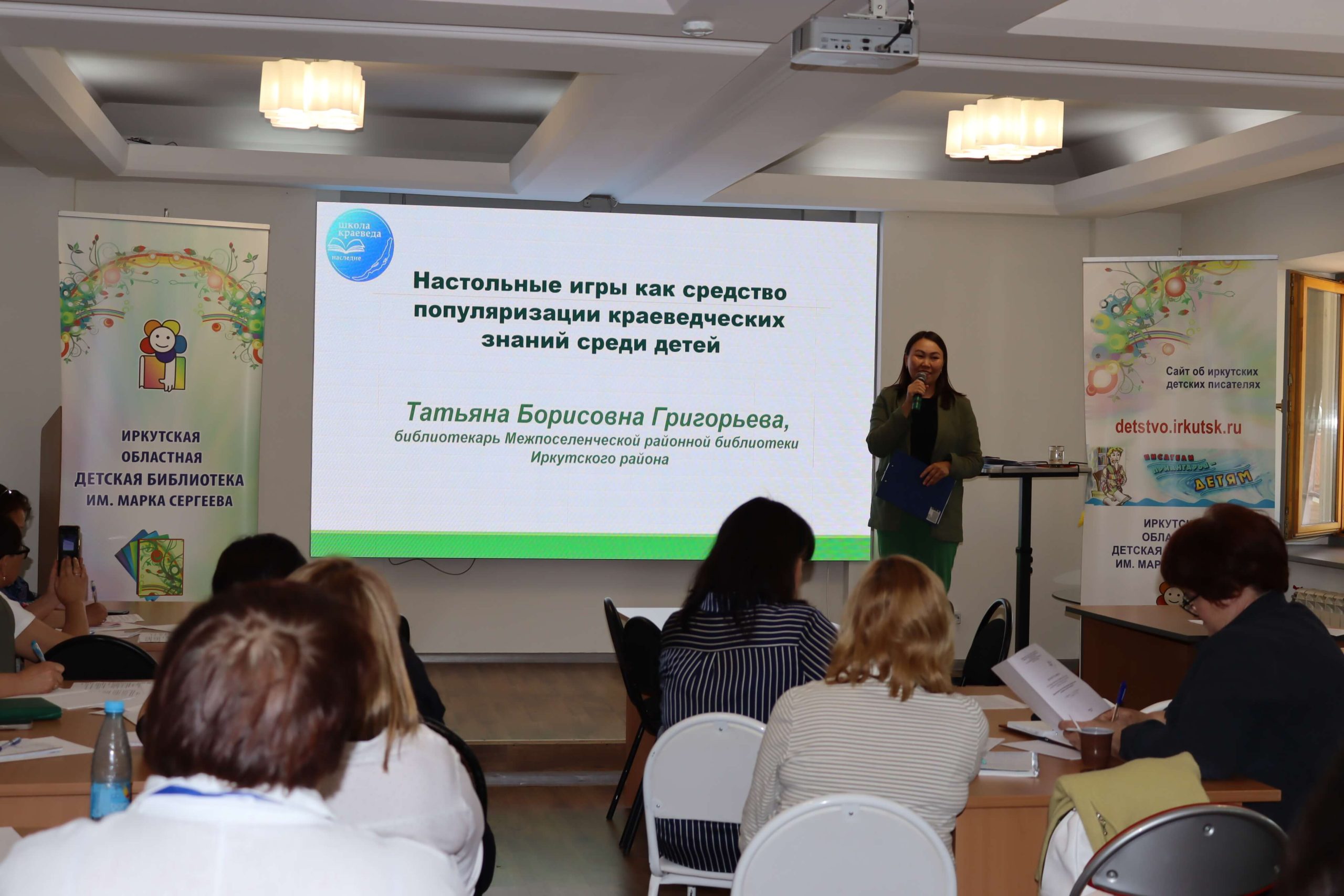 Мастер-класс «Как интересно рассказать о своём крае» провела главный редактор иркутского издательства «Алфавит» Елена Чечельницкая, автор детской энциклопедии «Иркутская область от А до Я», в которой собрана краеведческая информация. Во время мастер-класса библиотекари придумывали комиксы, сценарии для видеороликов, тексты и проч.