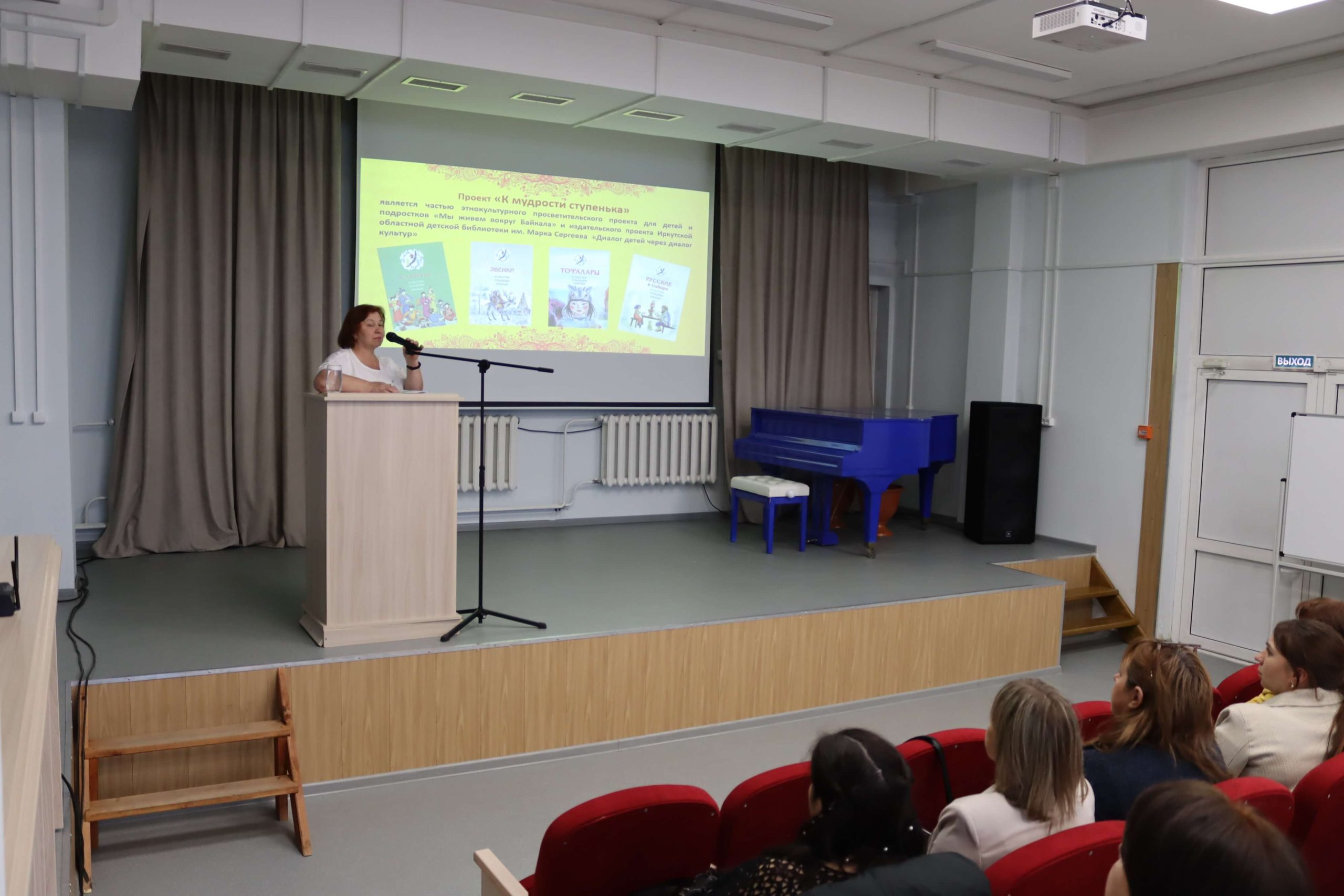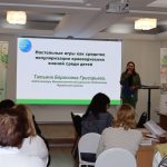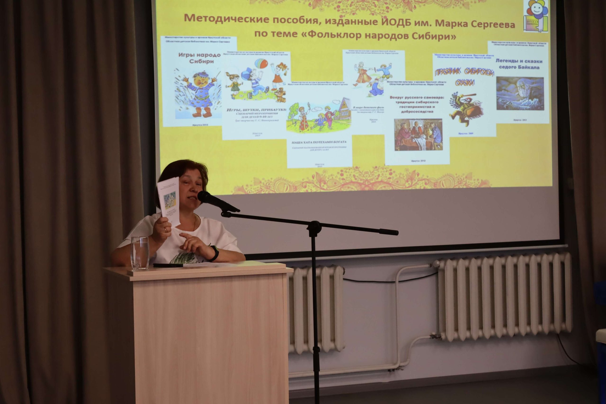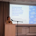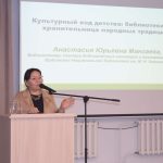 Завотделом краеведения ГБУК ИОДБ им. Марка Сергеева Елена Шульгина поделилась с коллегами опытом реализации литературно-фольклорной программы «К мудрости ступенька», целью которой является приобщение детей 6–10 лет к истокам культуры народов Сибири. Приобщение детей к народным сказкам, знакомящими с культурой, традициями как коренных народов Сибири – бурят, эвенков, тофов, так и с русскими сказками происходит в формате проведения литературно-театрализованных представлений с участием библиотечного кукольного театра «Нерпунок», игровой и творческой деятельностью с детьми.