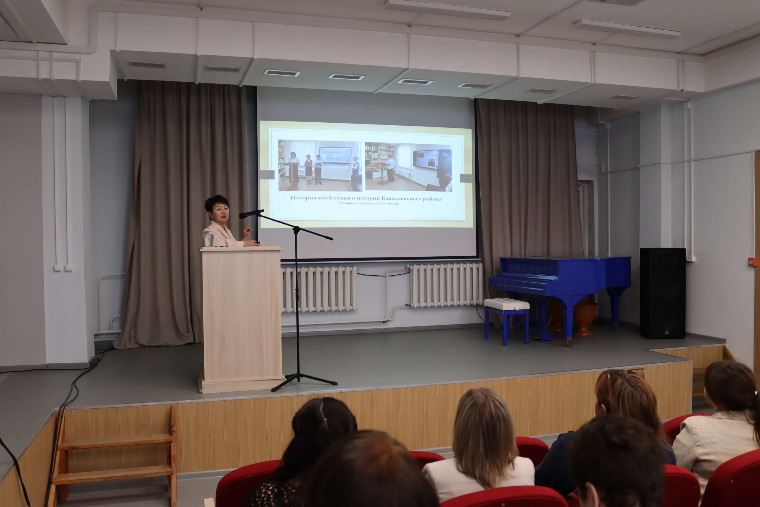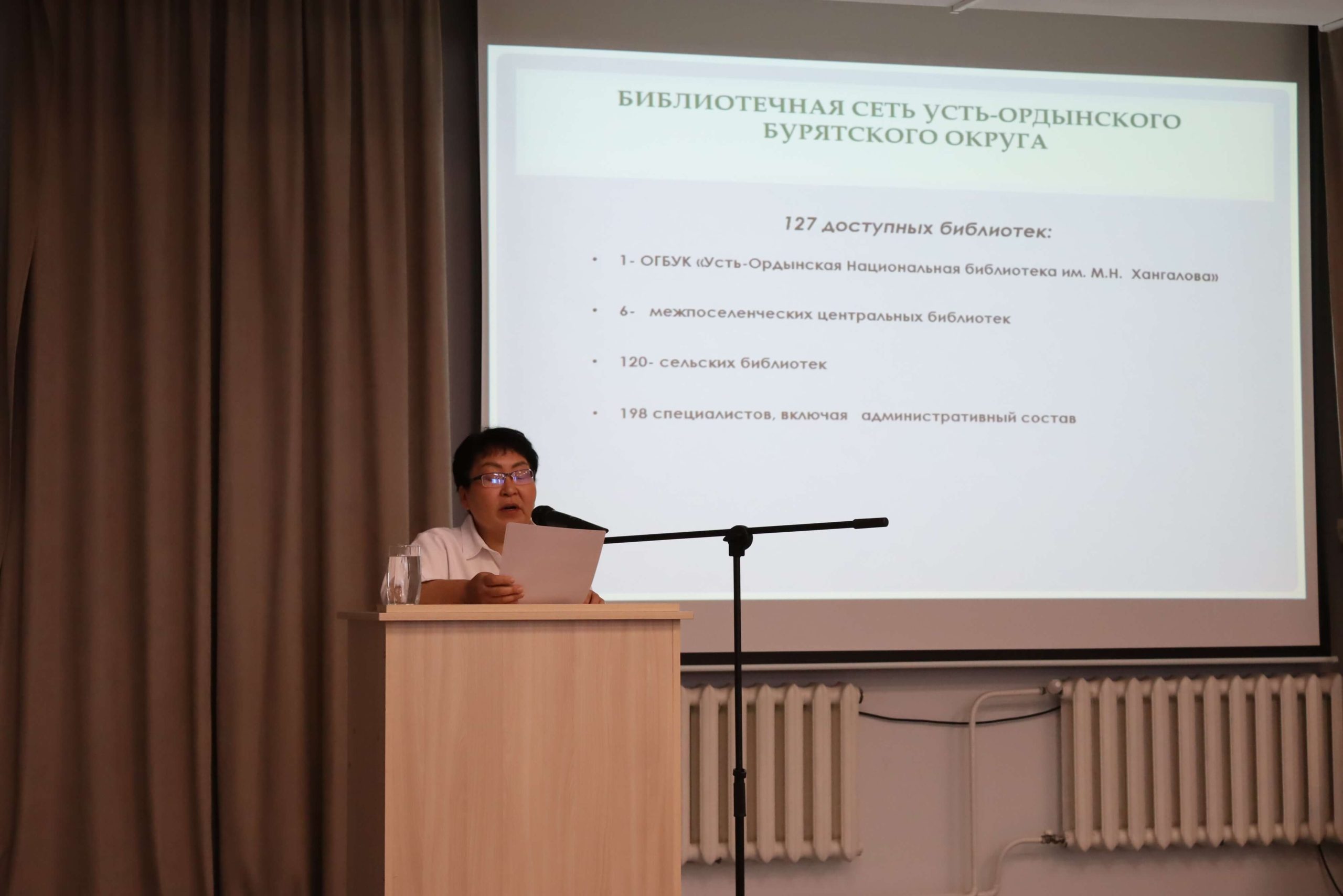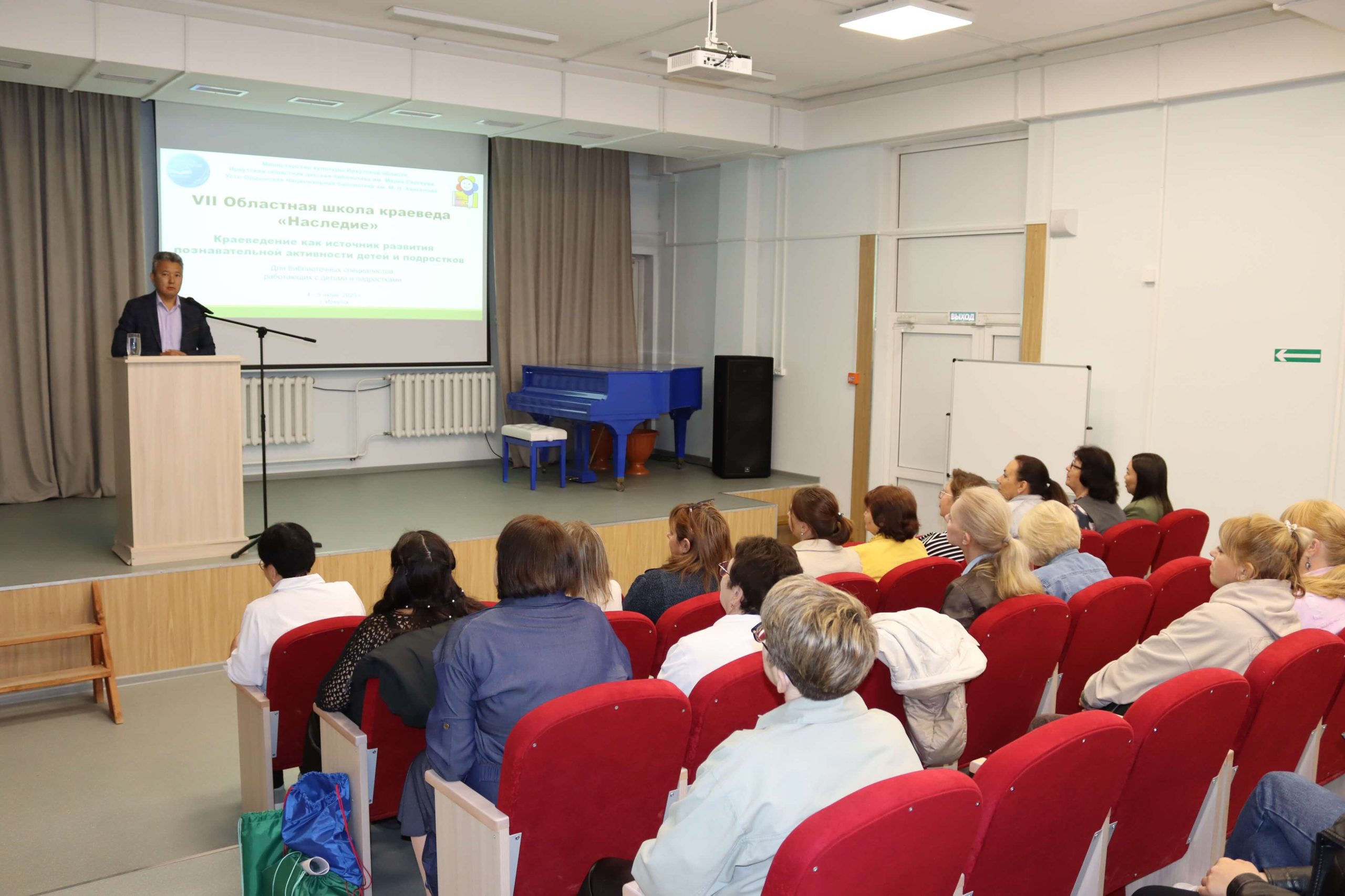 5 июня, второй день проведения школы краеведа прошел в формате выездной тематической площадки на базе Усть-Ордынской Национальной библиотеки им. М. Н. Хангалова, являющейся методическим и координационным центром по библиотечному обслуживанию населения для 126 общедоступных библиотек шести районов Усть-Ордынского Бурятского округа, в которых трудятся около 200 специалистов. Участников школы поприветствовали артисты Государственного ансамбля песни и танца «Степные напевы» и заместитель руководителя администрации Усть-Ордынского Бурятского округа Андрей Дмитриев.