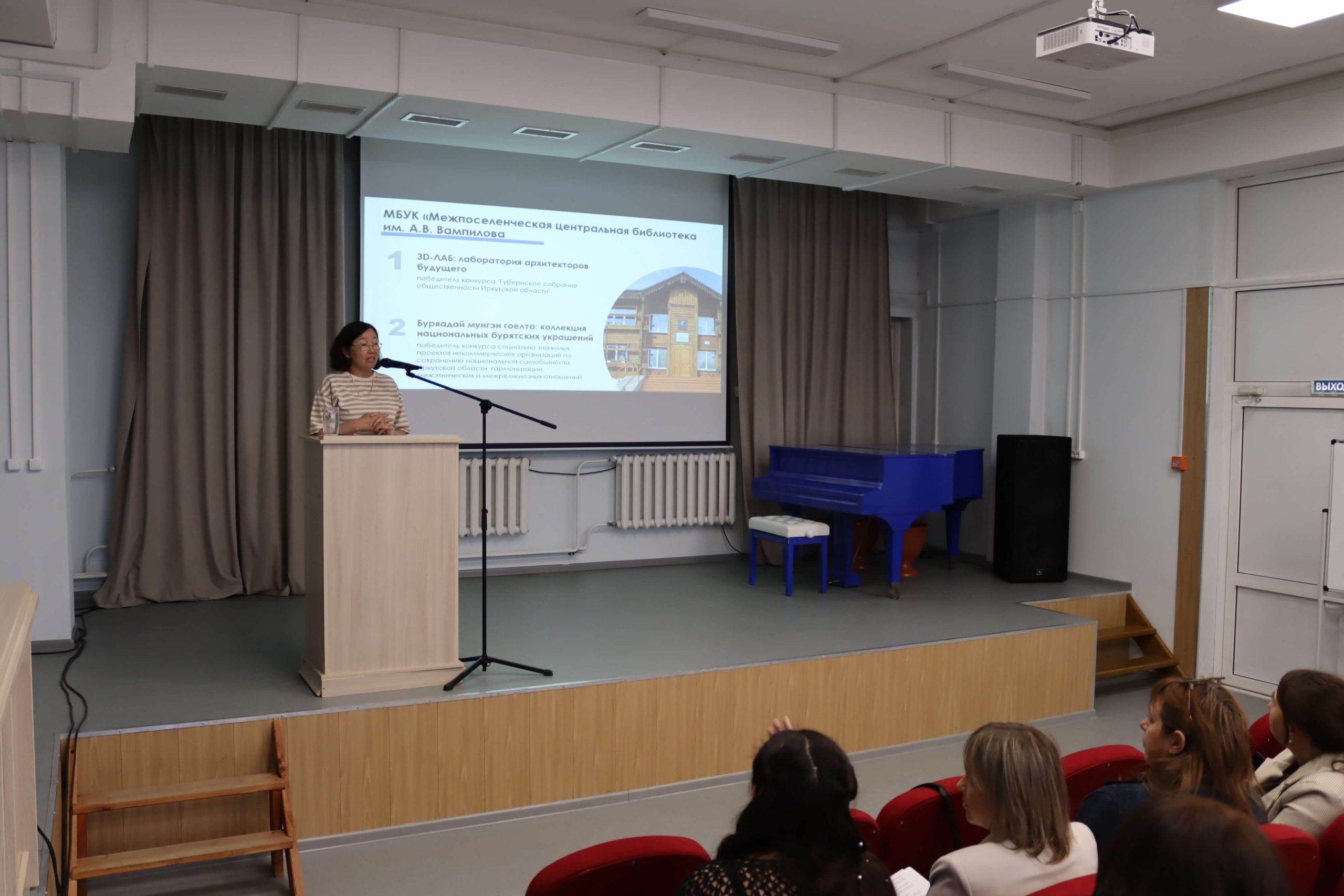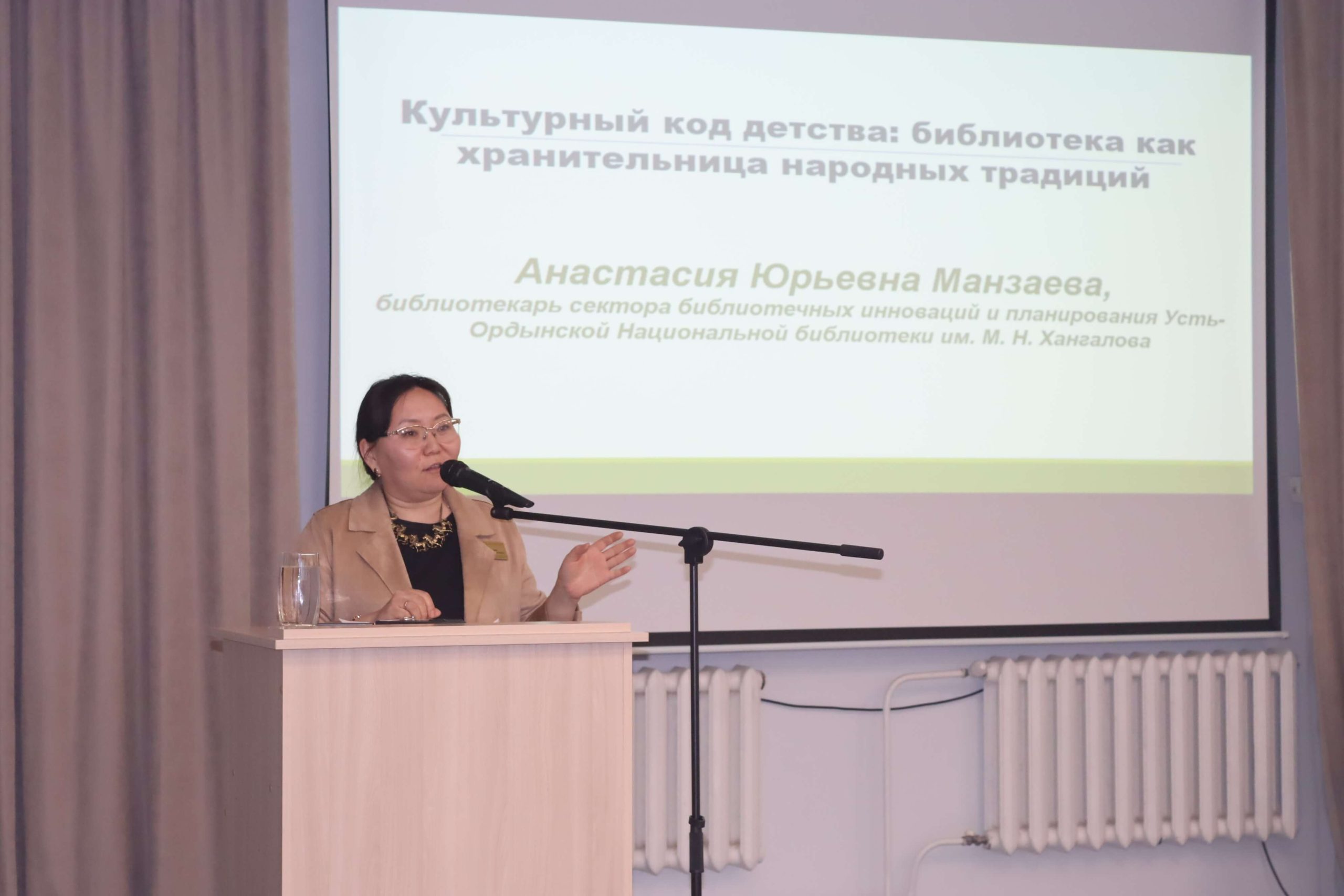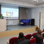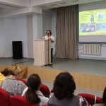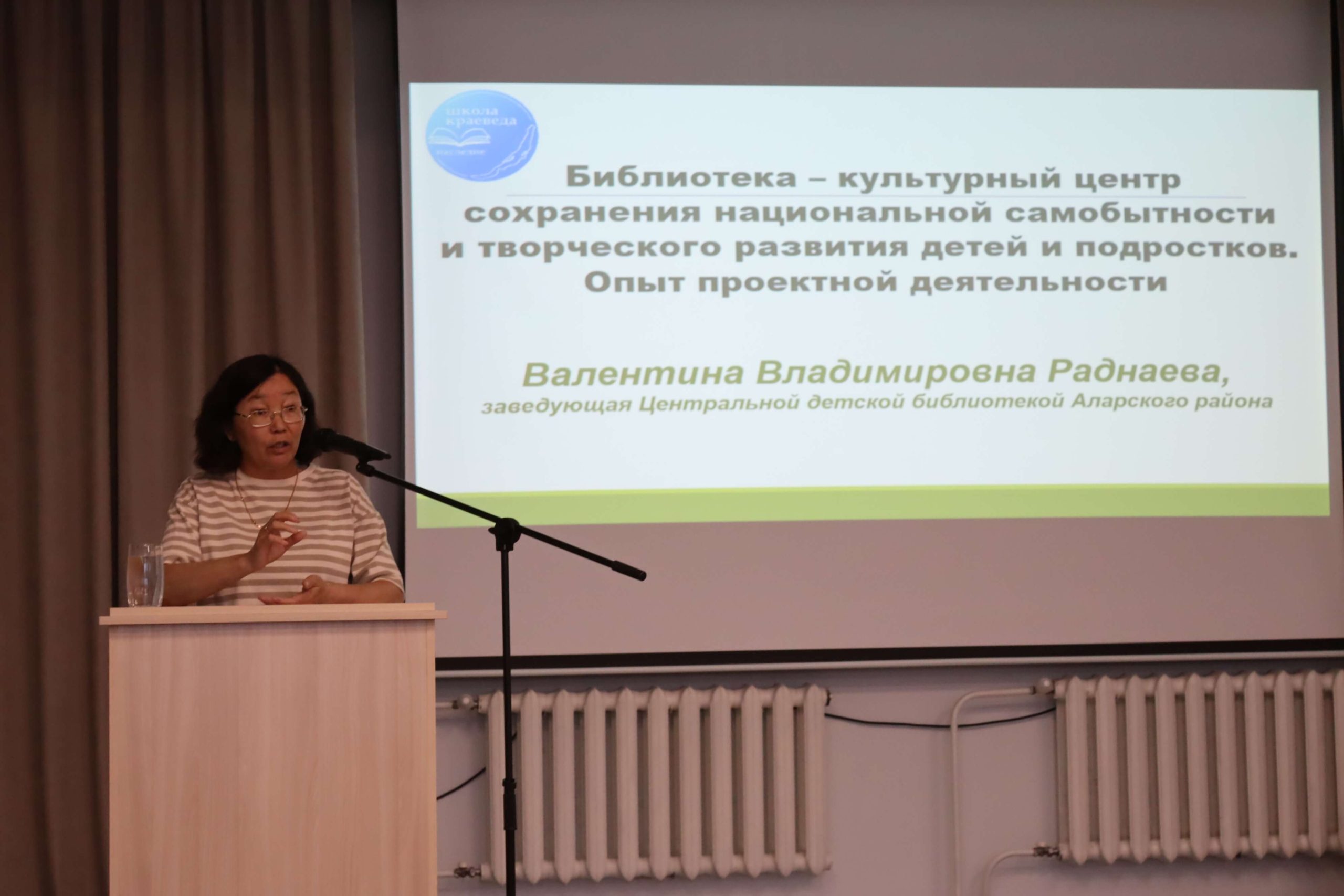 Далее специалисты Национальной библиотеки представили участникам школы опыт своей разнообразной краеведческой работы. Библиотекарь сектора библиотечных инноваций и планирования Усть-Ордынской Национальной библиотеки им. М. Н. Хангалова, по совместительству председатель ИРОО ЦСИКН «Булаг» Анастасия Манзаева рассказала о реализации нескольких краеведческих проектов библиотеки.