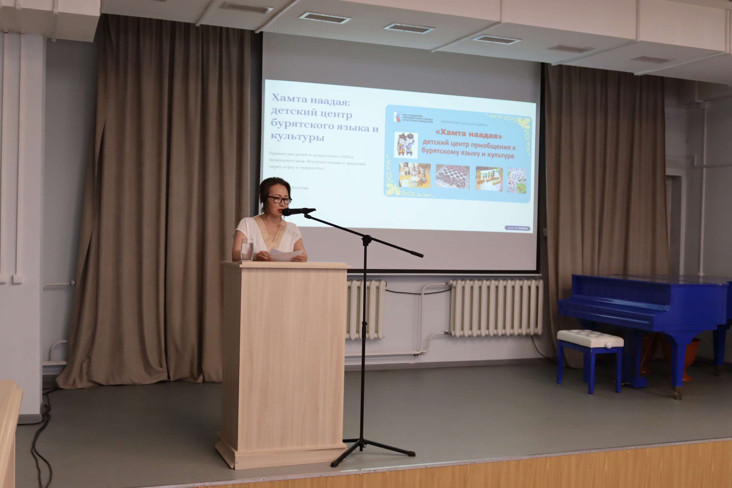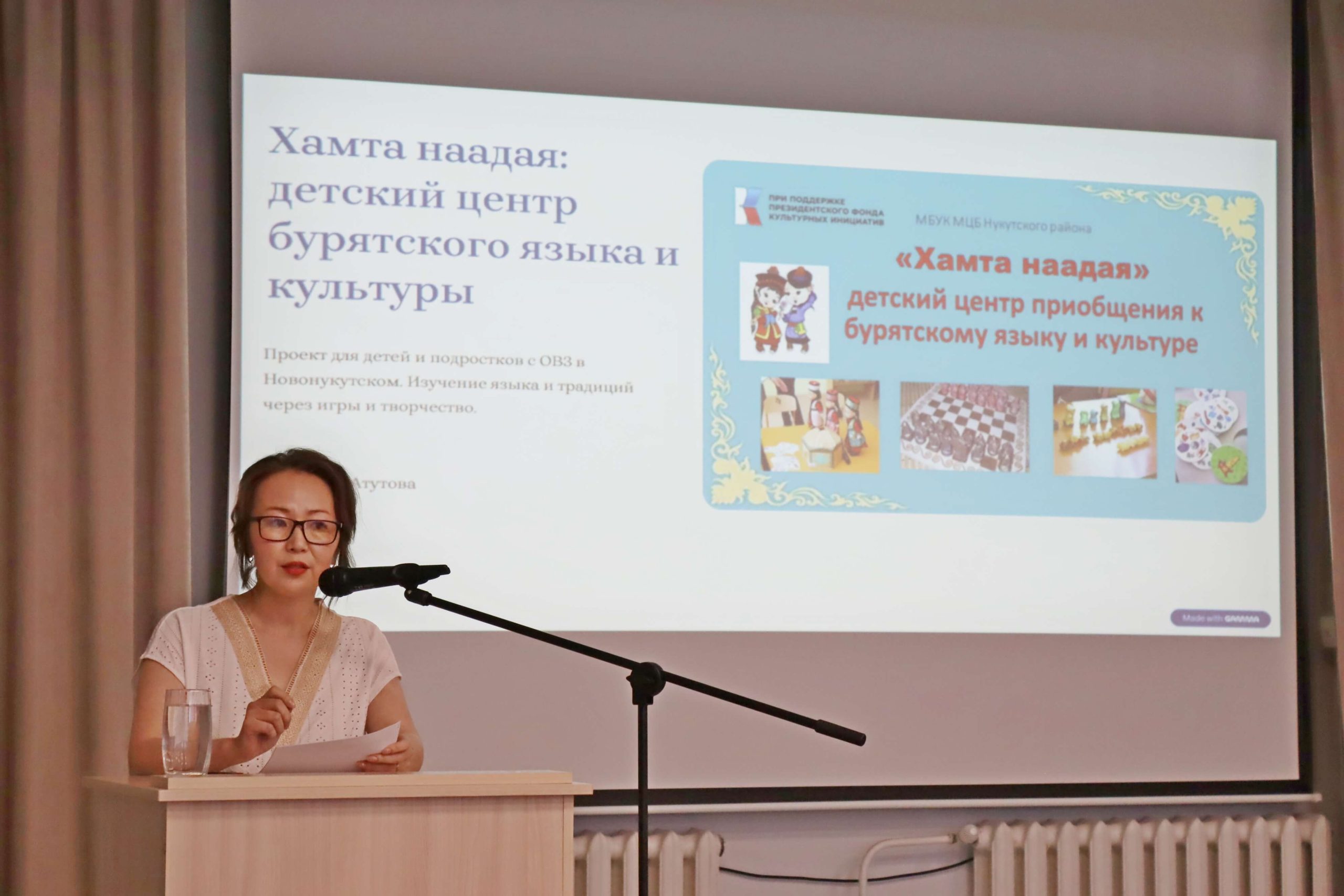 О создании Центра бурятского языка и культуры «Хамта наадая. Играем вместе» рассказала завотделом по работе с детьми Межпоселенческой центральной библиотеки Нукутского района Тамара Атутова. Предполагается, что это будет открытое образовательное и игровое пространство, посещать которое приглашаются дети младшего школьного возраста и подростки. Ресурсы центра – книги на бурятском языке, мультфильмы, развивающие занятия и национальные игры – дадут возможность детям изучать язык в процессе чтения, просмотра фильмов и мультфильмов, игр, рисования. постановки кукольных спектаклей.