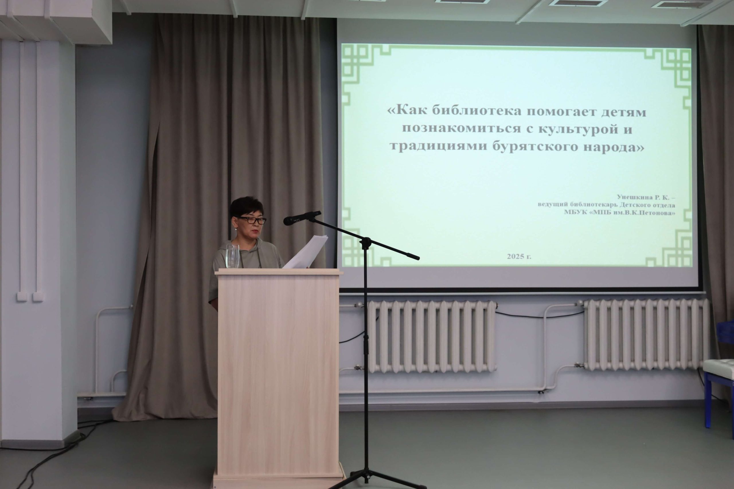 О том, как библиотека помогает детям познакомиться с культурой, традициями и обычаями бурят рассказала ведущий библиотекарь детского отдела Межпоселенческой библиотеки им. В. К. Петонова Осинского района Раиса Унешкина. При библиотеке уже несколько лет действует творческое объединение «Амар сайн! («Здравствуйте»), где происходит знакомство детей с бурятским языком, культурой бурятского народа. Занятия по бурятскому языку проходят два раза в неделю, ведёт которые методист по работе с детьми библиотеки, учитель бурятского языка по профессии. В библиотеке также работает кружок настольной бурятской игры в кости «Шагай наадан».