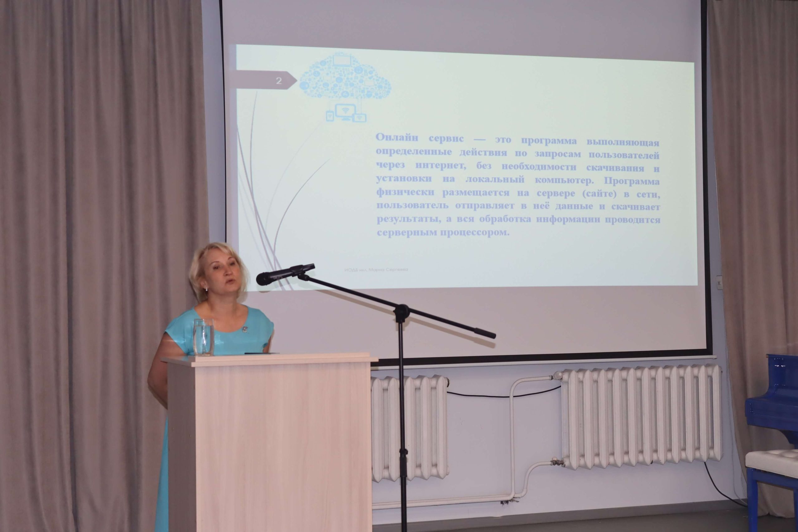 Завотделом обслуживания читателей 10–15 лет ГБУК ИОДБ им. Марка Сергеева Валентина Богомолова представила презентацию о практических инструментах на основе цифровых онлайн-сервисов, необходимых для успешного внедрения краеведческого материала в работу библиотеки. Основная цель презентации – продемонстрировать то, как современные технологии могут помочь библиотекарям в более эффективном продвижении краеведческого материала для детей.