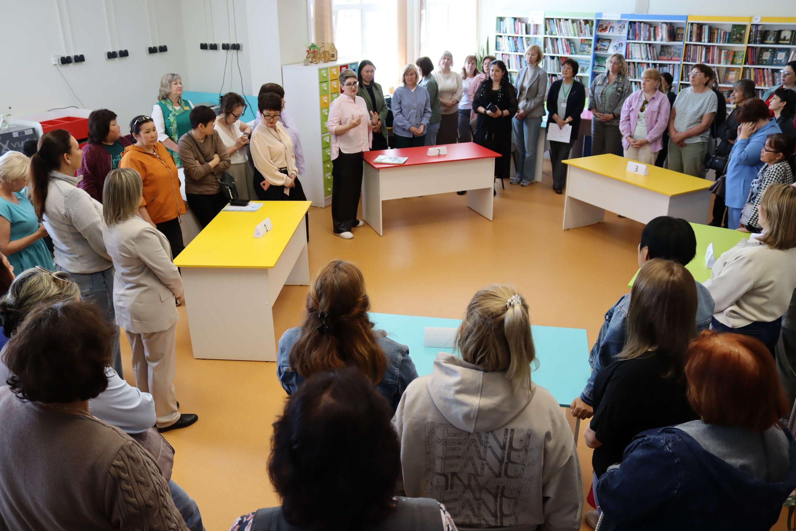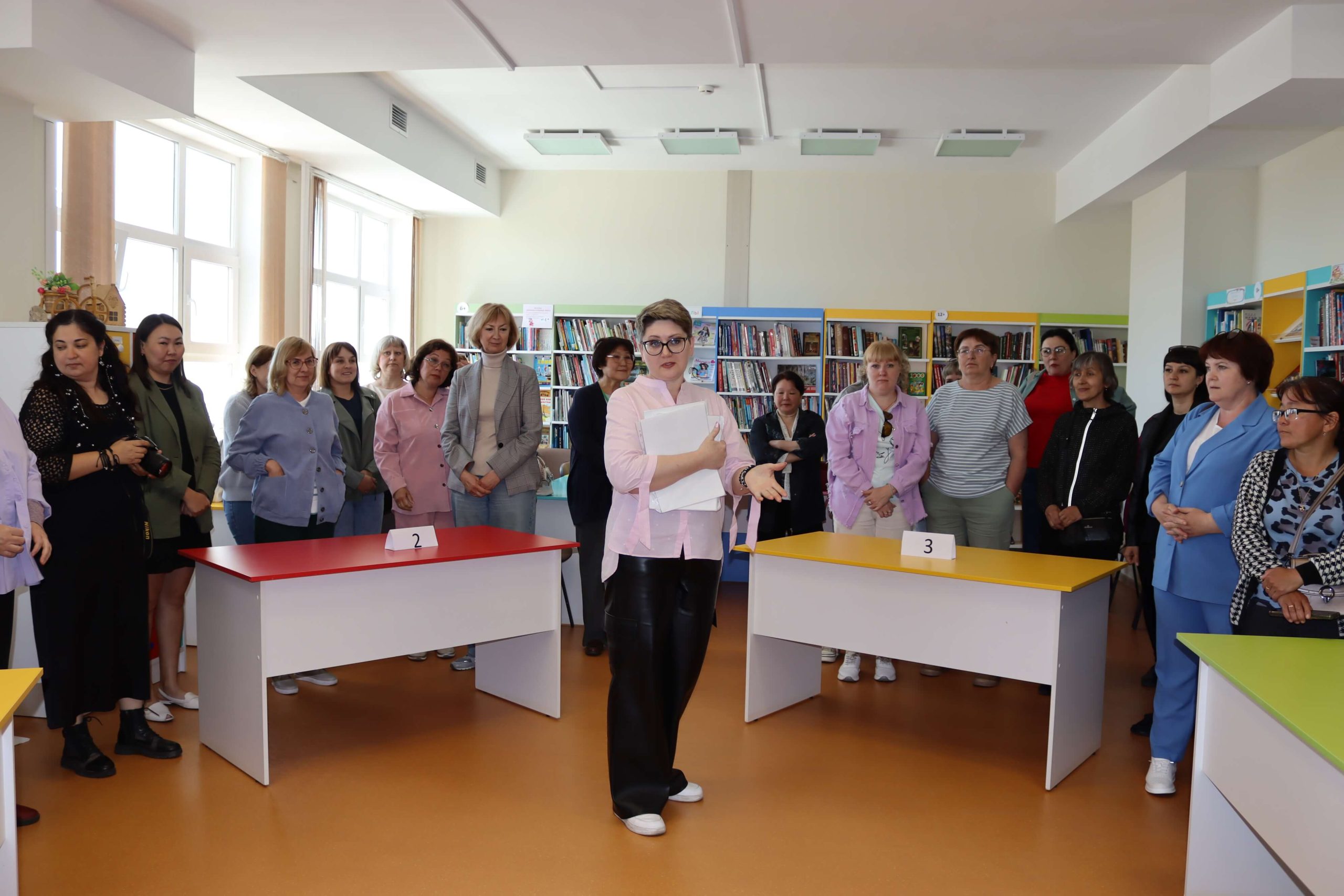 Директор Усть-Ордынской Национальной библиотеки им. М. Н. Хангалова Наталья Спиридонова провела для участников школы экскурсию по новому зданию библиотеки, которая открылась в 2021 году. До этого библиотека более около 80 лет находилась в старом деревянном приспособленном помещении. В настоящее время в фондах учреждения – свыше 87 тысяч экземпляров документов, имеются редкие и ценные книги. Ежегодно библиотеку посещают более 6 тысяч человек всех возрастных категорий, начиная с дошкольников. С 2022 года библиотека является куратором по созданию модельных библиотек округа – участников нацпроекта «Культура».