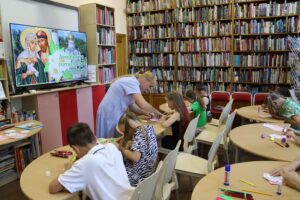 На мероприятии в Иркутской областной детской библиотеке им. Марка Сергеева библиотекарь рассказала детям об истории и традициях праздника и познакомила с книгой «Повесть о Петре и Февронии» Иеромонаха Еразма из серии «Детская классика».