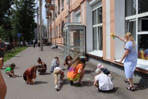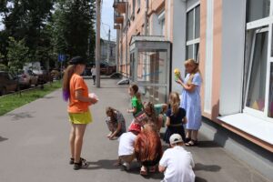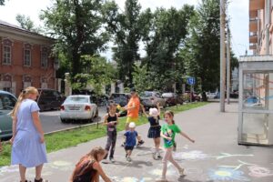 В ходе мастер-класса всем участникам было предложено сделать из цветной бумаги объёмную аппликацию в форме ромашки. Дети с интересом и старательно делали каждый свою яркую поделку. После мастер-класса ребята смогли нарисовать ромашки мелом на асфальте и половить мыльные пузыри. Созданные своими руками ромашки ребята забрали с собой.