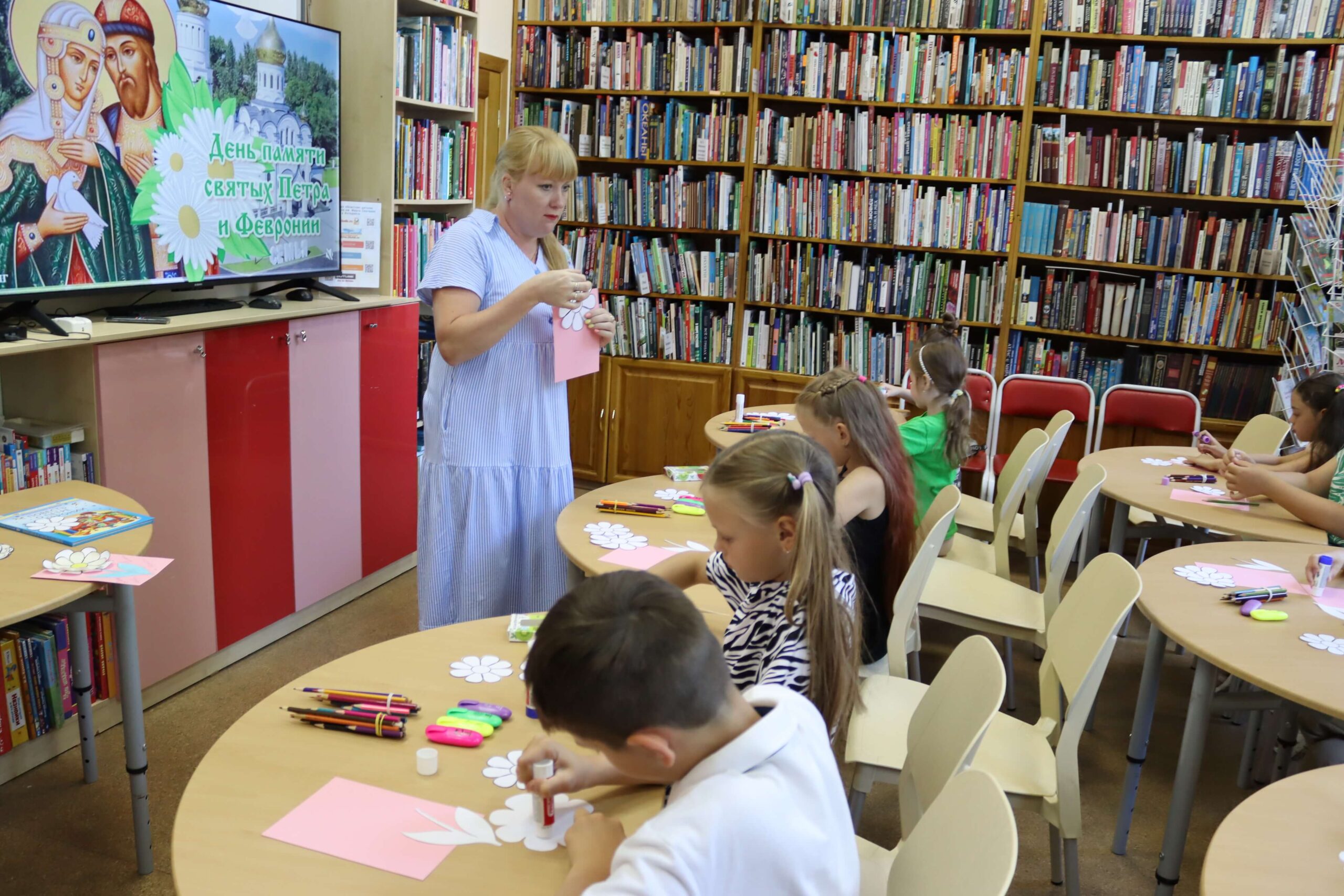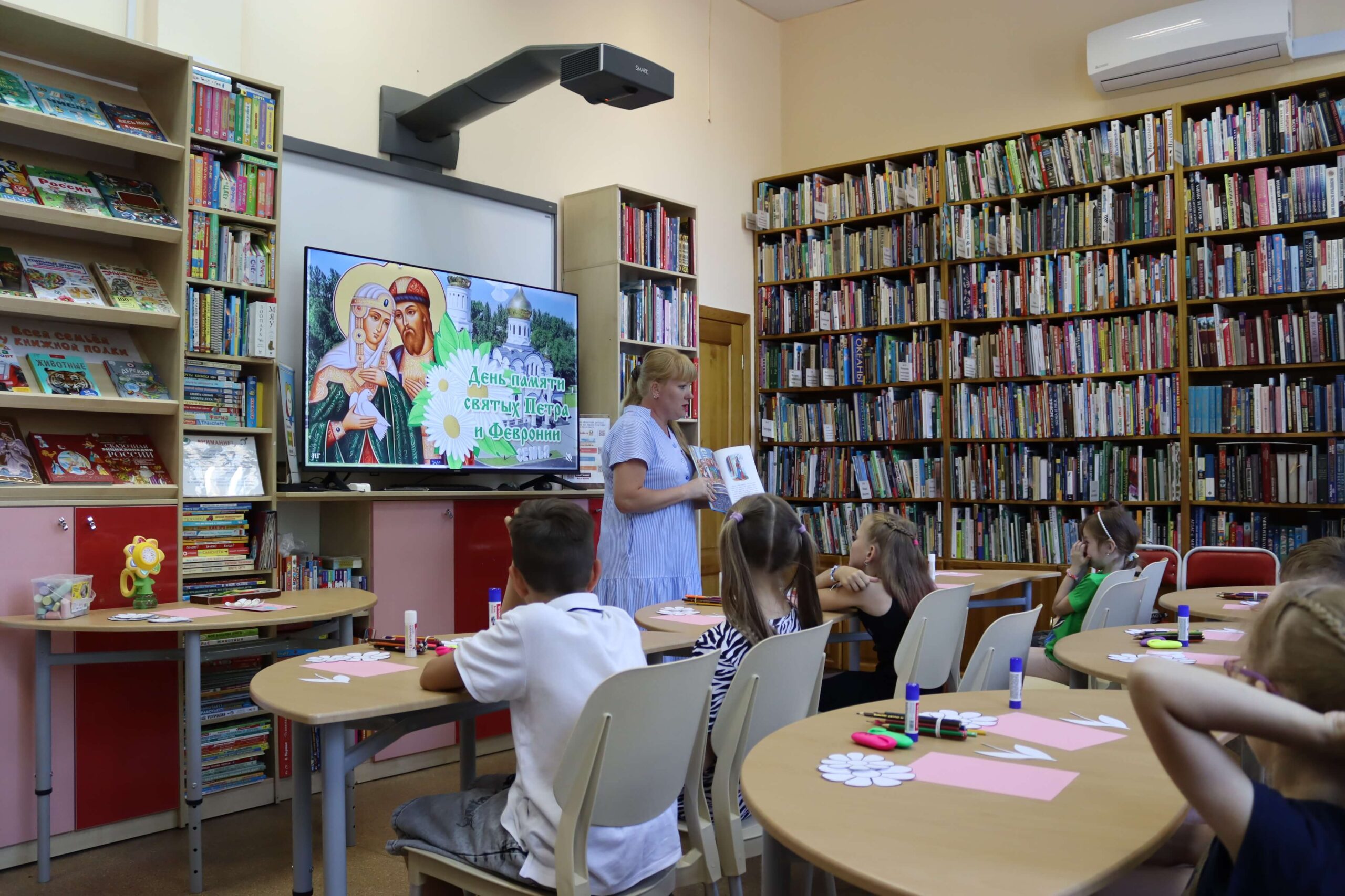 На мероприятии в Иркутской областной детской библиотеке им. Марка Сергеева библиотекарь рассказала детям об истории и традициях праздника и познакомила с книгой «Повесть о Петре и Февронии» Иеромонаха Еразма из серии «Детская классика».