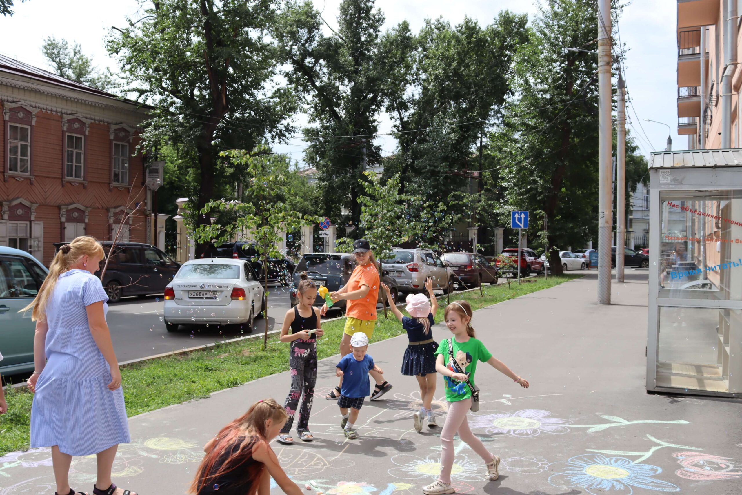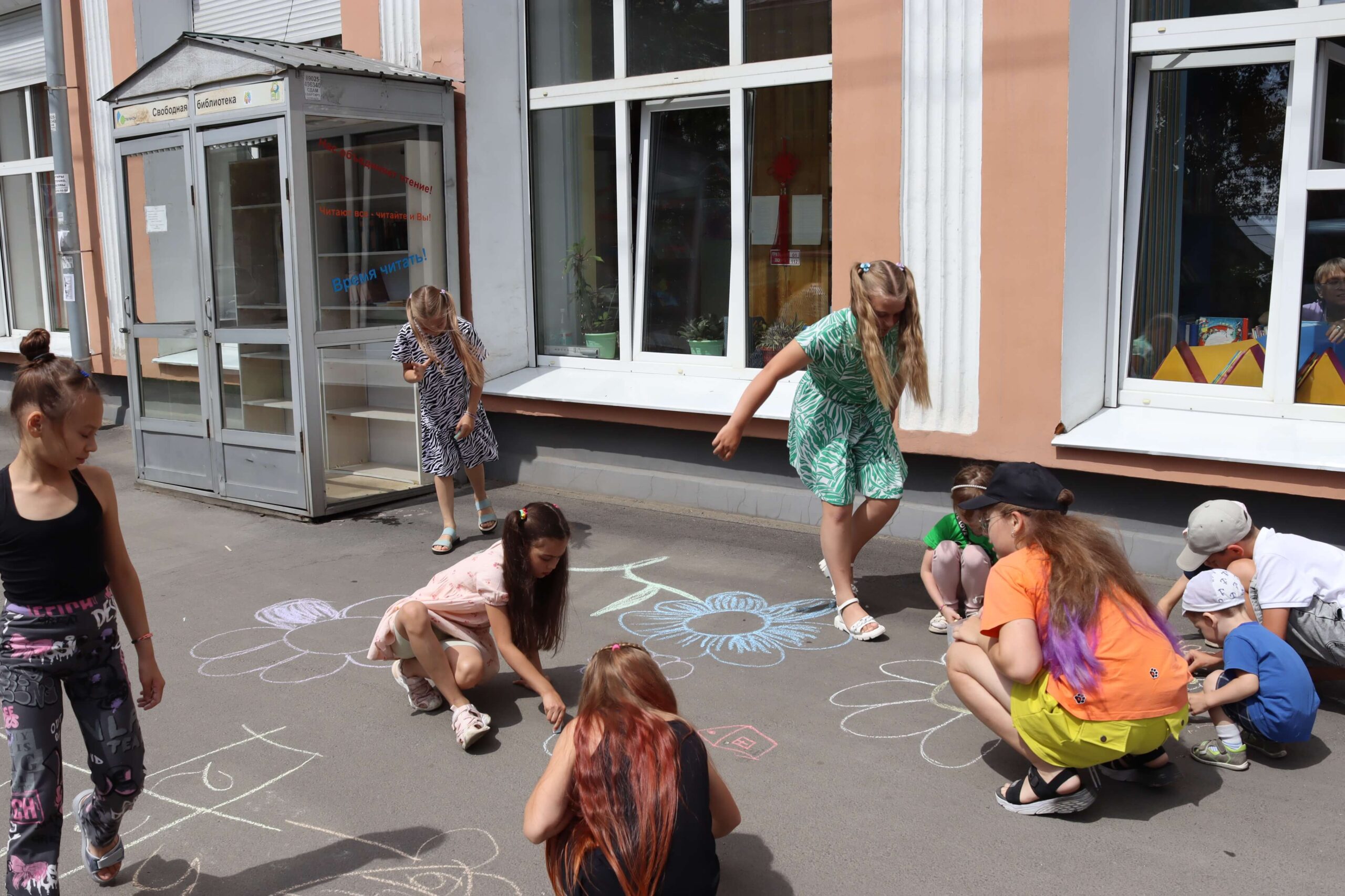 В ходе мастер-класса всем участникам было предложено сделать из цветной бумаги объёмную аппликацию в форме ромашки. Дети с интересом и старательно делали каждый свою яркую поделку. После мастер-класса ребята смогли нарисовать ромашки мелом на асфальте и половить мыльные пузыри. Созданные своими руками ромашки ребята забрали с собой.
