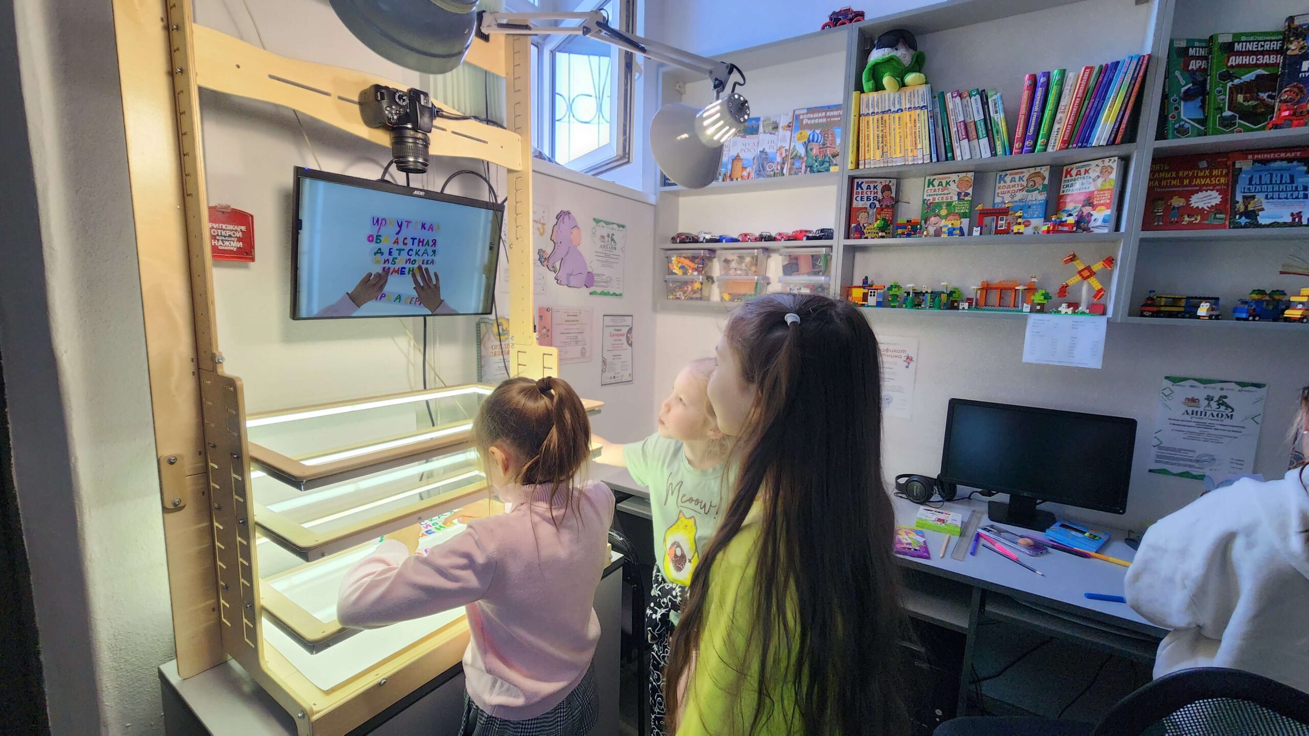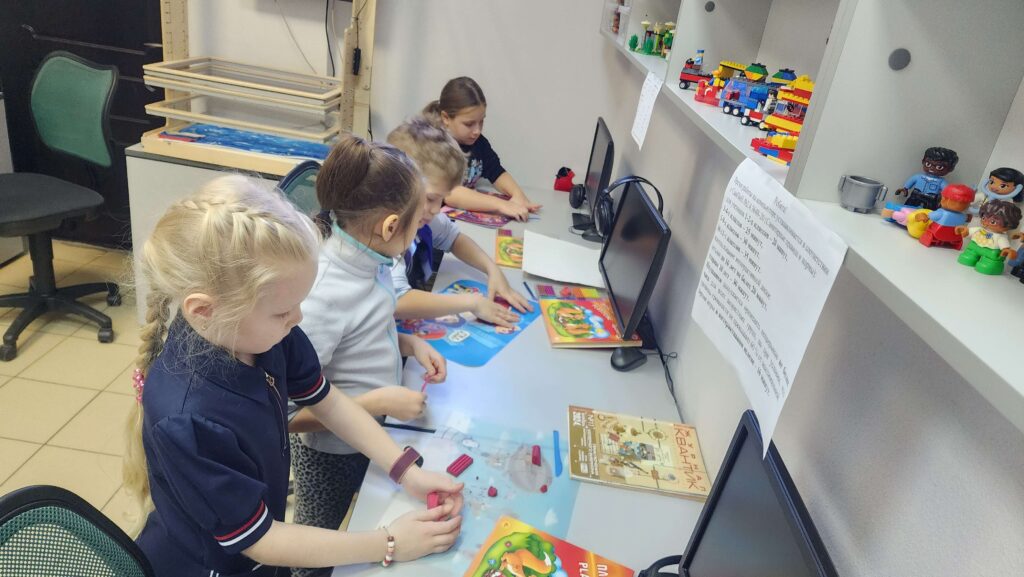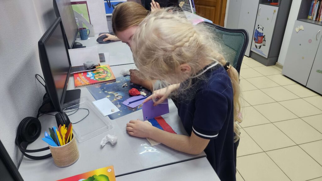 Над созданием мультфильма в студии анимации работали следующие читатели библиотеки: Мирослава Литвинова (8 лет), Анастасия Белькова (9 лет), Алёна Некрасова (8 лет), Мария Горбачёва (9 лет), Ярослав Ожогин (9 лет), Александр Хованский (10 лет).