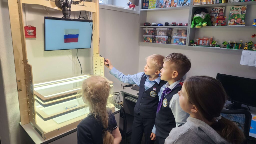 На занятиях в студии анимации «МультиПульти» читатели познакомились с творчеством Елены Анохиной, почитали её книги. Выбрав стихотворение «Российский флаг», ребята в течение нескольких занятий под руководством библиотекаря готовились к съёмкам мультфильма.