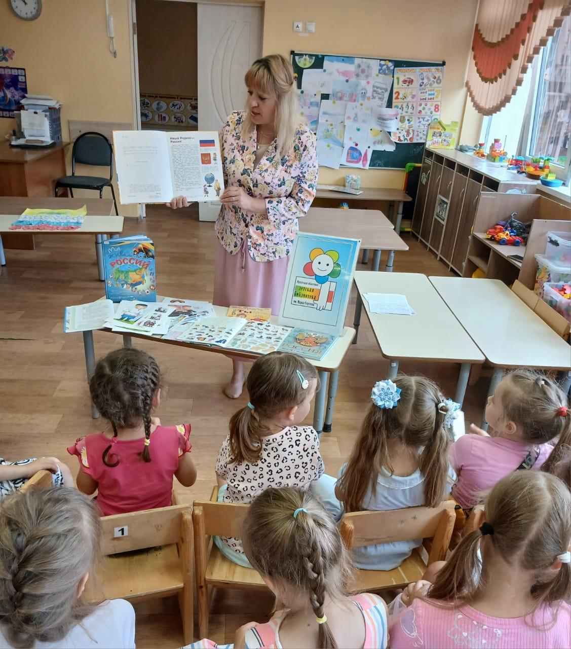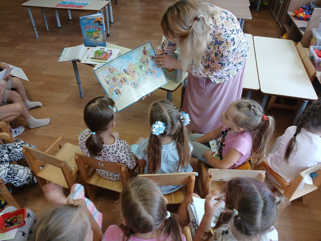 Ребята познакомились с книгами для детей по этой тематике, в том числе с литературно-художественным изданием Владимира Степанова «Мы живём в России» и энциклопедическим изданием «Народы России». Прозвучали стихи о Родине.