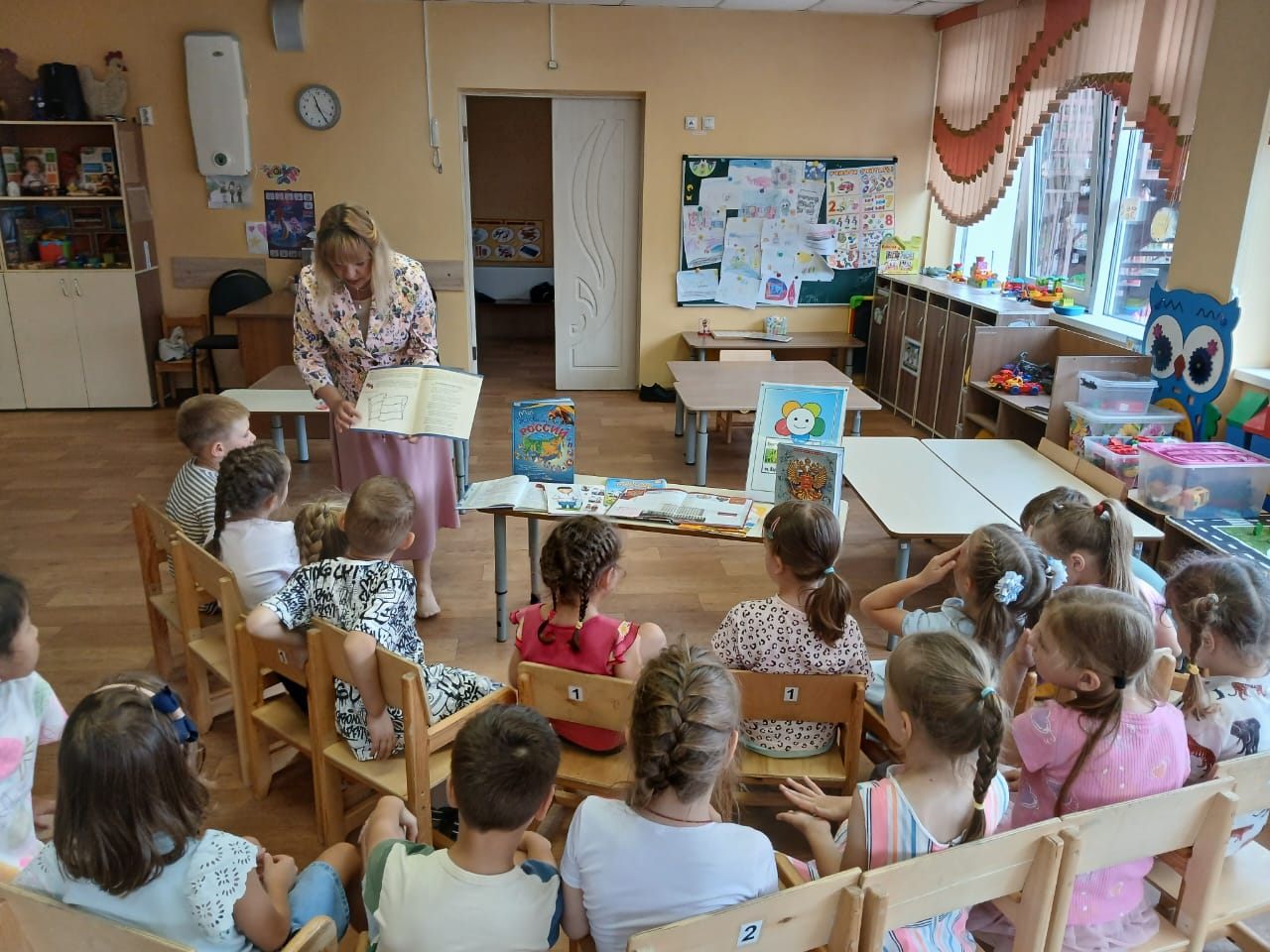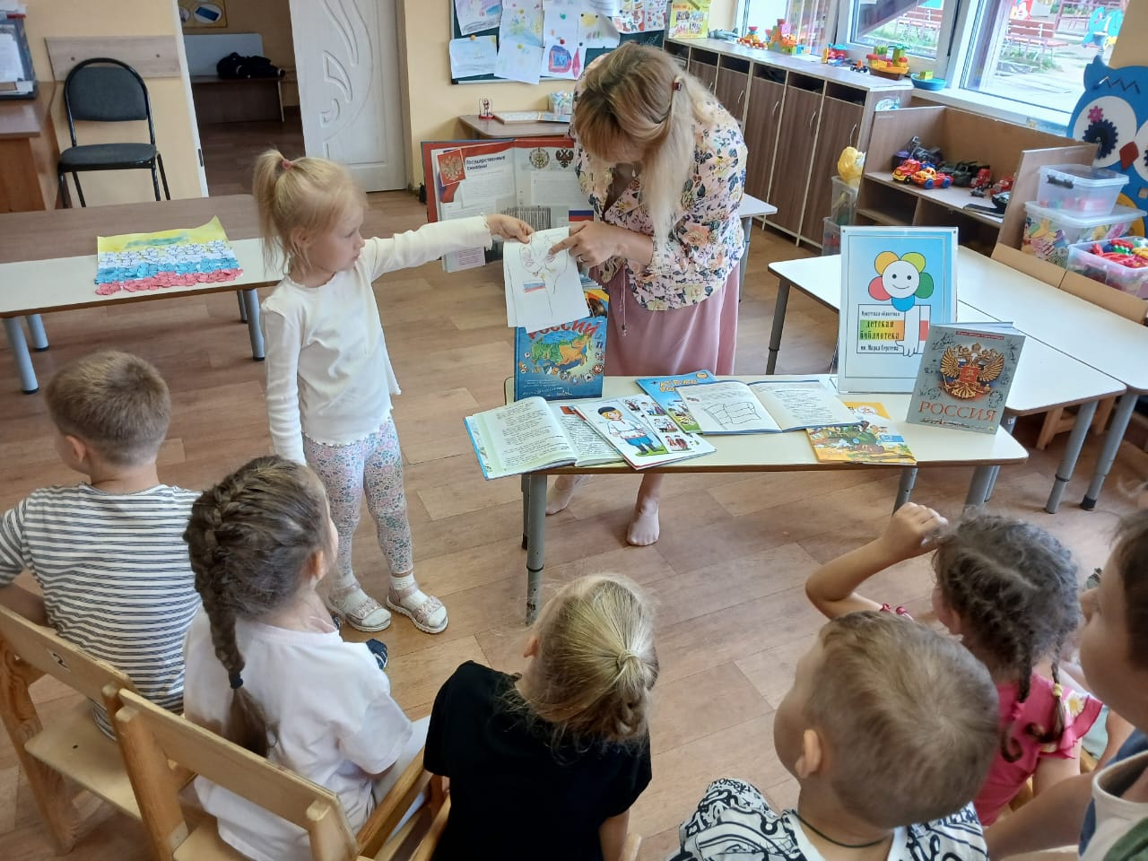 Библиотекарь интересно рассказала детям о том, чем славна Россия, о подвигах, достижениях и народах, населяющих нашу многонациональную страну.