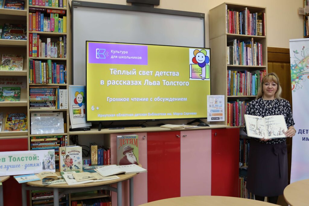 Для читателей младшего школьного возраста в Иркутской областной детской библиотеке им. Марка Сергеева 22 сентября состоялось интересное мероприятие – громкое чтение с обсуждением «Тёплый свет детства в рассказах Льва Толстого».