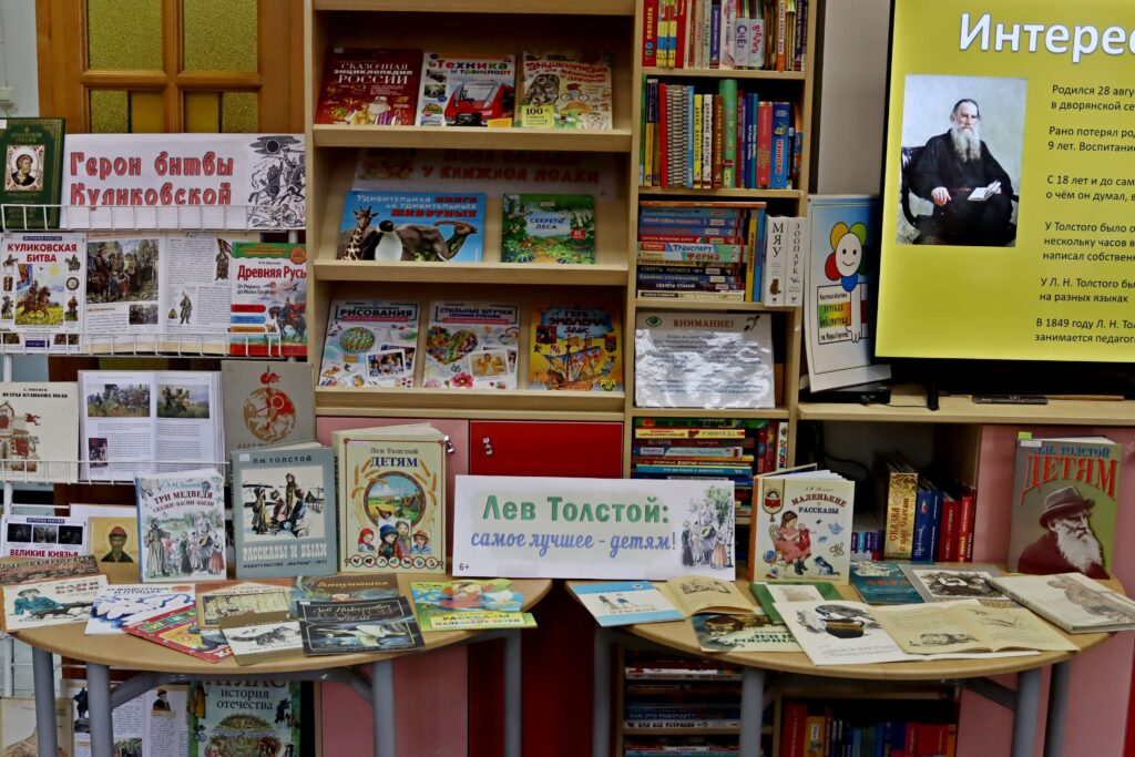 Делая обзор выставки «Лев Толстой: самое лучшее детям», библиотекарь рассказала школьникам и о других произведениях писателя. В конце встречи дети с интересом полистали все книги, представленные на выставке.