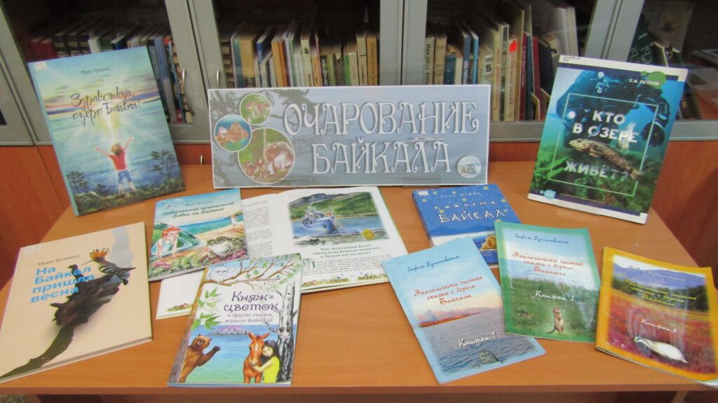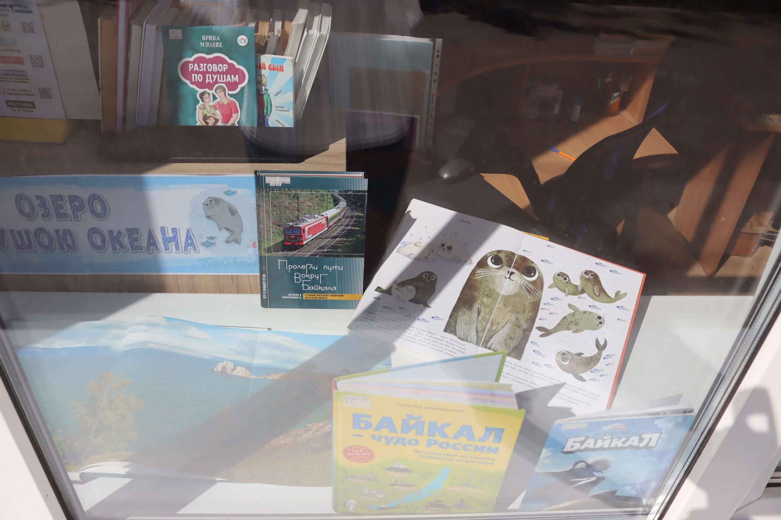 Книжно-иллюстративная выставка «Байкал – жемчужина Сибири» (6+) размещена в зеркальной выставочной витрине в коридоре библиотеки. Вниманию посетителей представлено около 40 хорошо иллюстрированных изданий. Это научно-популярная литература, фотоальбомы, энциклопедии, очерки, рассказы, сказки и стихи для детей.