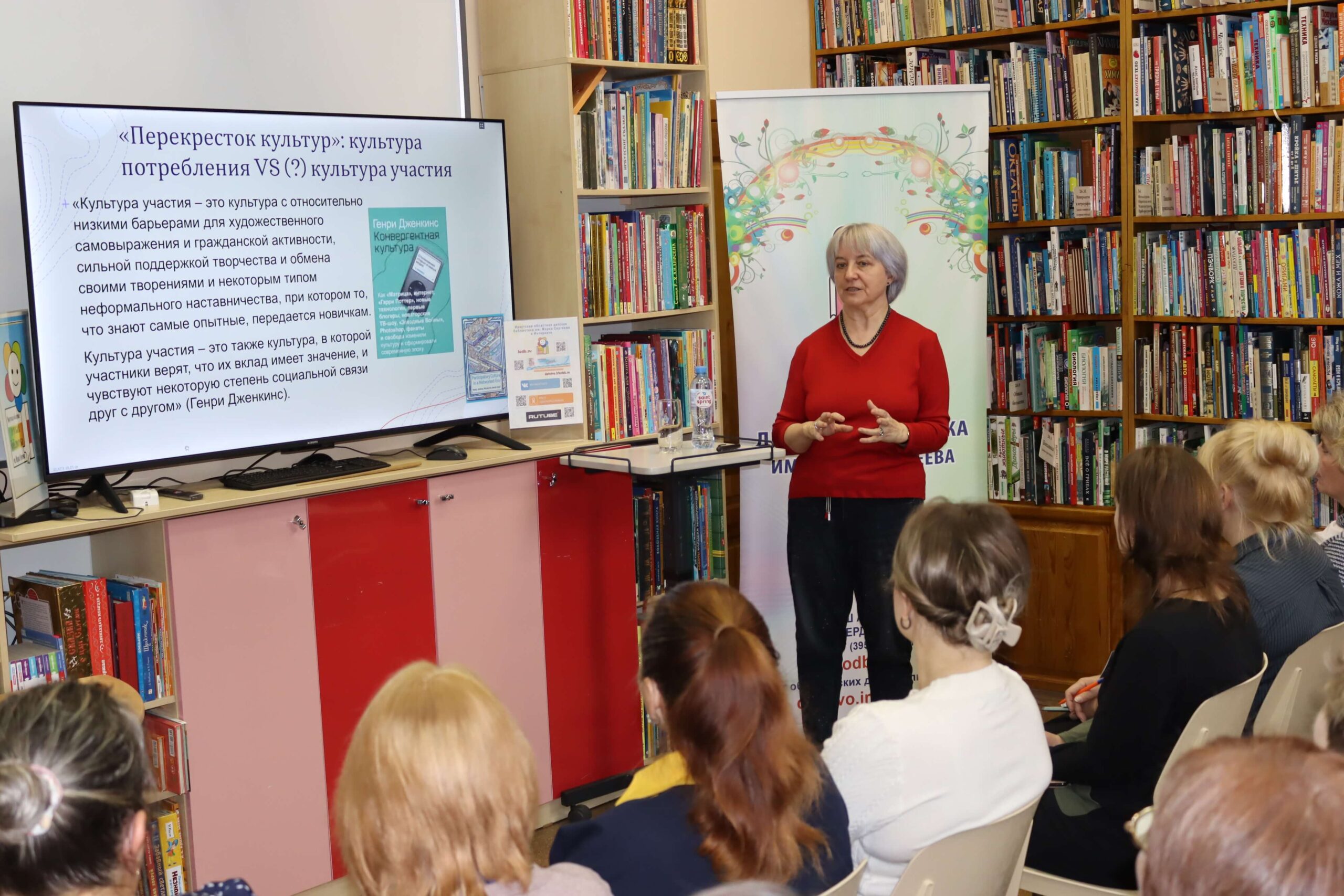 Семинар состоял из трёх блоков, насыщенных информацией. Первый – «Партиципаторность как основной принцип организации работы библиотеки и его реализация в библиотечной практике». Простыми словами термин «партиципаторность» – это культура соучастия, когда читатели не просто становятся потребителями, а творчески включаются в создание нового контента в библиотеке.
