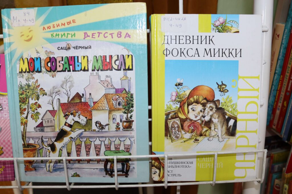 На выставке читатели найдут произведения Саши Чёрного разных годов издания от разных издательств. В числе книг – сказки «Кошачья санатория», «Кот на велосипеде», сборники стихов «Весёлый разговор», «Стихи для детей», «Детский остров», повести для семейного чтения «Дневник Фокса Микки». Некоторые из книг входят в школьную программу или рекомендованы для внеклассного чтения.
