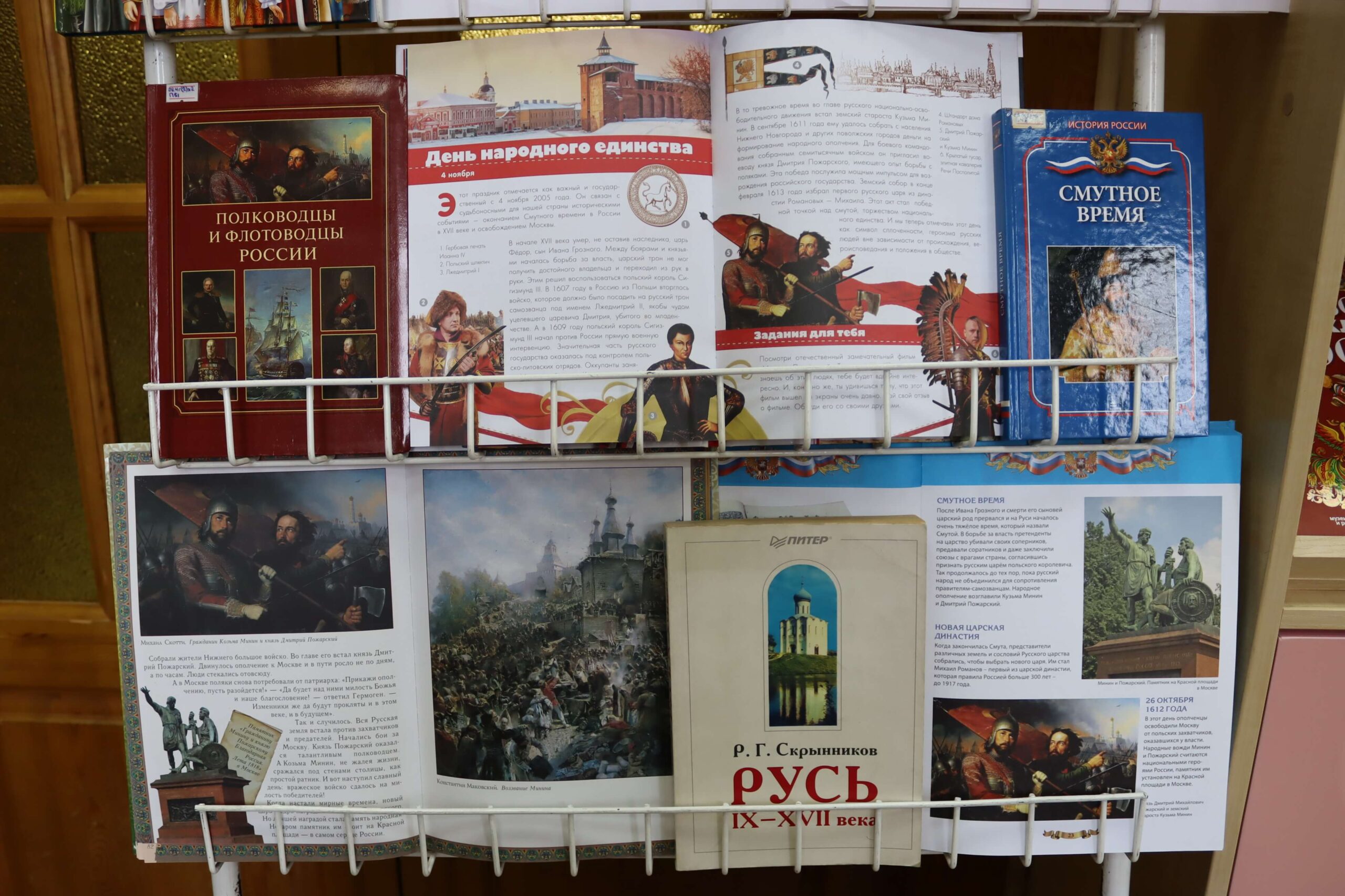 На экспозиции представлены издания из разных популярных книжных серий для детей. Из них посетители смогут подробнее узнать об исторических событиях 1612 года, в память о которых установлен государственный праздник.