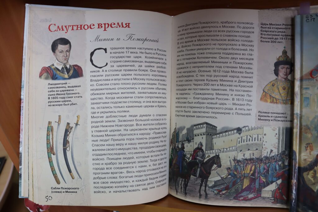 Для погружения в атмосферу той эпохи читатели смогут взять такие книги, как научно-популярные издания «Большая книга России» и «История России для детей», книгу Ларисы Борзовой «История России в картинках, рассказах, путешествиях». Издания дополнены детализированными картинками, которые помогут включить воображение, увидеть прошлое в образах и почувствовать эпоху.