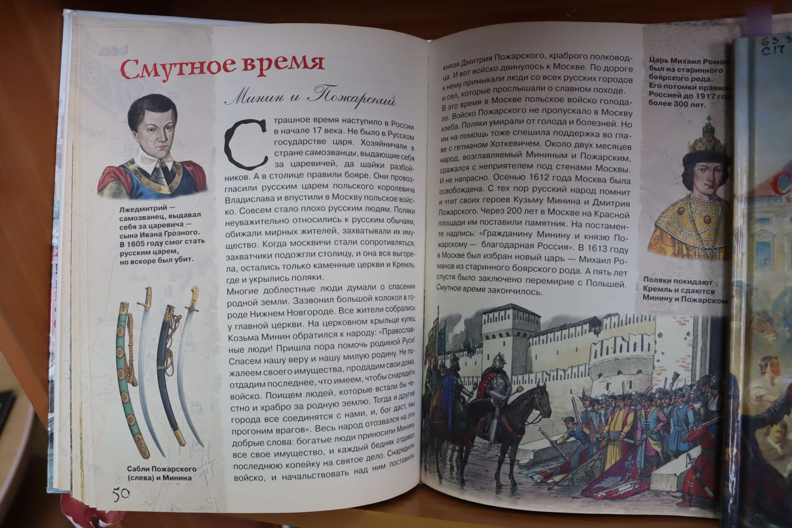 В книгах Юлии Школьник «История России. Панорама нужных знаний» и Владимира Соловьёва «Нам нужна Великая Россия» дети найдут информацию о событиях, которые произошли в России в XVII веке и получили название Смутное время.