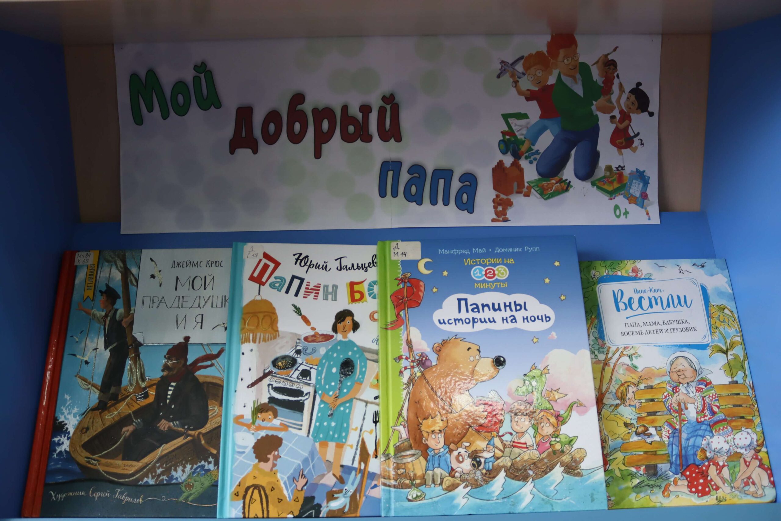 На книжной выставка «Папа может всё» (6+) среди книг посетители найдут трогательные истории «Когда я был маленьким» Станислава Олефира и «Где папа?» Юлии Кузнецовой, забавные повести «Невидимый папа» Дарьи Доцук и «Я воспитываю папу» Михаила Барановского, весёлые истории «Мой папа – мальчик» Елены Ожич и «Пиратский отпуск без мамы» Егора Фетисова и другие.