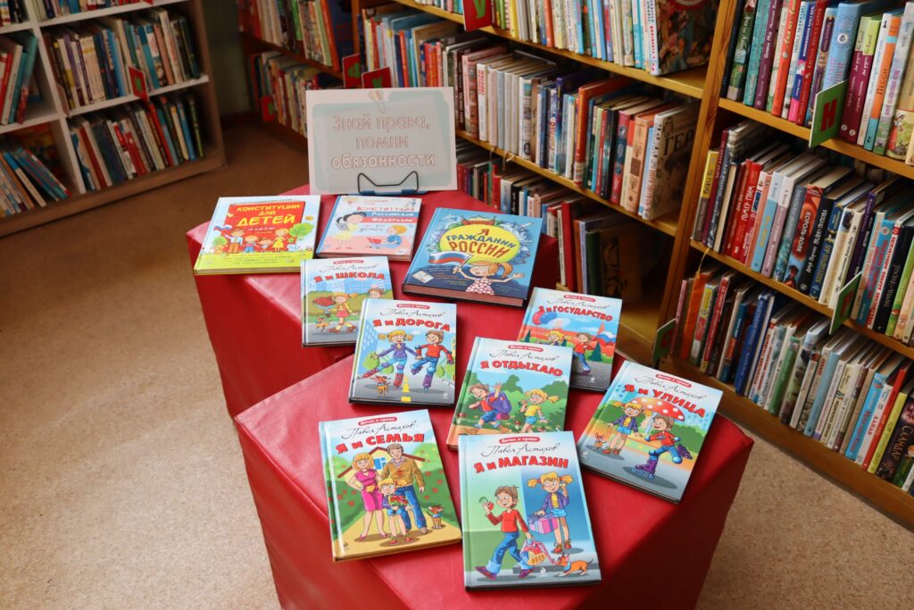 Для читателей развёрнута книжная выставка «Знай права, помни обязанности» (12+). Дети и родители найдут здесь серию книг под названием «Детям о праве». Эти книги специально для школьников написал известный российский адвокат и правовед Павел Астахов. В предисловии к книжной серии он пишет, что право существует для того, чтобы все мы жили в согласии, и оно всегда отстаивает наши справедливые интересы.