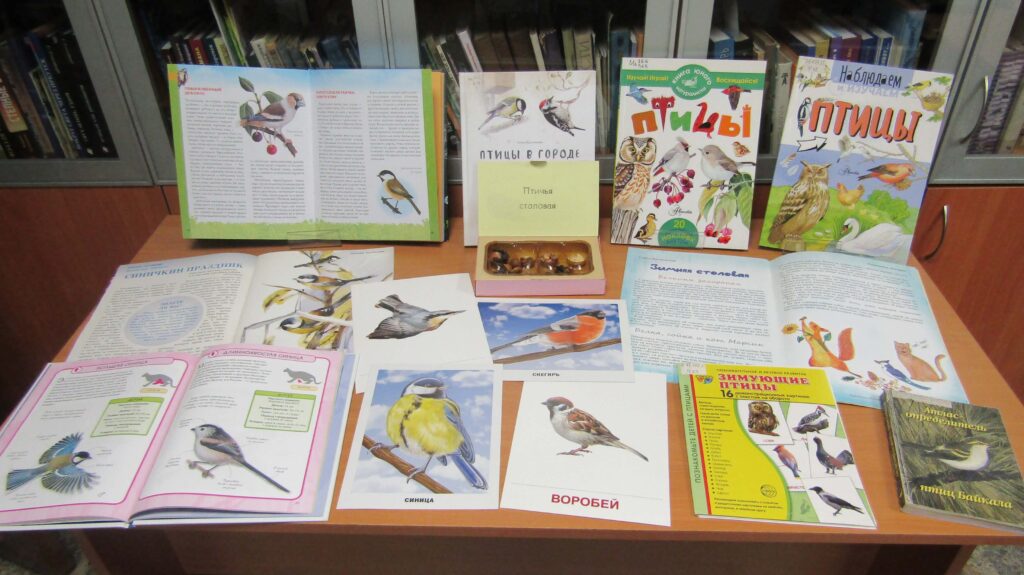 Среди книг читатели найдут энциклопедию «Птицы» издательства «Росмен», атлас родной природы «Птицы леса», научно-популярное издание «Птицы Байкала», а также два иллюстрированных определителя птиц – «Атлас-определитель птиц Байкала» Виктора Саловарова и «Определитель птиц Иркутской области» Валерия Малеева и Виктора Попова, из которых ребята узнают, какие птицы остаются зимовать в Приангарье.