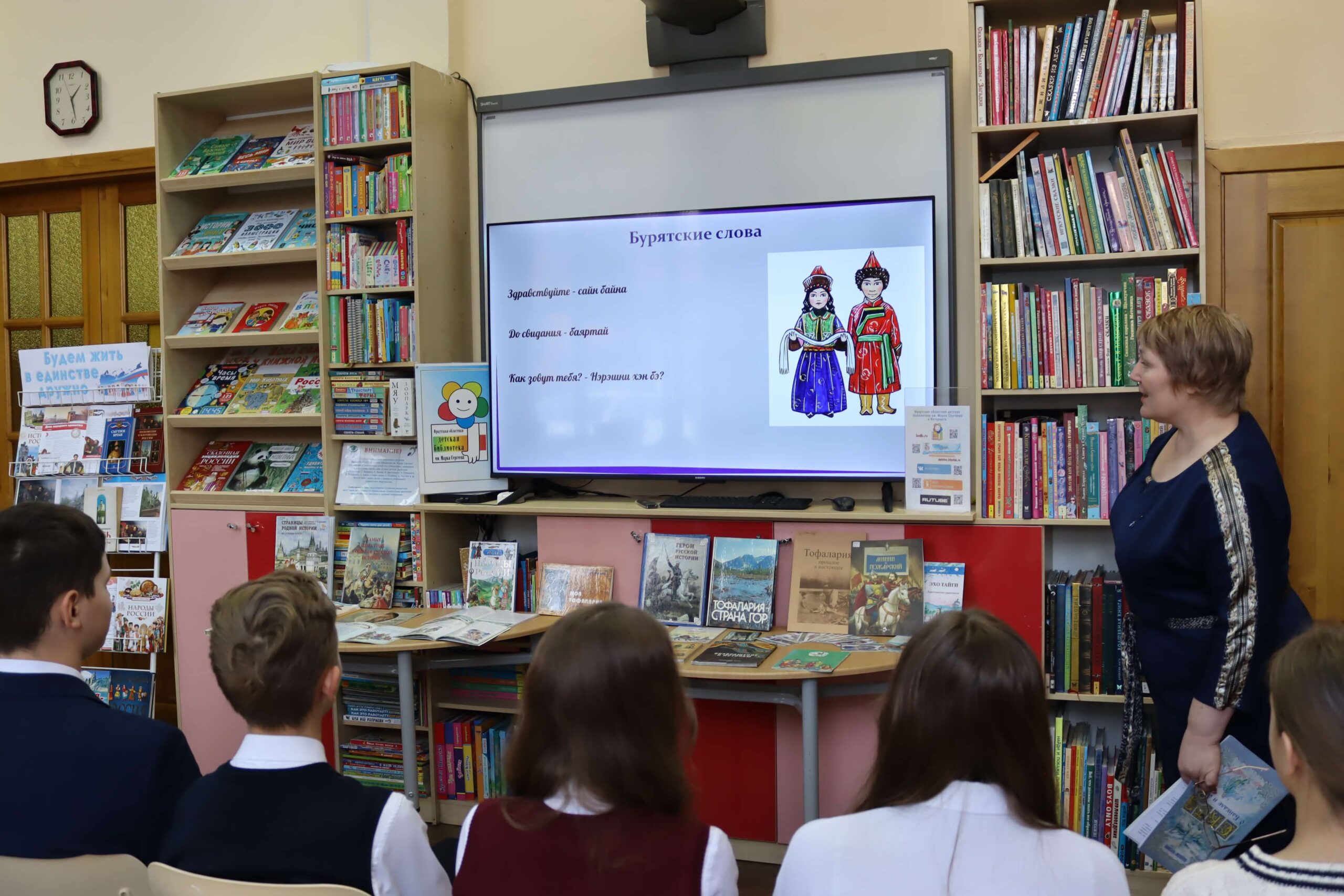 Школьники с живым интересом познакомились с национальными праздниками, фольклорными произведениями – сказками, пословицами, загадками. Они также узнали и произнесли некоторые слова на бурятском, эвенкийском и тофаларском языках.