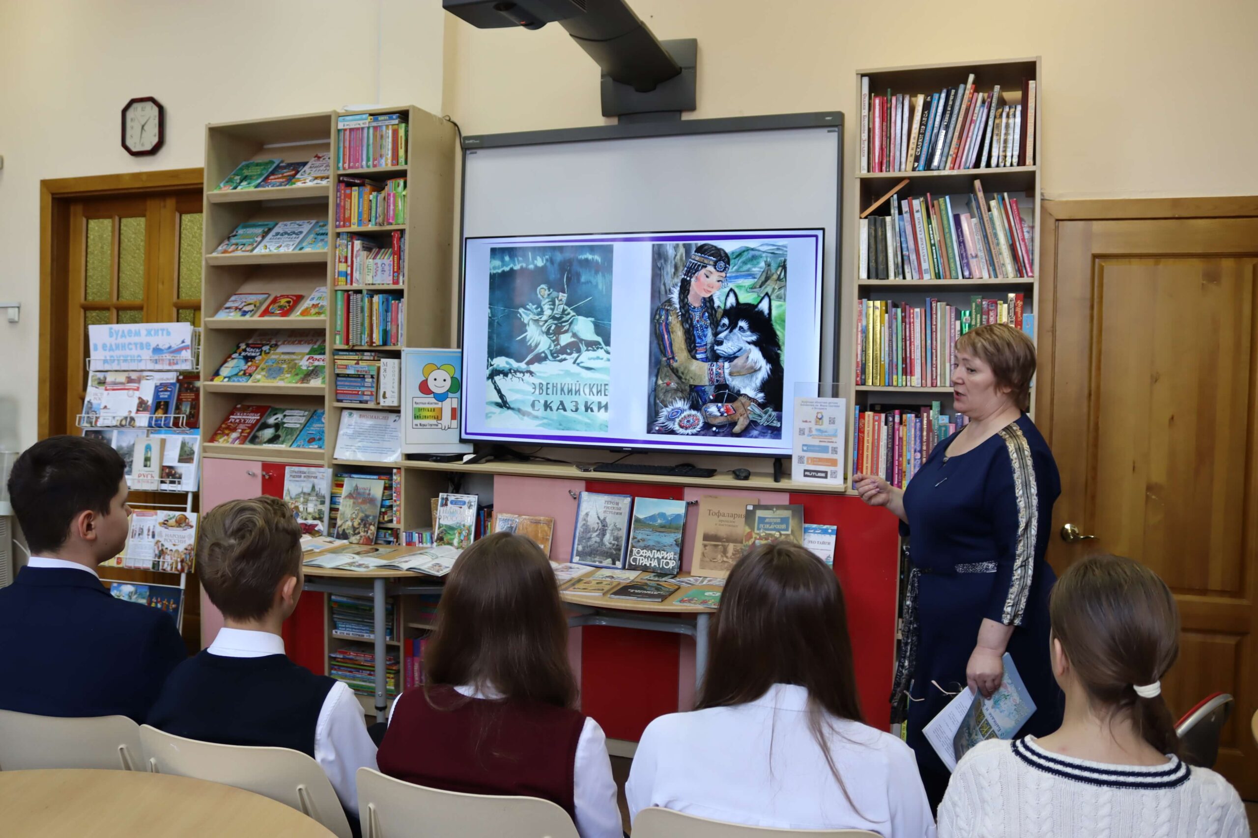 На книжной выставке читатели познакомились с книгами о Минине и Пожарском, об истории Смутного времени, о сказках народов Сибири. С интересом ребята полистали издания библиотеки им. Марка Сергеева о народах, проживающих в Прибайкалье, из книжной серии «Мы живём вокруг Байкала» – это этнографические мини-сборники «Буряты», «Тофалары», «Эвенки» и «Русские в Сибири».