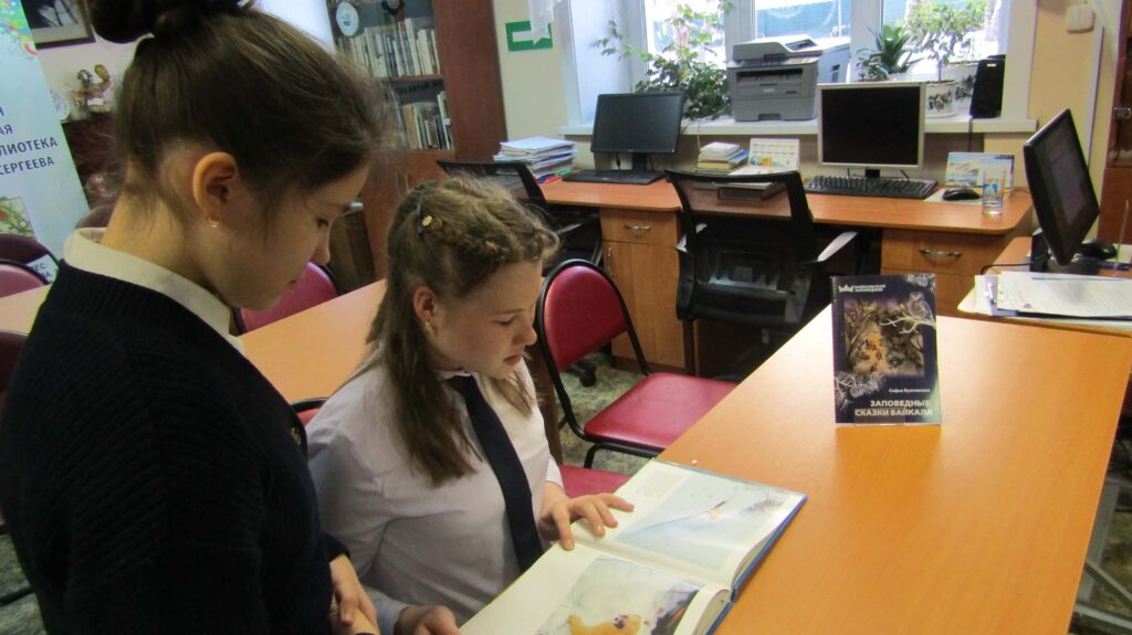 Юные читатели познакомились со стихами о зимней тайге сибирских поэтов Анатолия Горбунова и Георгия Граубина, отгадали все загадки о зимующих обитателях Прибайкалья, посмотрели фрагмент доброго мультфильма «Девочка и зайцы».