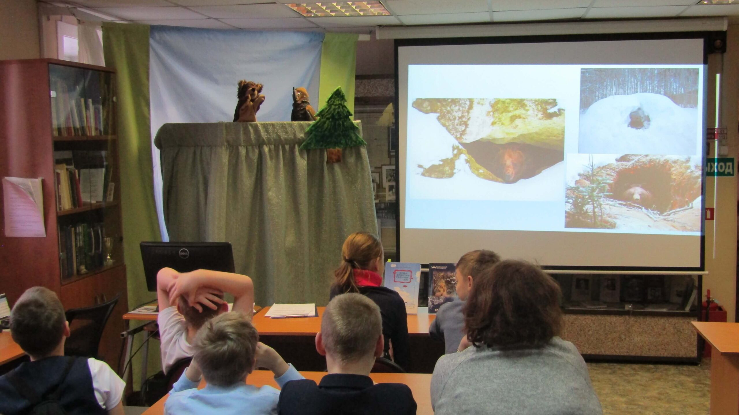 Используя яркие тематические слайды и очаровательных перчаточных кукол библиотечного театра книги «Нерпёнок», библиотекарь рассказала детям, как готовятся к холодному сезону медведи, волки, лисы, зайцы и другие обитатели тайги.