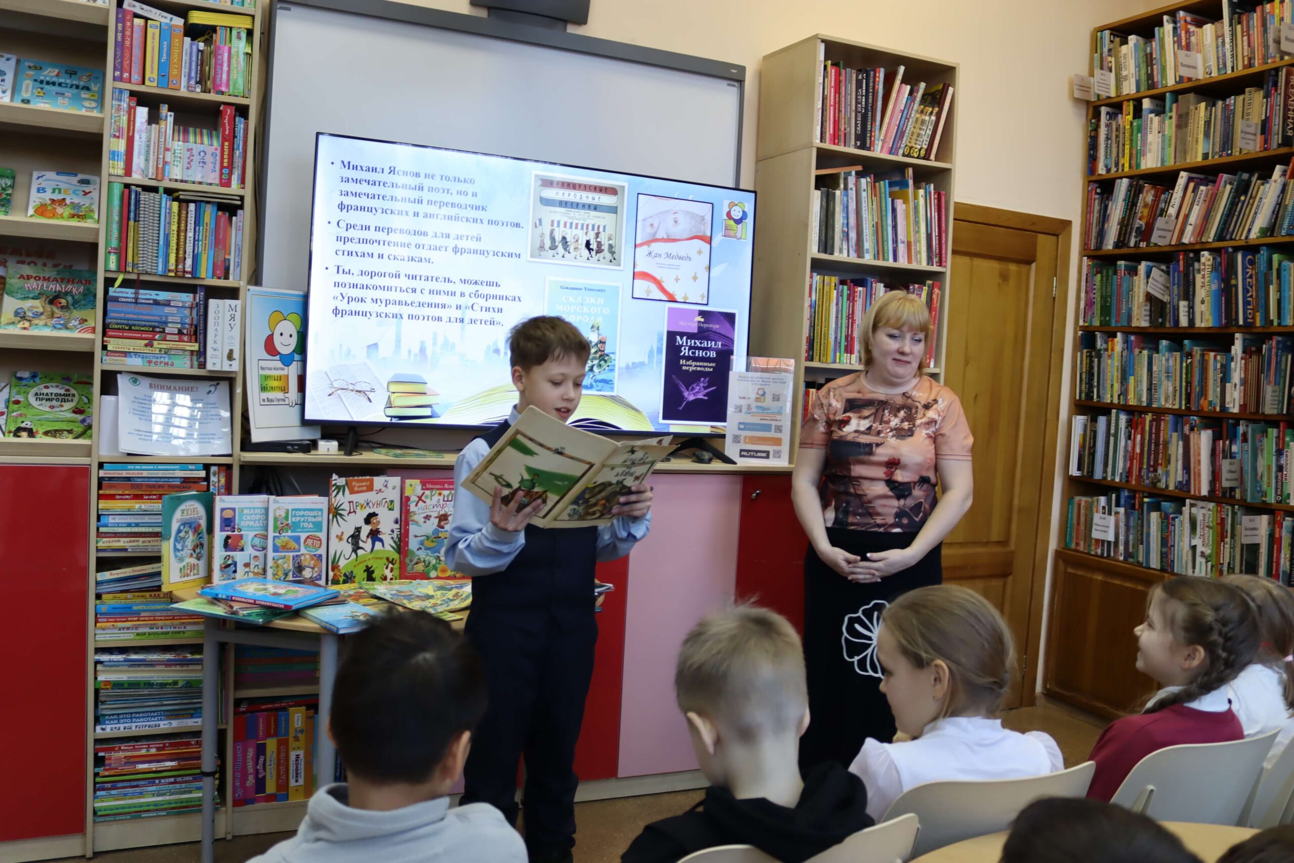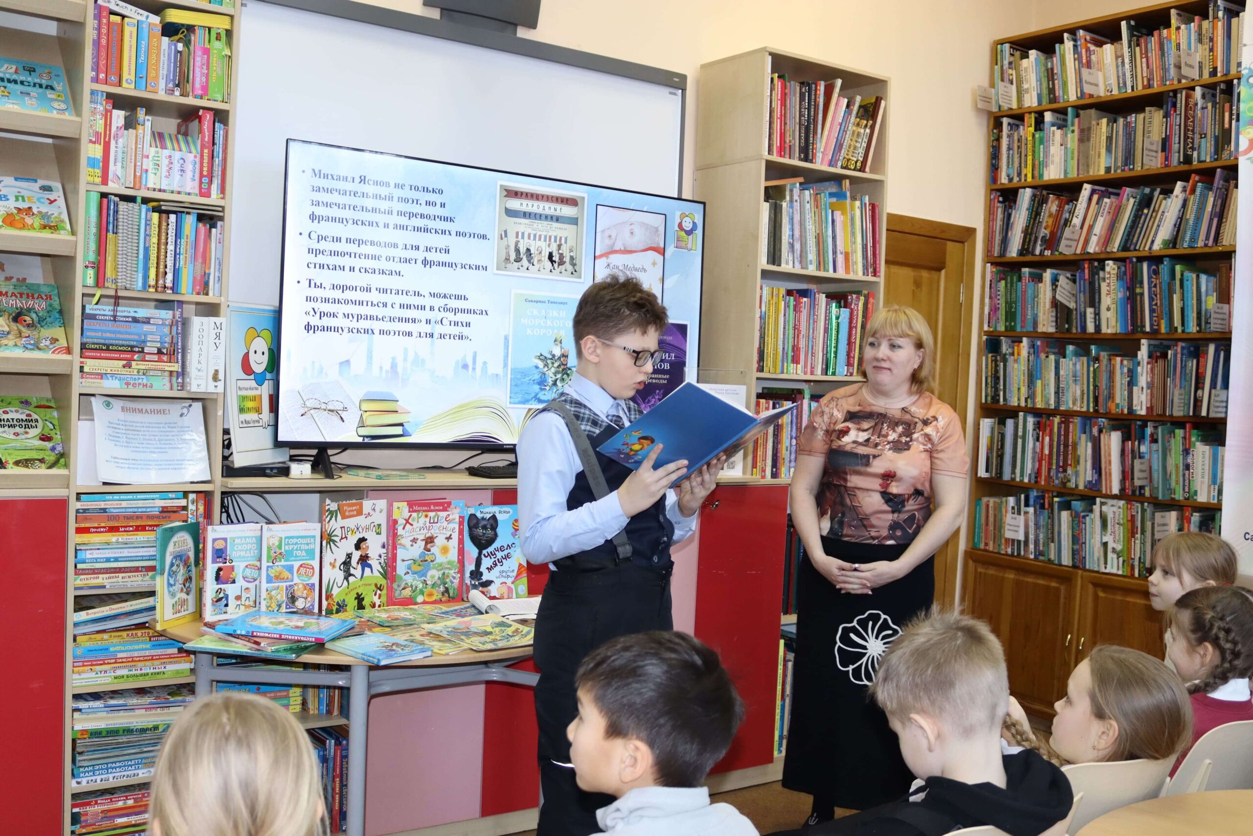 Ребята узнали, что Михаил Яснов написал около ста книг стихов и прозы для детей, а также перевёл более ста произведений зарубежной детской литературы, среди которых стихи в сказках финского поэта, сказочника и учёного, исследователя карело-финского и саамского фольклора Сакариаса Топелиуса (1818–1898). Стихи самого Яснова переводились на французский, английский, польский, финский, украинский, эстонский, латышский, румынский языки.