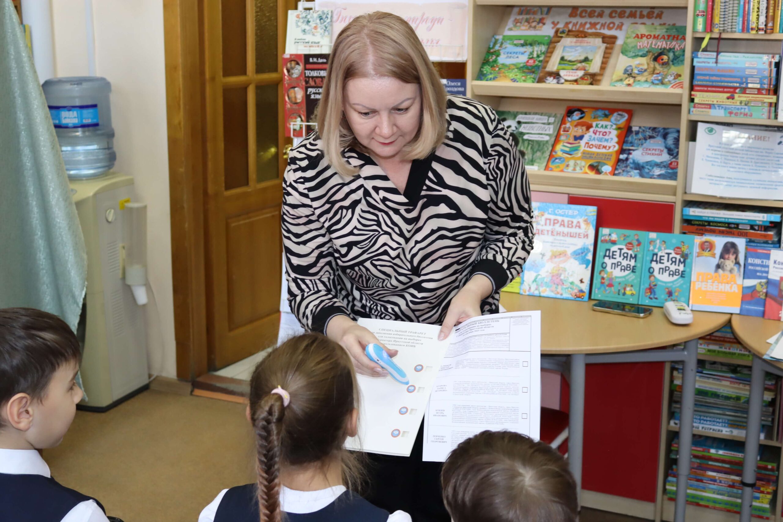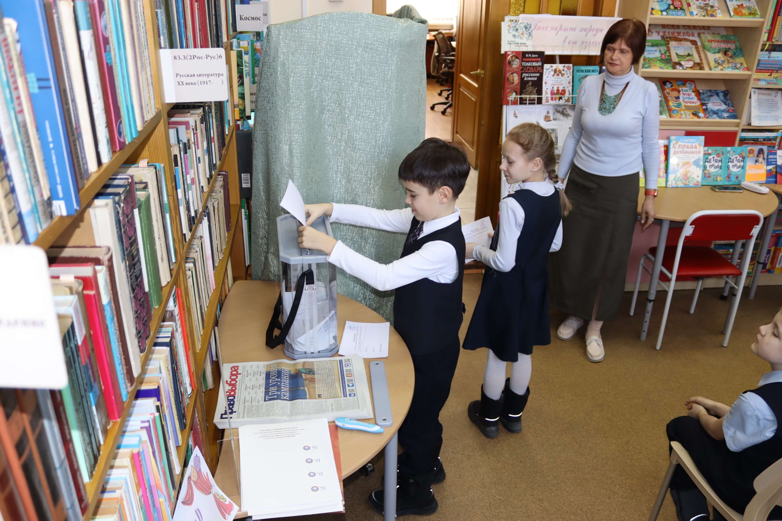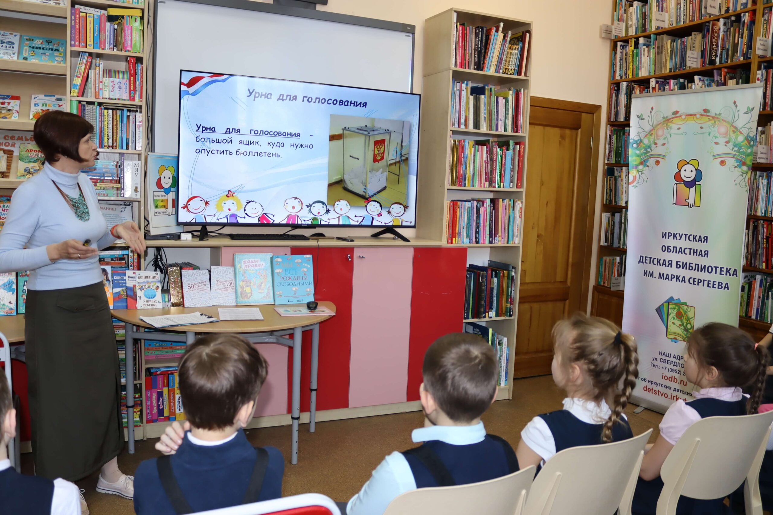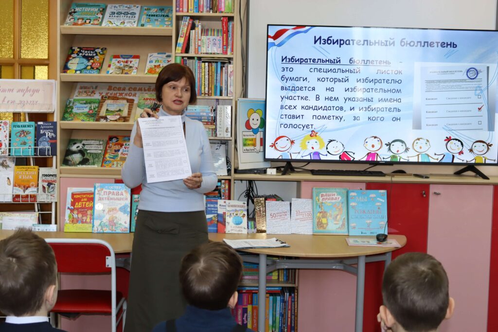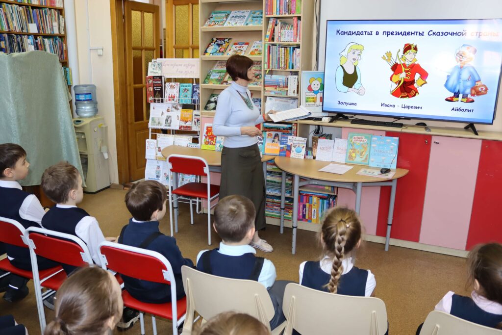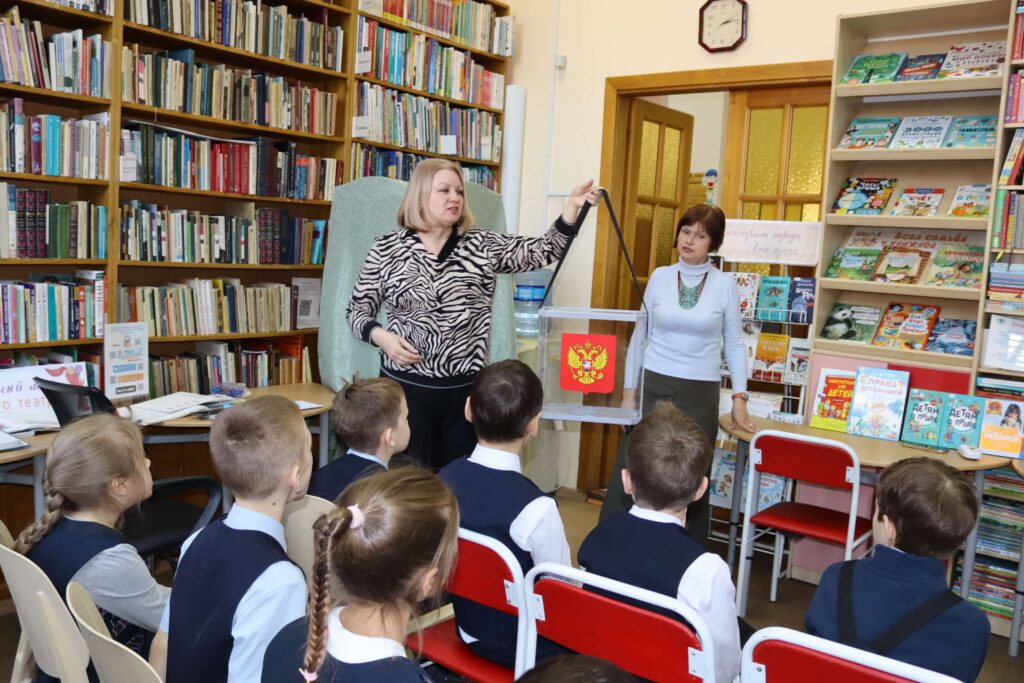 В форме интерактивной игры в читальном зале Иркутской областной детской библиотеки им. Марка Сергеева 26 февраля 2026 года прошёл познавательный час «Школа юного избирателя». Мероприятие для школьников младших классов специалисты библиотеки провели совместно с председателем Иркутской городской № 3 территориальной избирательной комиссии (Правобережный округ) Мариной Безвербной.