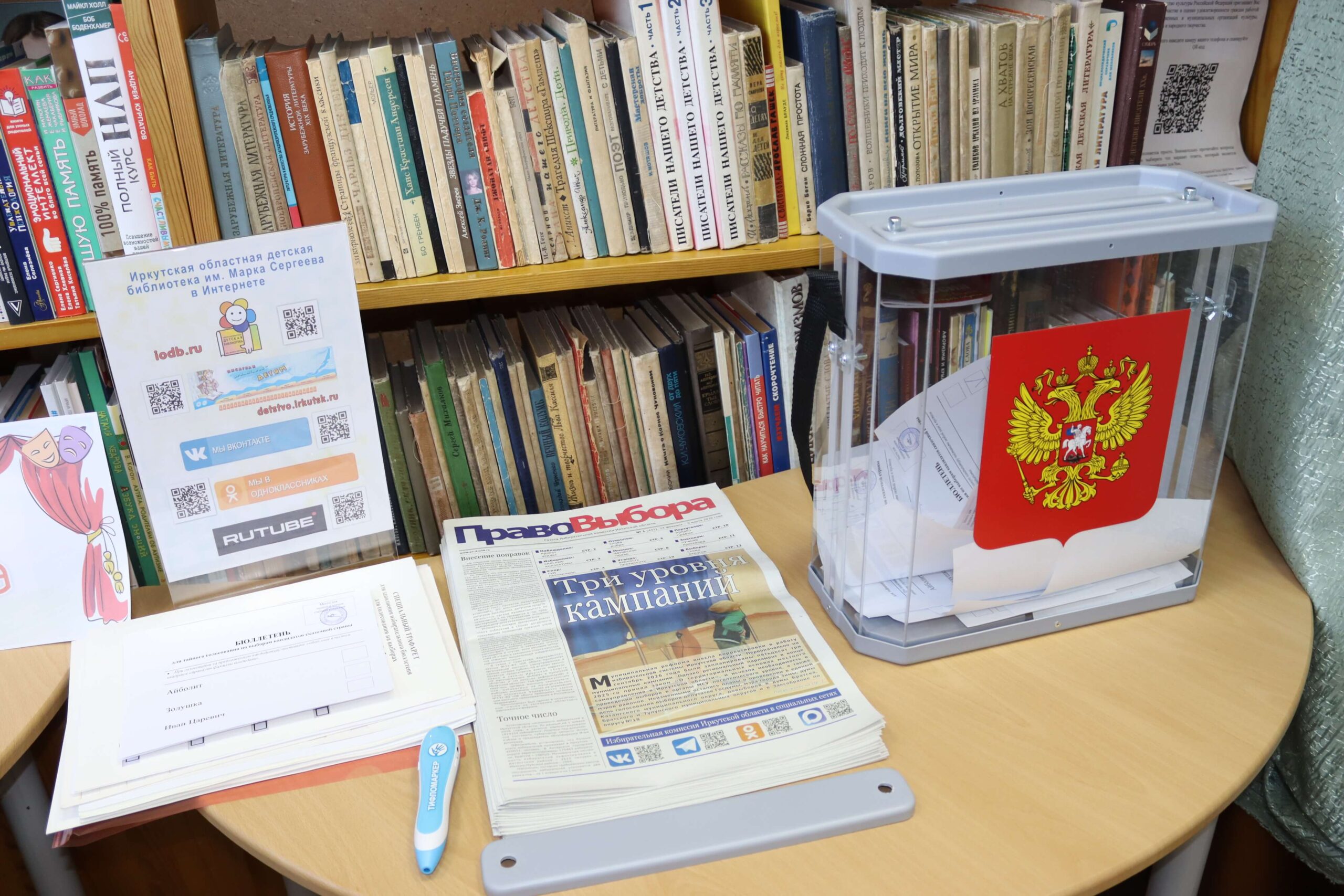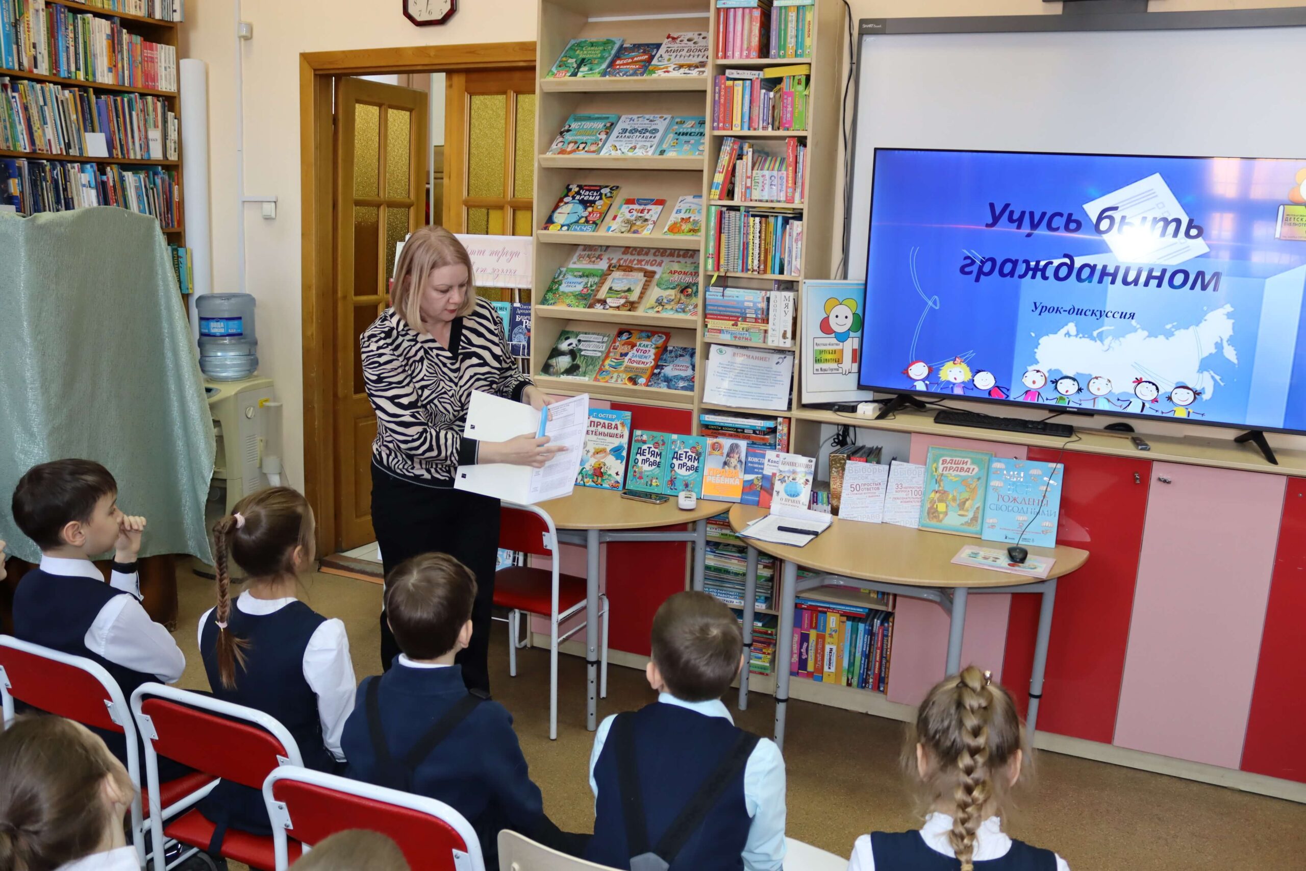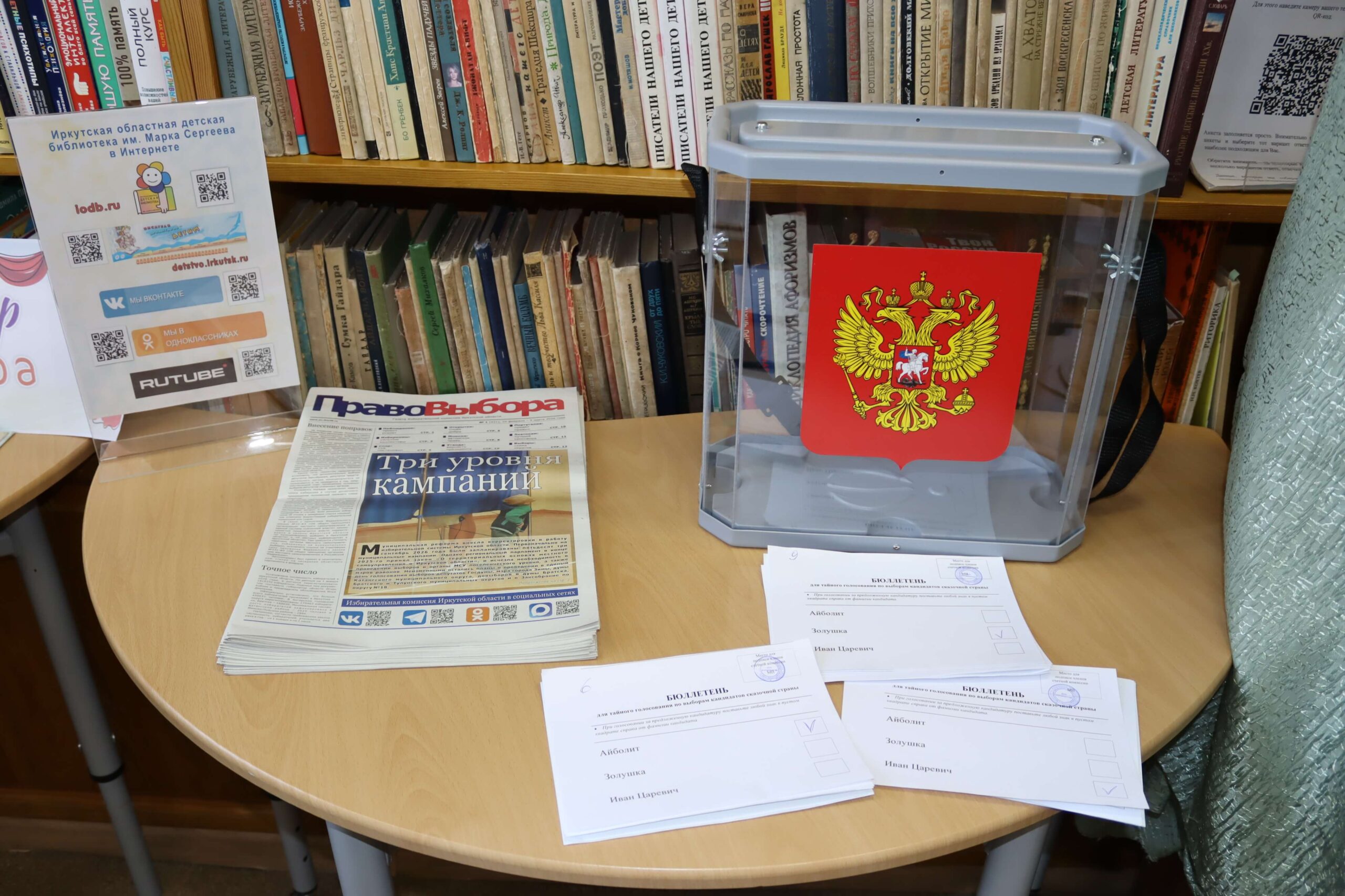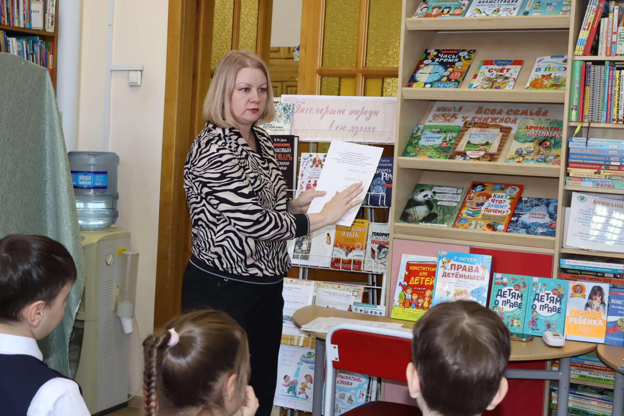 В форме интерактивной игры в читальном зале Иркутской областной детской библиотеки им. Марка Сергеева 26 февраля 2026 года прошёл познавательный час «Школа юного избирателя». Мероприятие для школьников младших классов специалисты библиотеки провели совместно с председателем Иркутской городской № 3 территориальной избирательной комиссии (Правобережный округ) Мариной Безвербной.