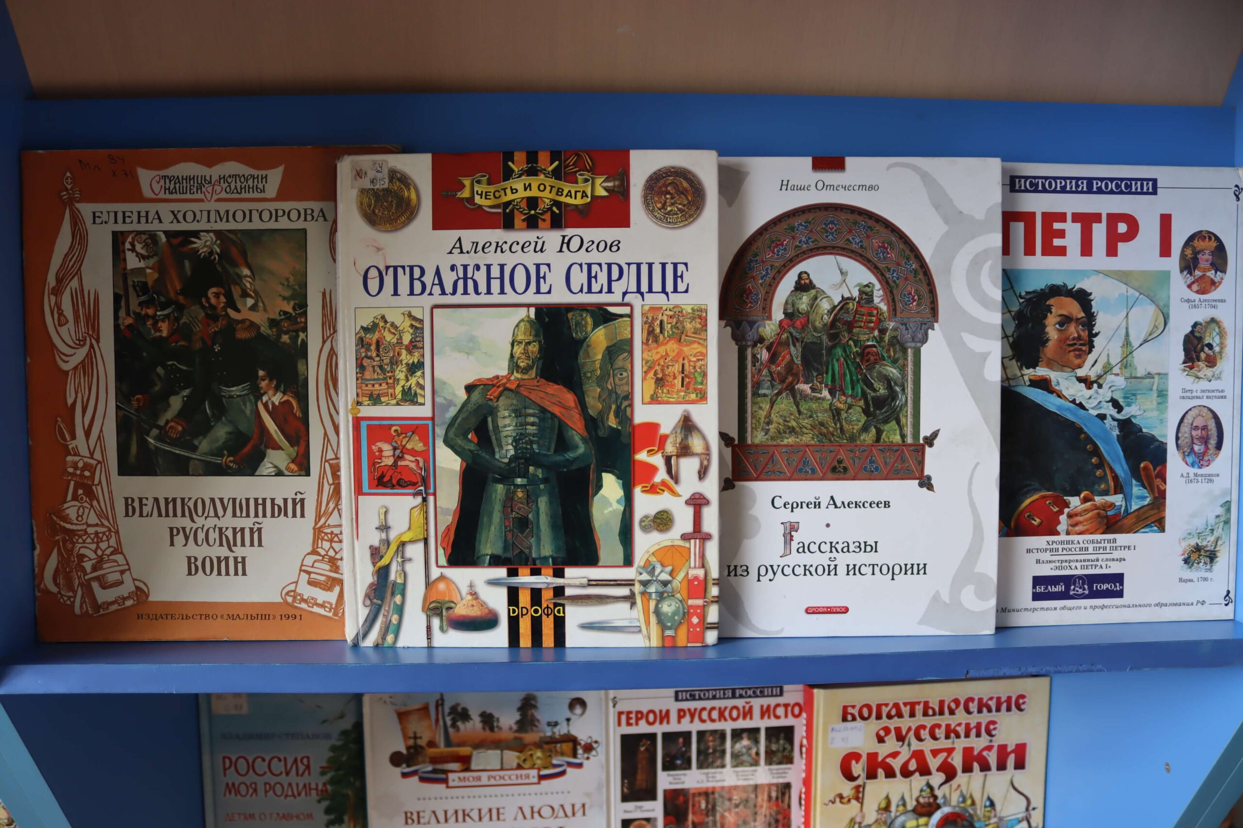 В экспозиции представлена интересная подборка книг для детей о воинской чести, мужестве, доблести и славе защитников Родины. От былинных богатырей и великих полководцев Суворова и Кутузова до легендарных маршалов победы в Великой Отечественной войне.